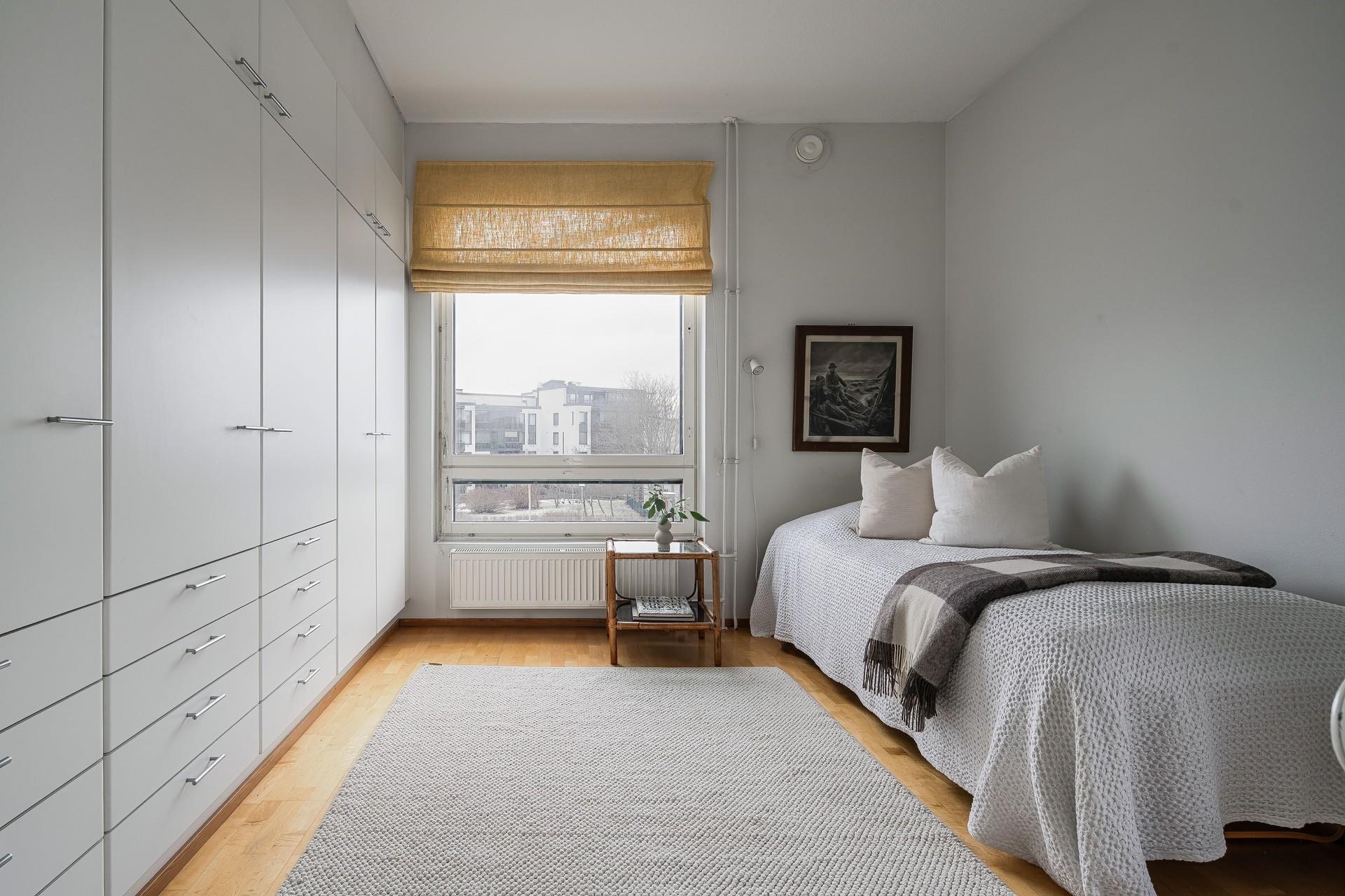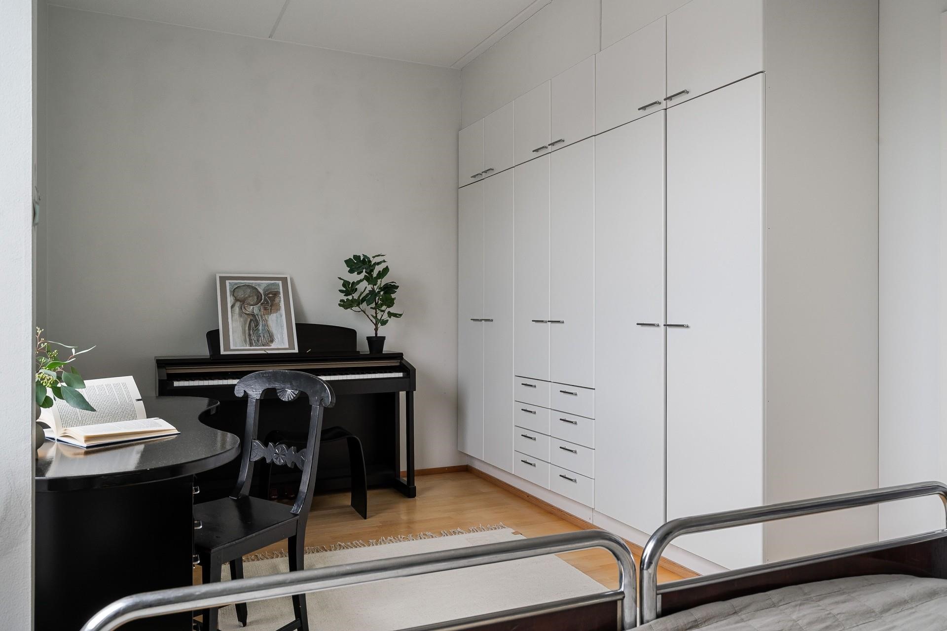Kaksi rauhallista ja mukavan kokoista makuuhuonetta avautuvat yhtiön avaralle sisäpihalle. Täydellinen paikka levollisille öille. Suurempi makuuhuone on helposti jaettavissa kahdeksi.