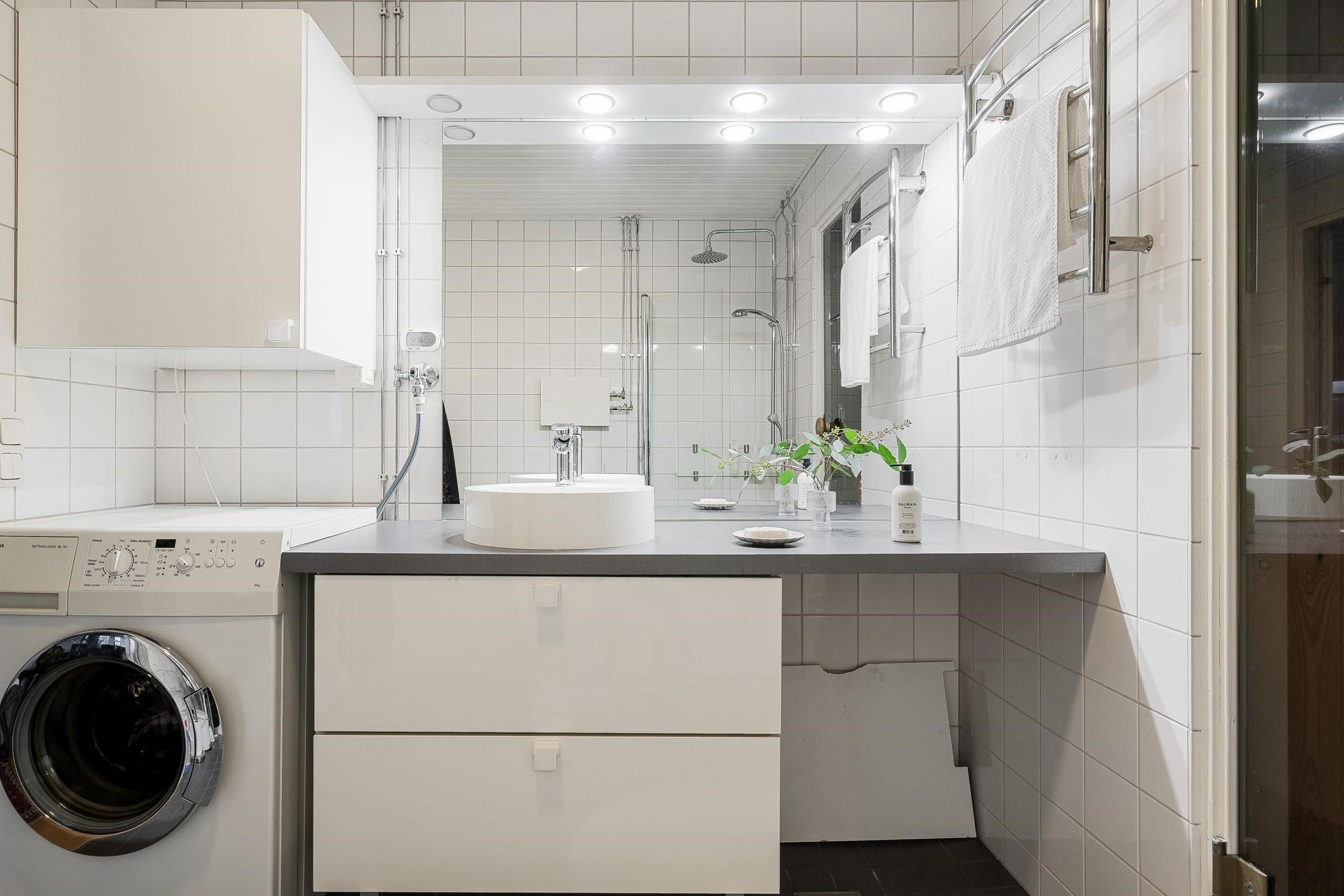 - Sauna, sähkökiuas, kylpyhuone, erillinen wc, suihku, suihkuseinä, peilit, peilikaappi, kaapit, allaskaappi, pesukoneliitäntä, kiinteät valaisimet. Pyyhepatteri