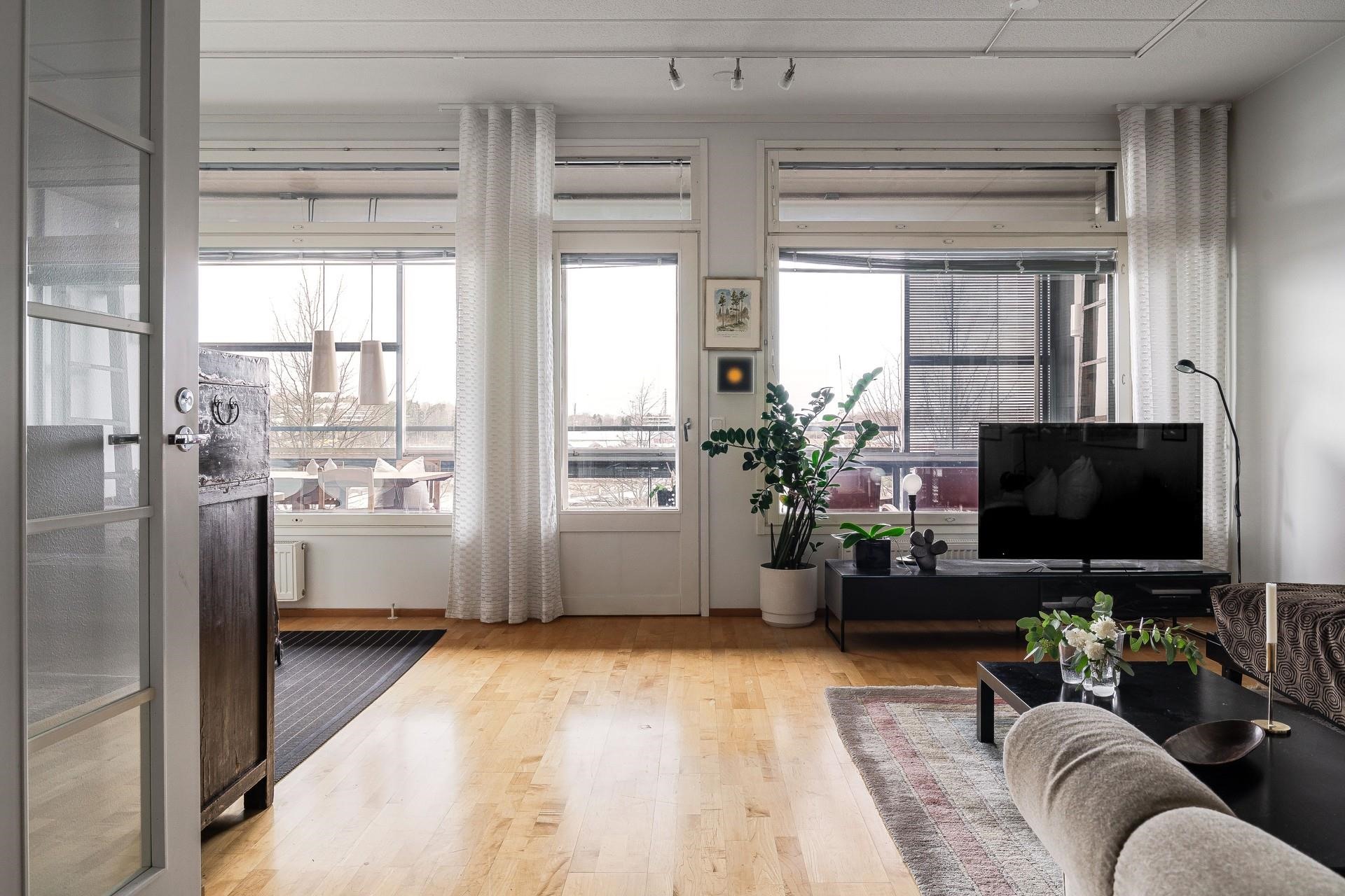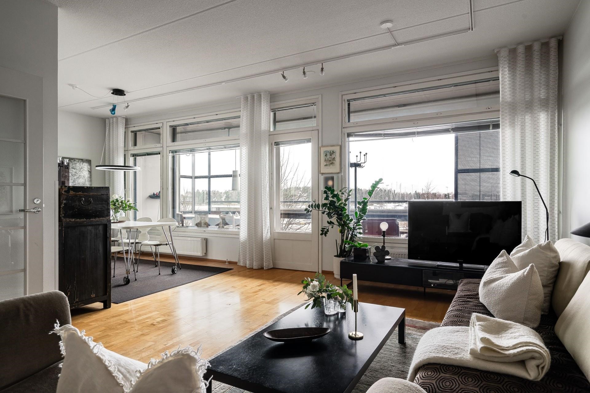 - Olohuoneesta ja ruokailutilasta upeat näkymät Laivalahden venesatamaan länsi-luoteeseen. Läpitalon huoneisto.