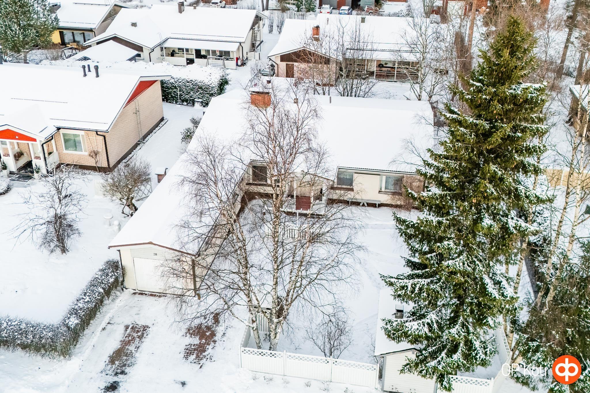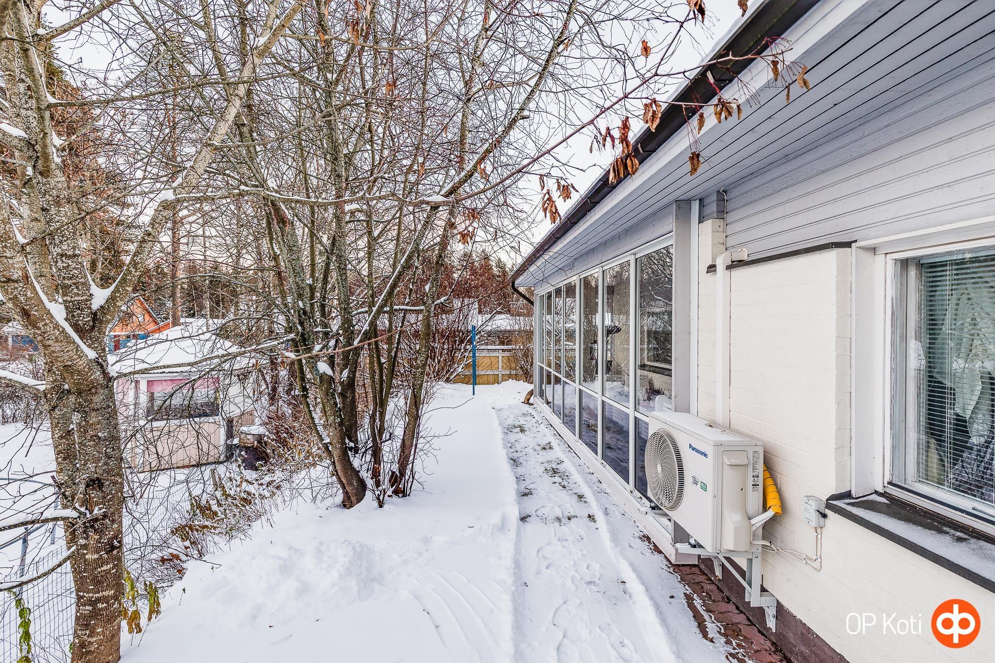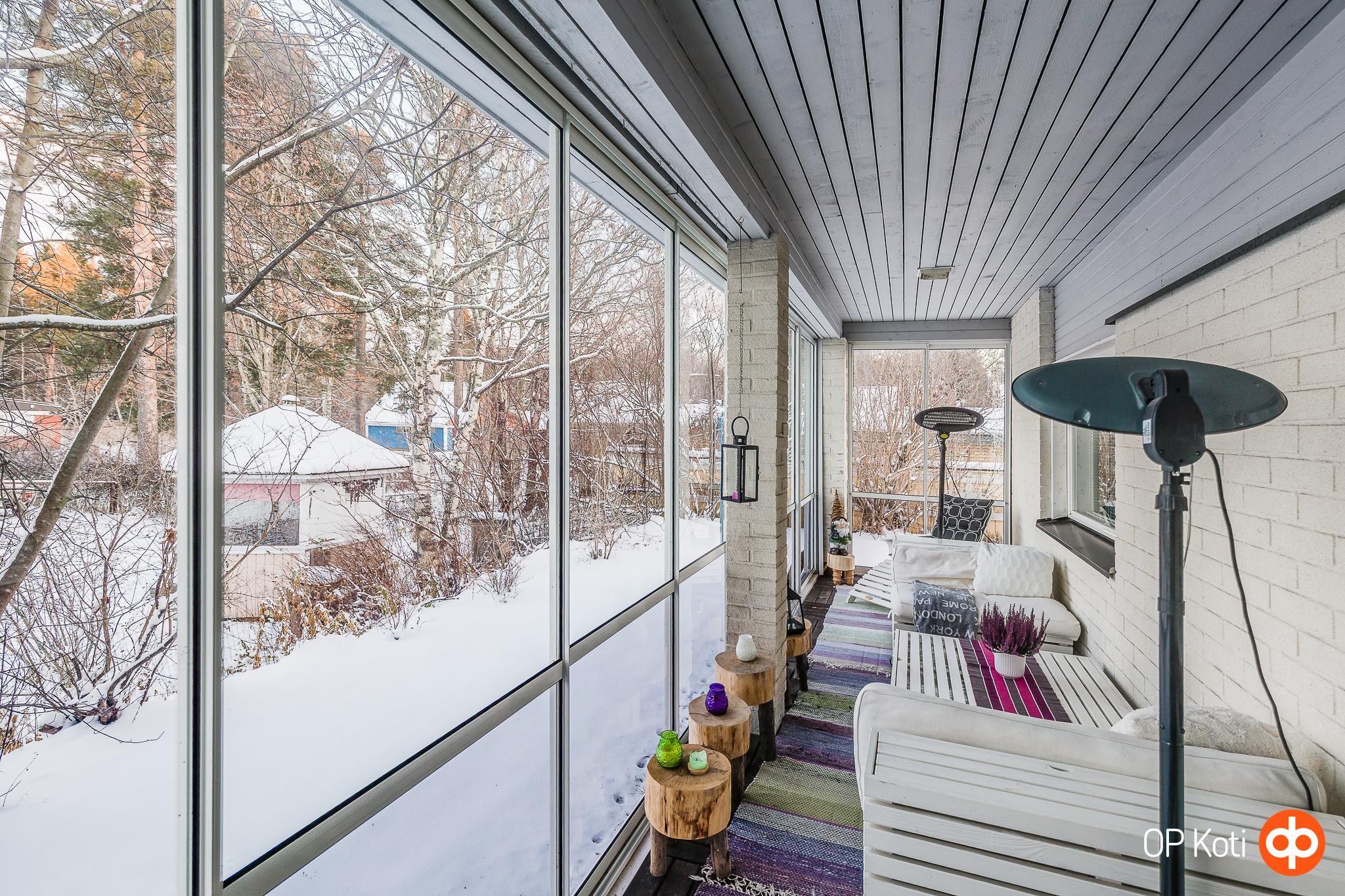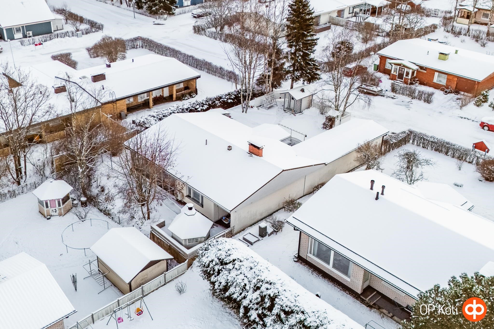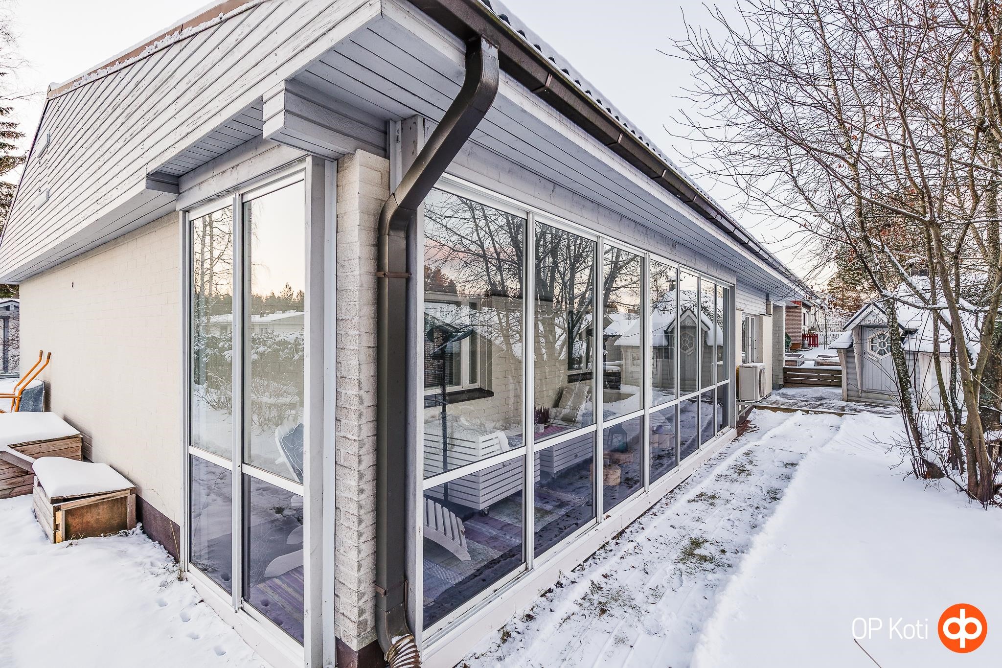 Rakennus on hyvin hoidettu, ja vuosien varrella tehdyt remontit, kuten kattomuutos harjakatoksi ja ikkunoiden uusiminen, ovat parantaneet sen energiatehokkuutta ja mukavuutta. Oma tontti tarjoaa rauhaa ja yksityisyyttä, ja pihapiirissä on tilaa lasten leikeille ja puutarhanhoidolle. Lasitettu terassi ja grillikota ovat täydellisiä paikkoja kesäiltojen viettoon. Autotalli ja varastotilat tuovat runsaasti säilytystilaa, ja pihavaja tarjoaa lisätilaa puutarhatyökaluille.