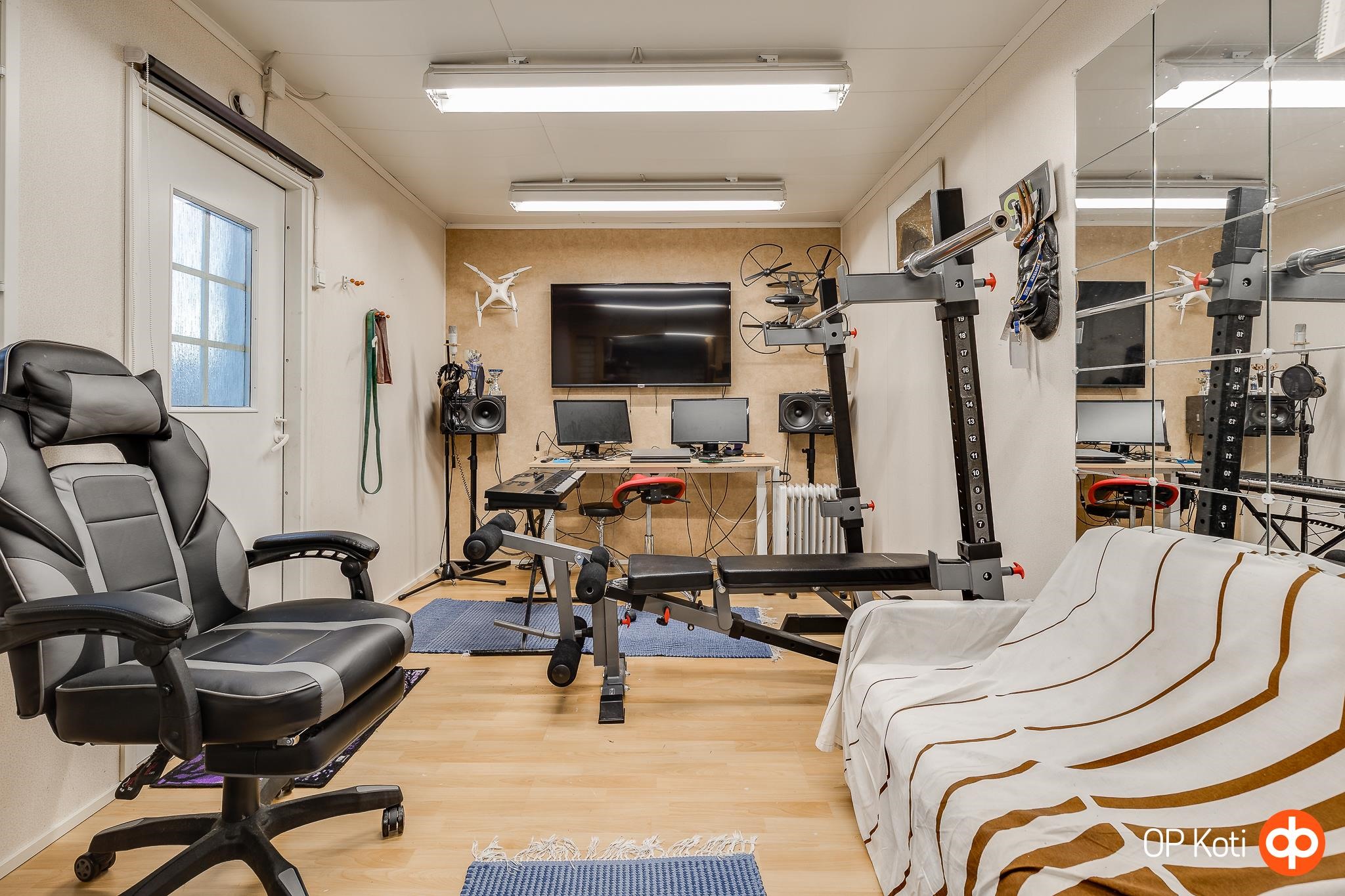 - 36 m2Muiden tilojen pinta-ala on laskettu suuntaa-antavasti rakennuslupapiirustuksista. Muihin tiloihin luetaan tekninen tila (n. 3 m²), autotalli/varasto (28 m²) + varaston laajennus (n. 5 m²).