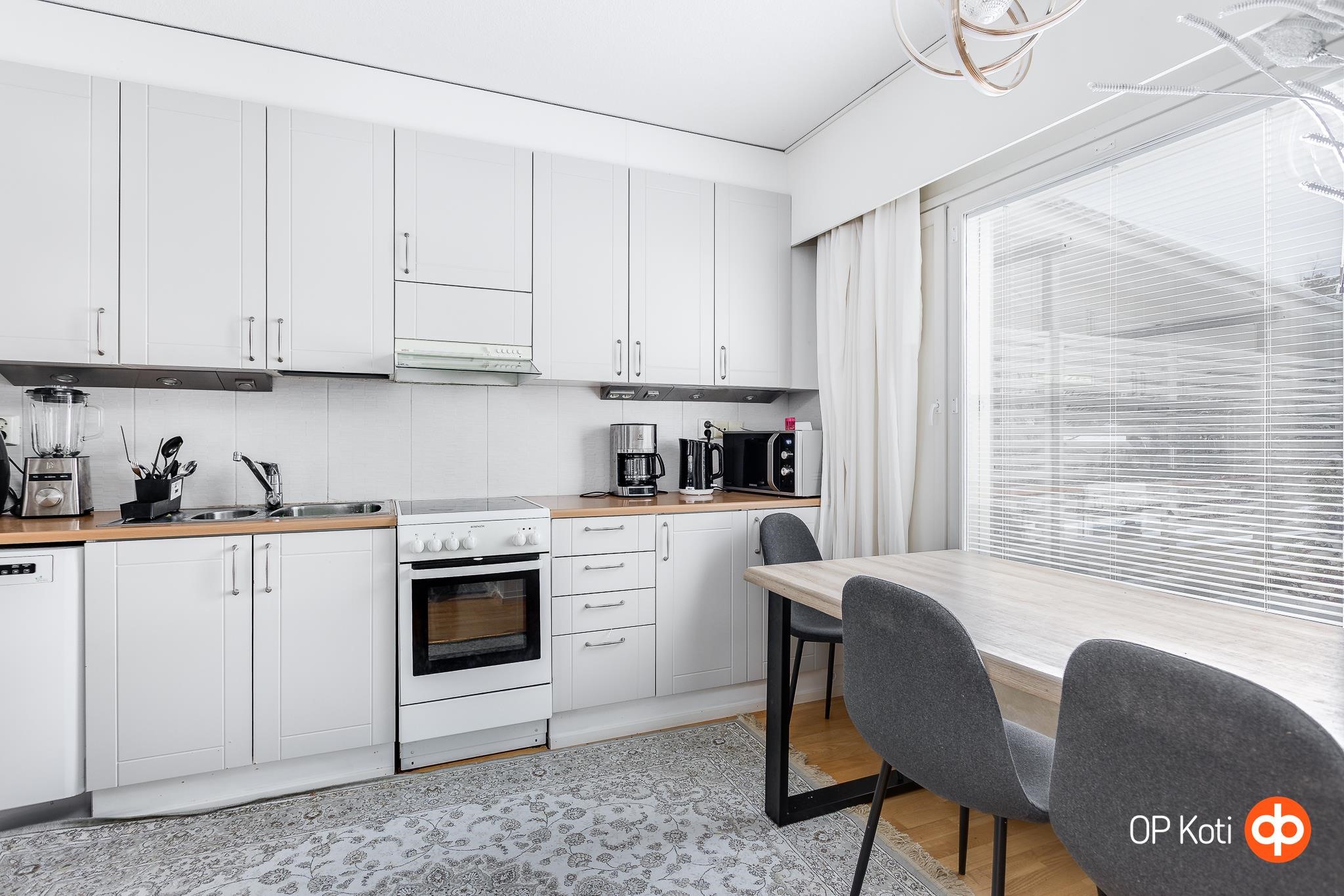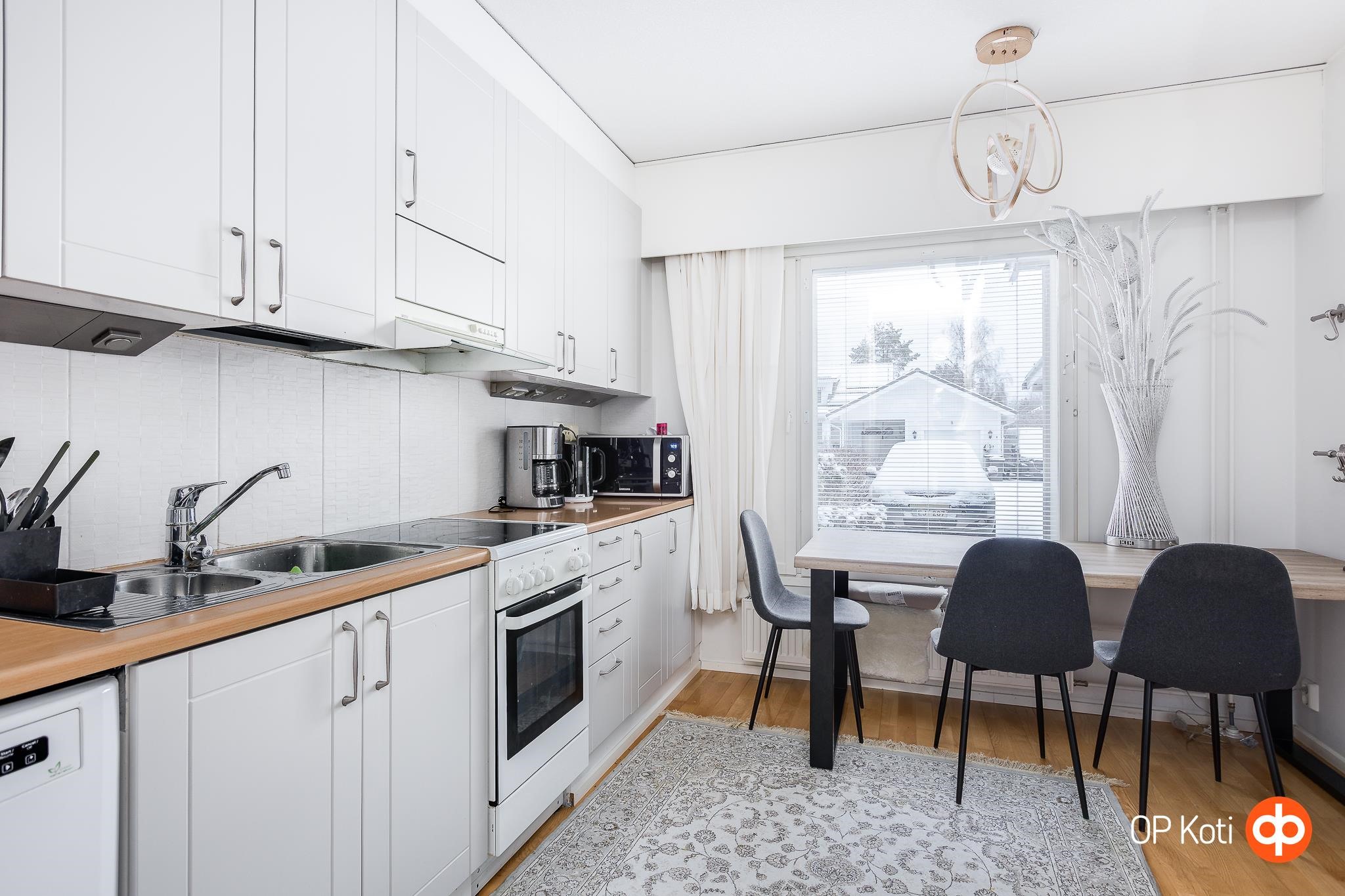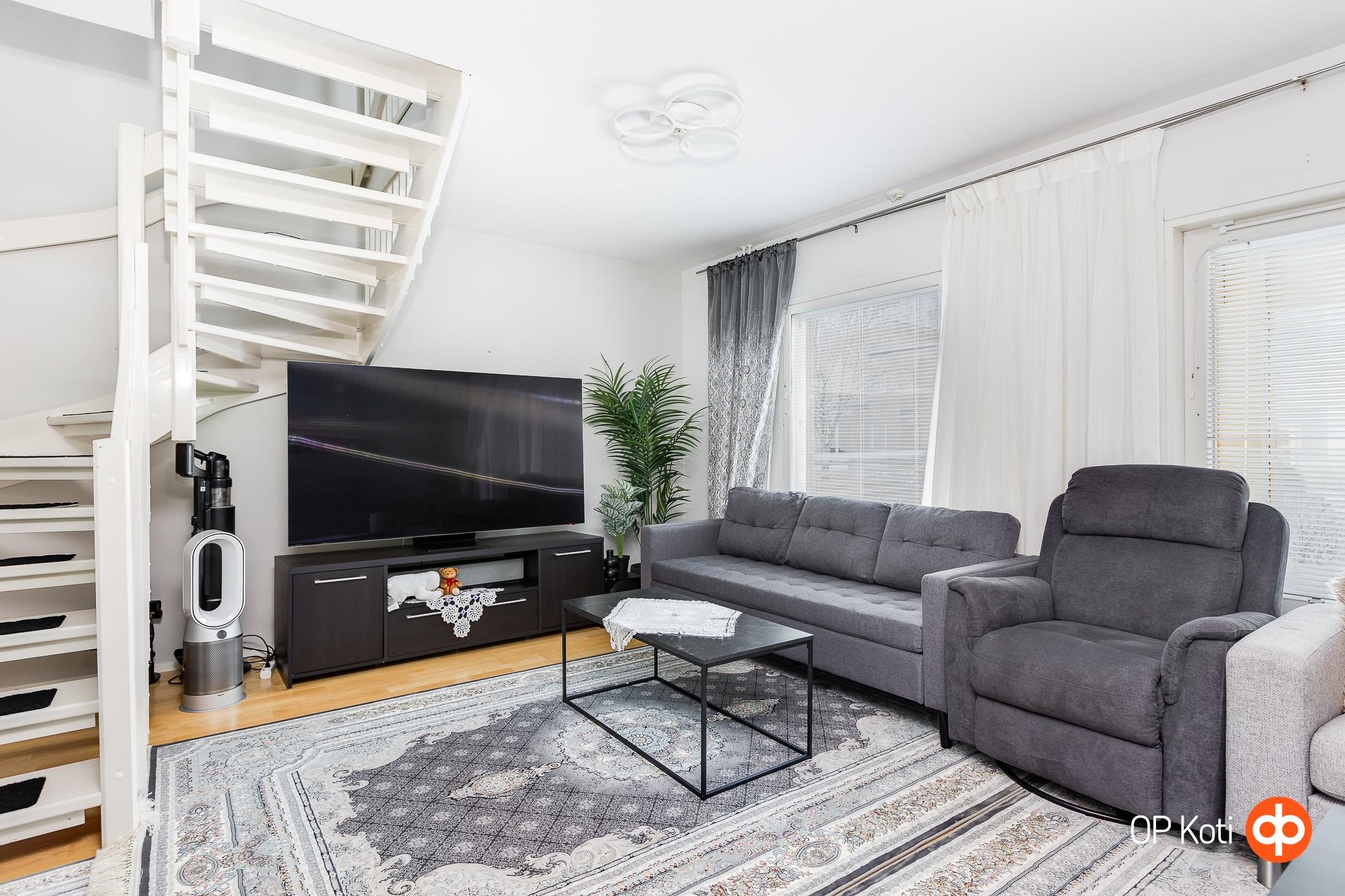 Tämä rivitaloasunto sopii erinomaisesti perheelle, joka arvostaa rauhallista ja viihtyisää ympäristöä. Kahden kerroksen koti tarjoaa tilaa ja käytännöllisyyttä arkeen: avara olohuone kutsuu viettämään aikaa yhdessä, ja keittiö on varustettu jääkaappipakastimella, keraamisella liedellä ja astianpesukoneella. Parkettilattiat tuovat lämpöä ja tyylikkyyttä kaikkiin asuintiloihin. Makuuhuoneet tarjoavat rauhallisen paikan levätä, ja erillinen wc sekä kylpyhuone saunoineen lisäävät arjen mukavuutta. Oma piha terassilla sekä parveke tarjoavat tilaa nauttia ulkoilmasta ja vaikka grillata kesäisin. Autokatos asunnon edessä tuo lisämukavuutta autoilevalle perheelle.