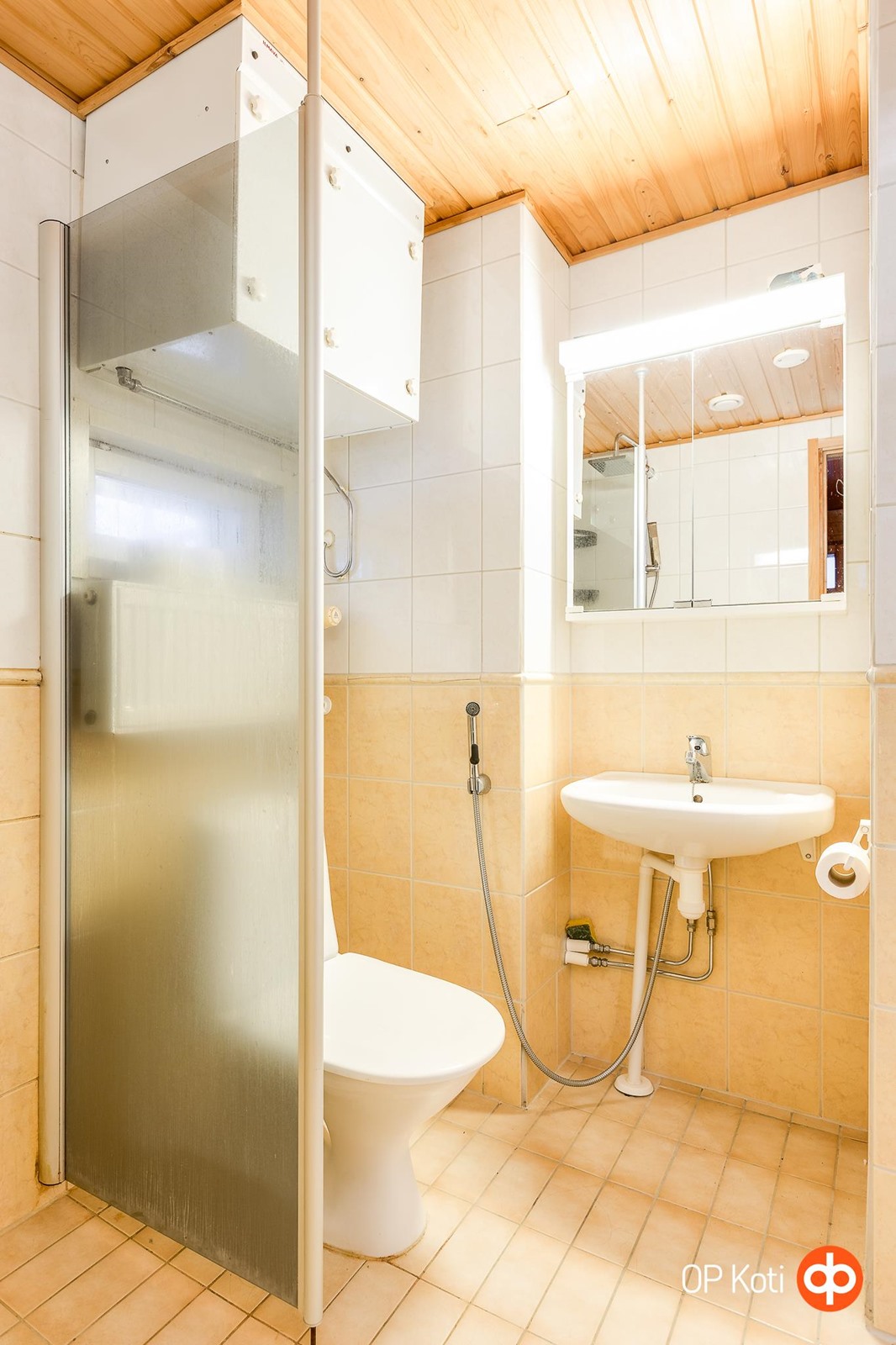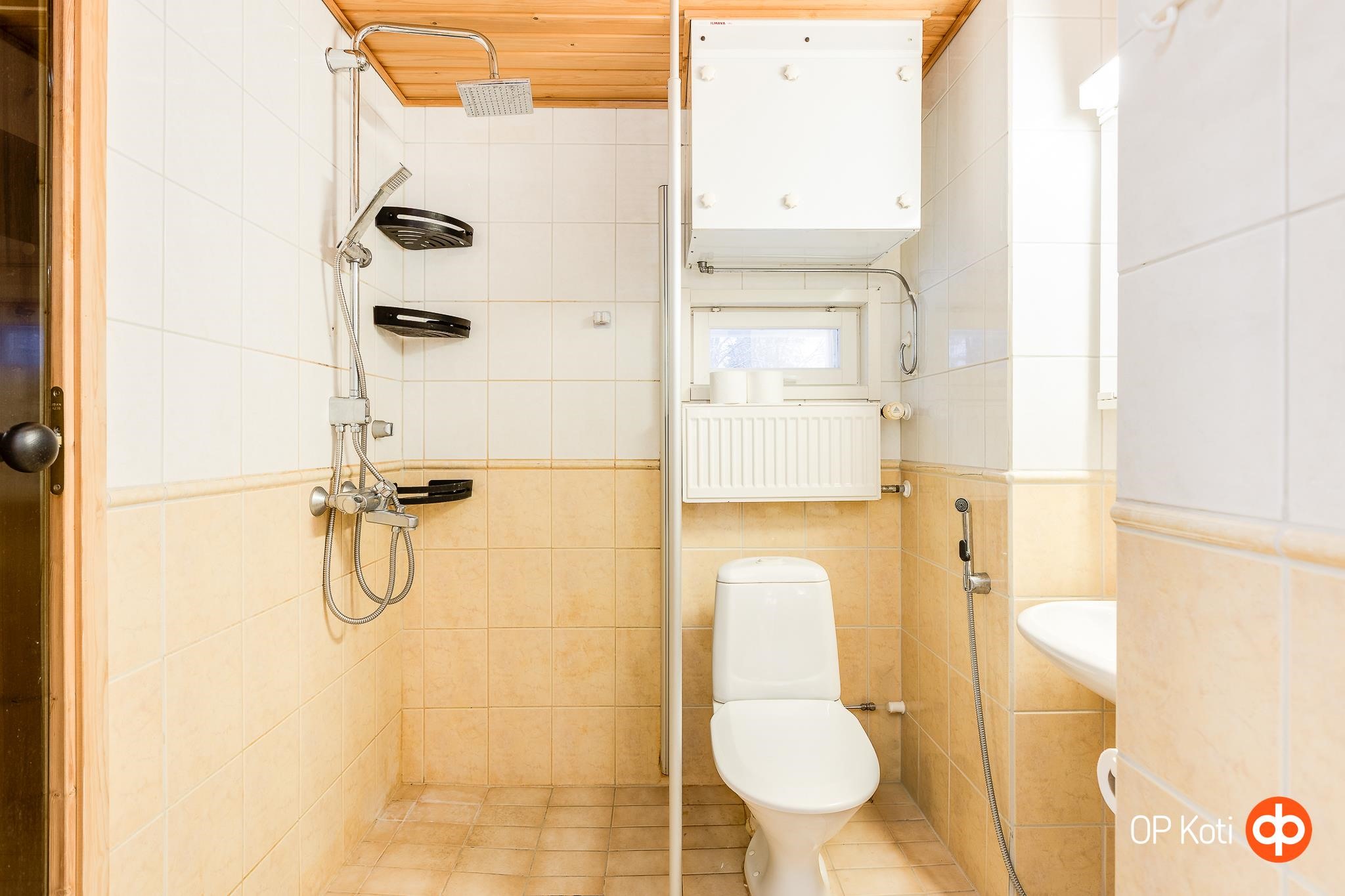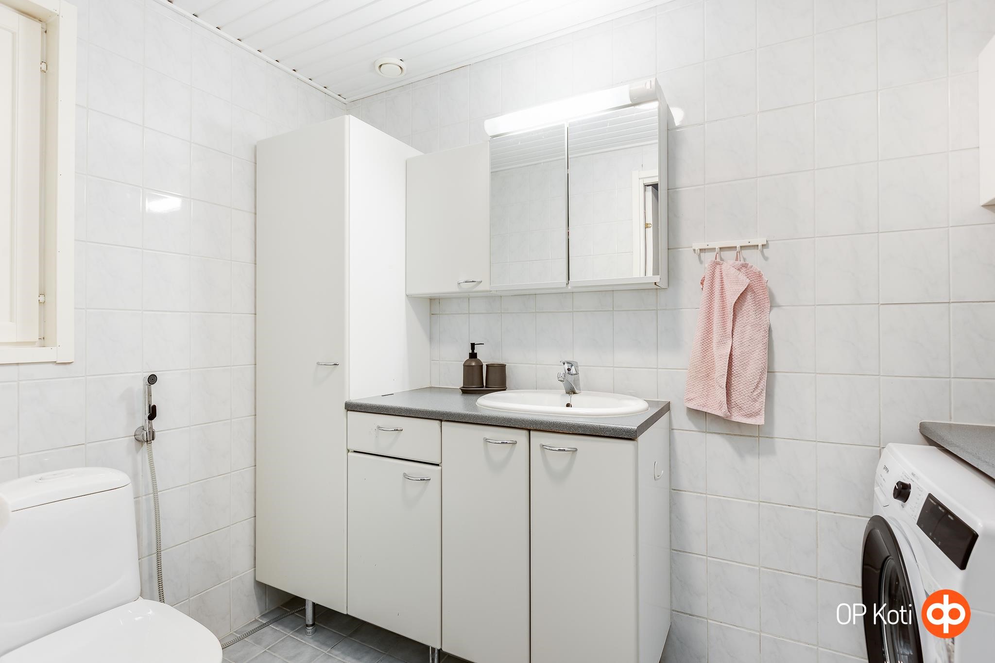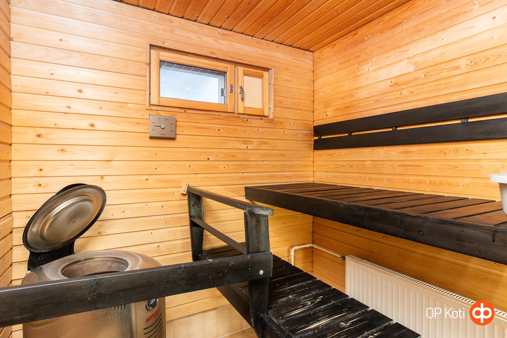 - Sauna, sähkökiuas, kylpyhuone, erillinen wc, suihku, suihkuseinä, peilit, peilikaappi, kaapit, allaskaappi, pesukoneliitäntä, lattialämmitys, kiinteät valaisimet.