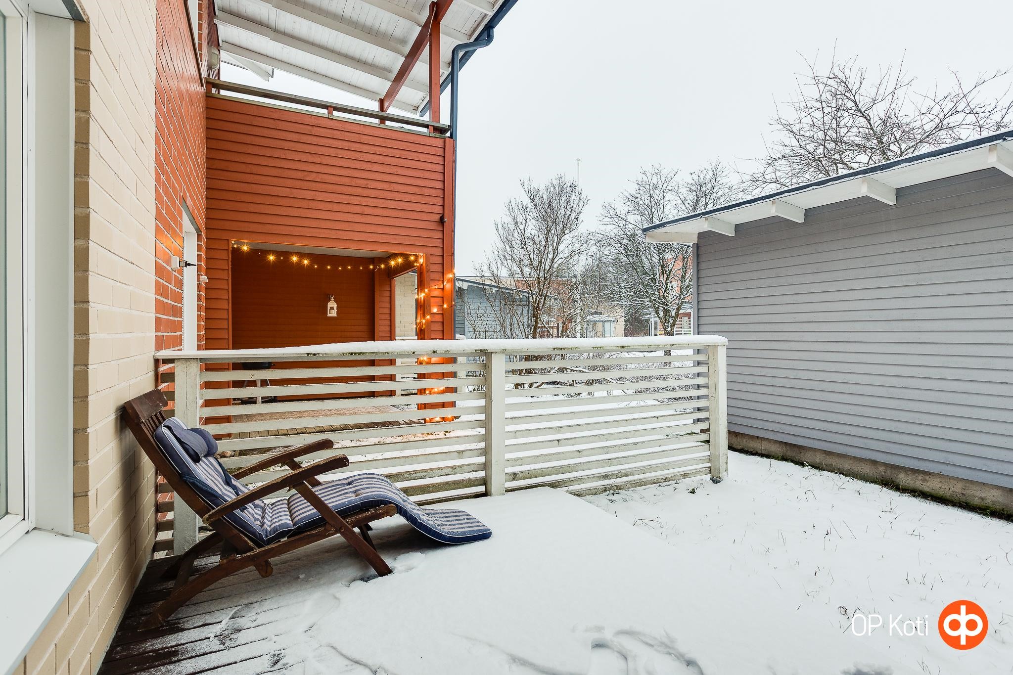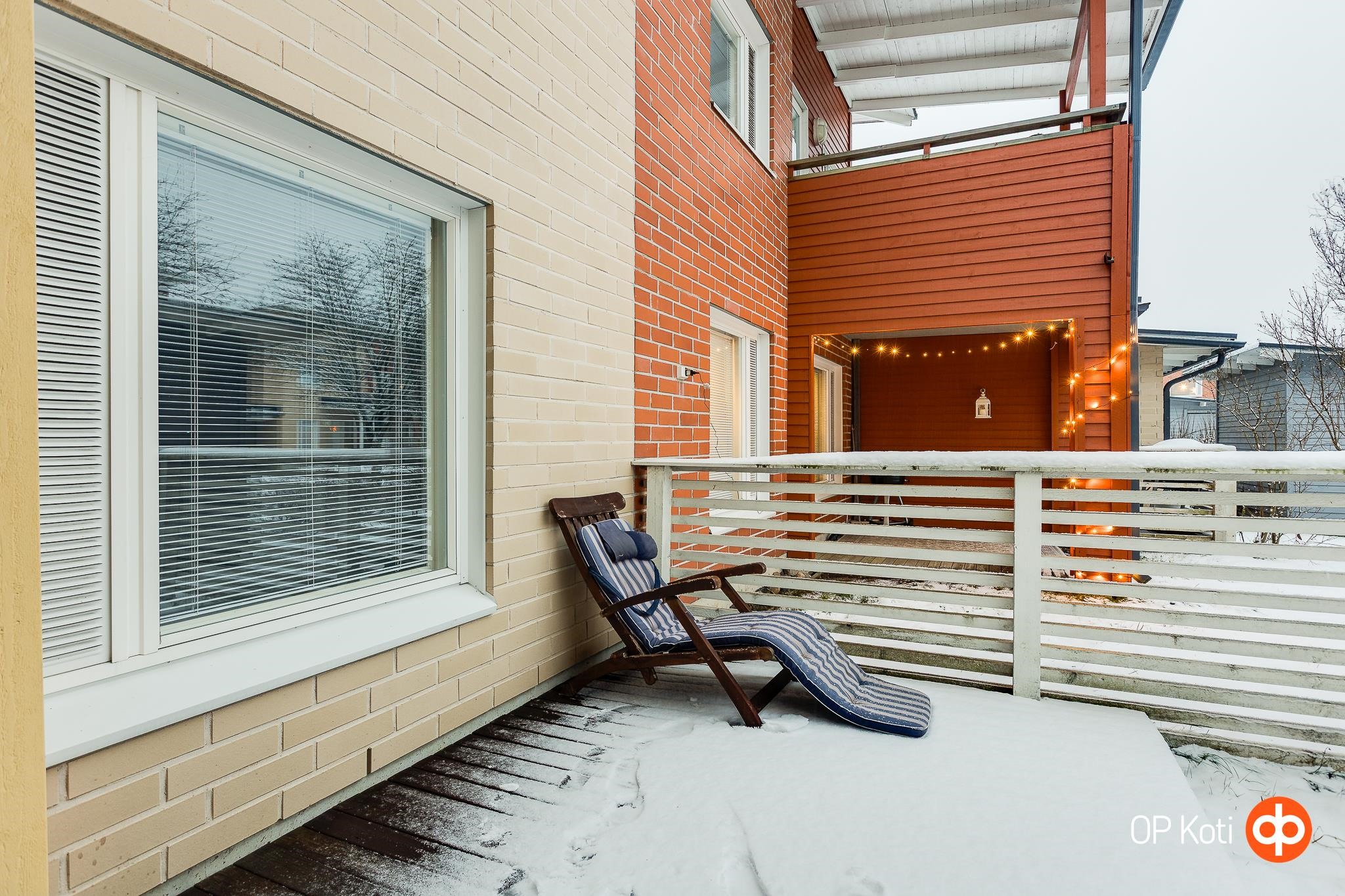 Tässä Oulun Talvikankaalla sijaitsevassa rivitalokodissa yhdistyvät tilava pohjaratkaisu, laadukkaat materiaalit ja suojaisa oma piha. Asunto tarjoaa mukavaa asumista niin pariskunnille kuin perheillekin.