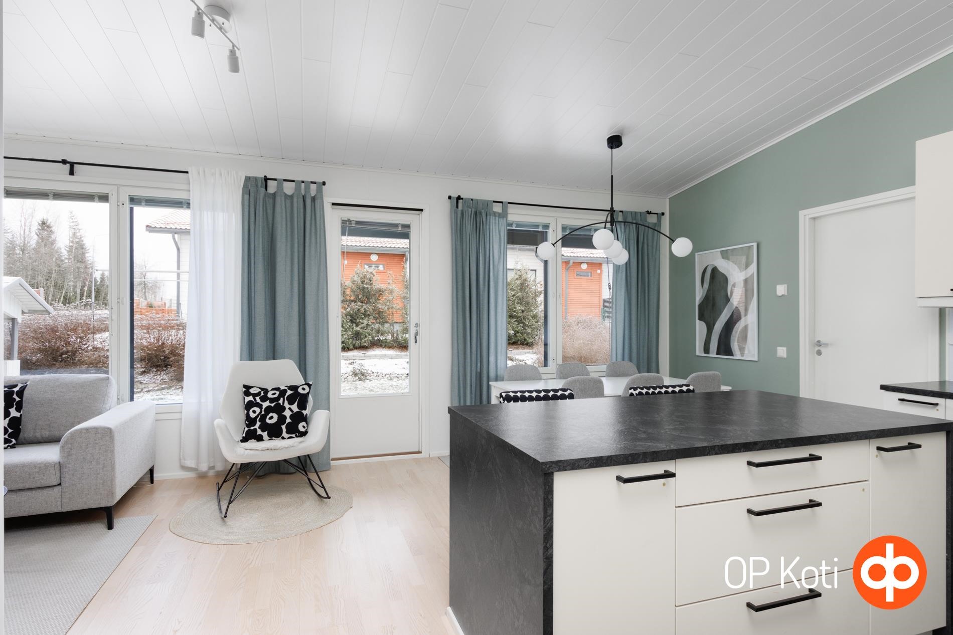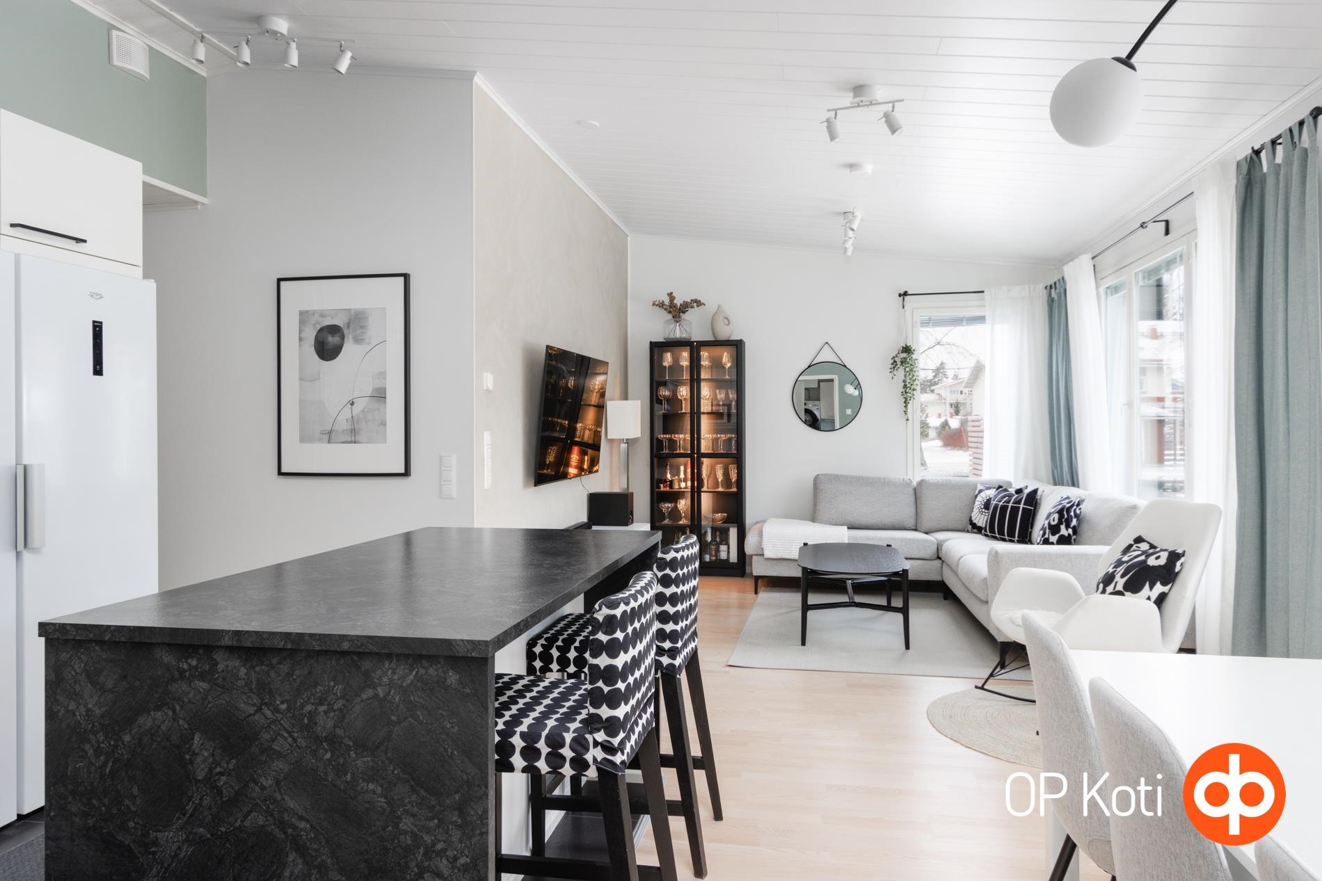 Tämän kodin helmiä ovat avara pohjaratkaisu ja korotettu sisäkatto keittiössä ja olohuoneessa. Ilta-auringosta pääset nauttimaan omalla terassilla. Toimivassa pohjaratkaisussa jokainen asuinneliö on käytössä.
