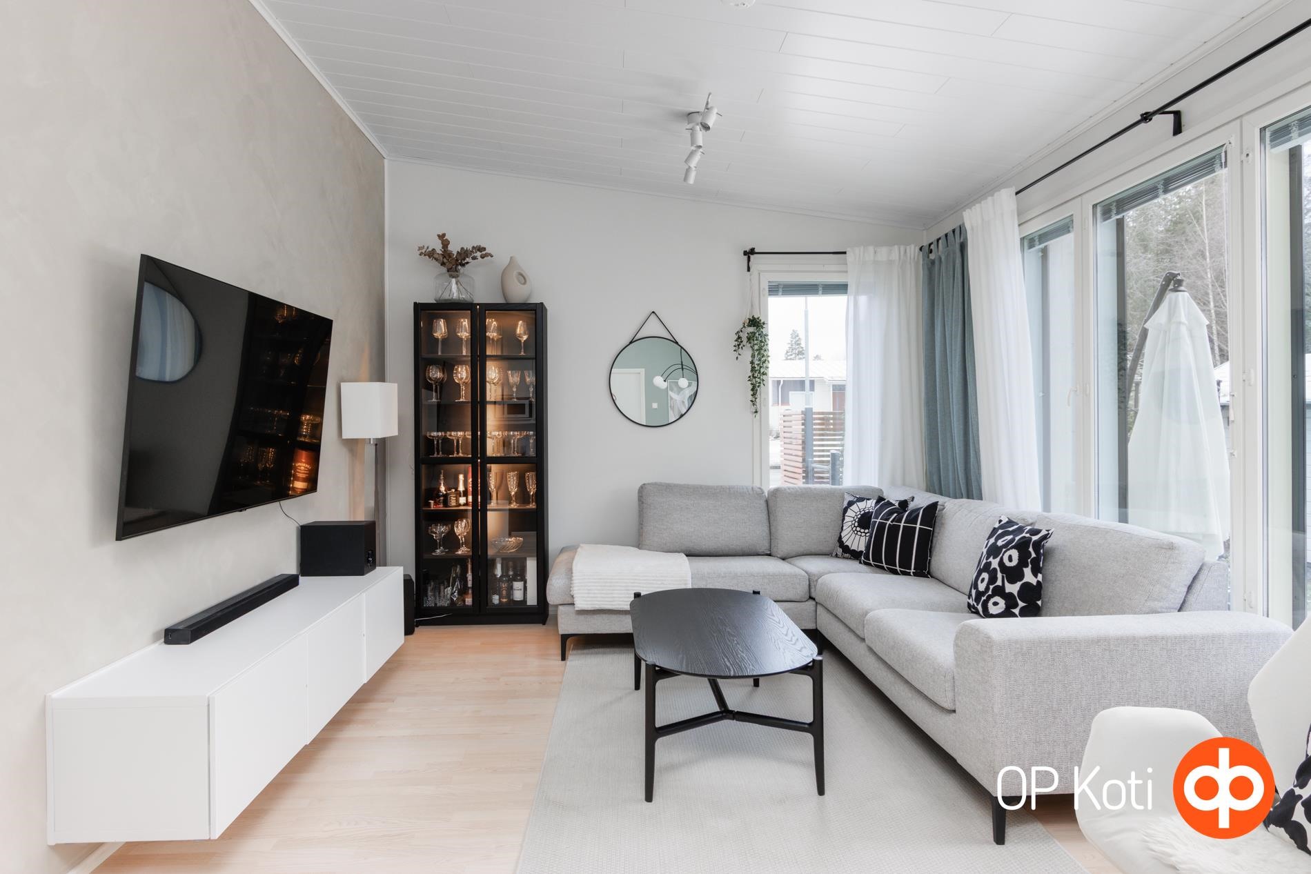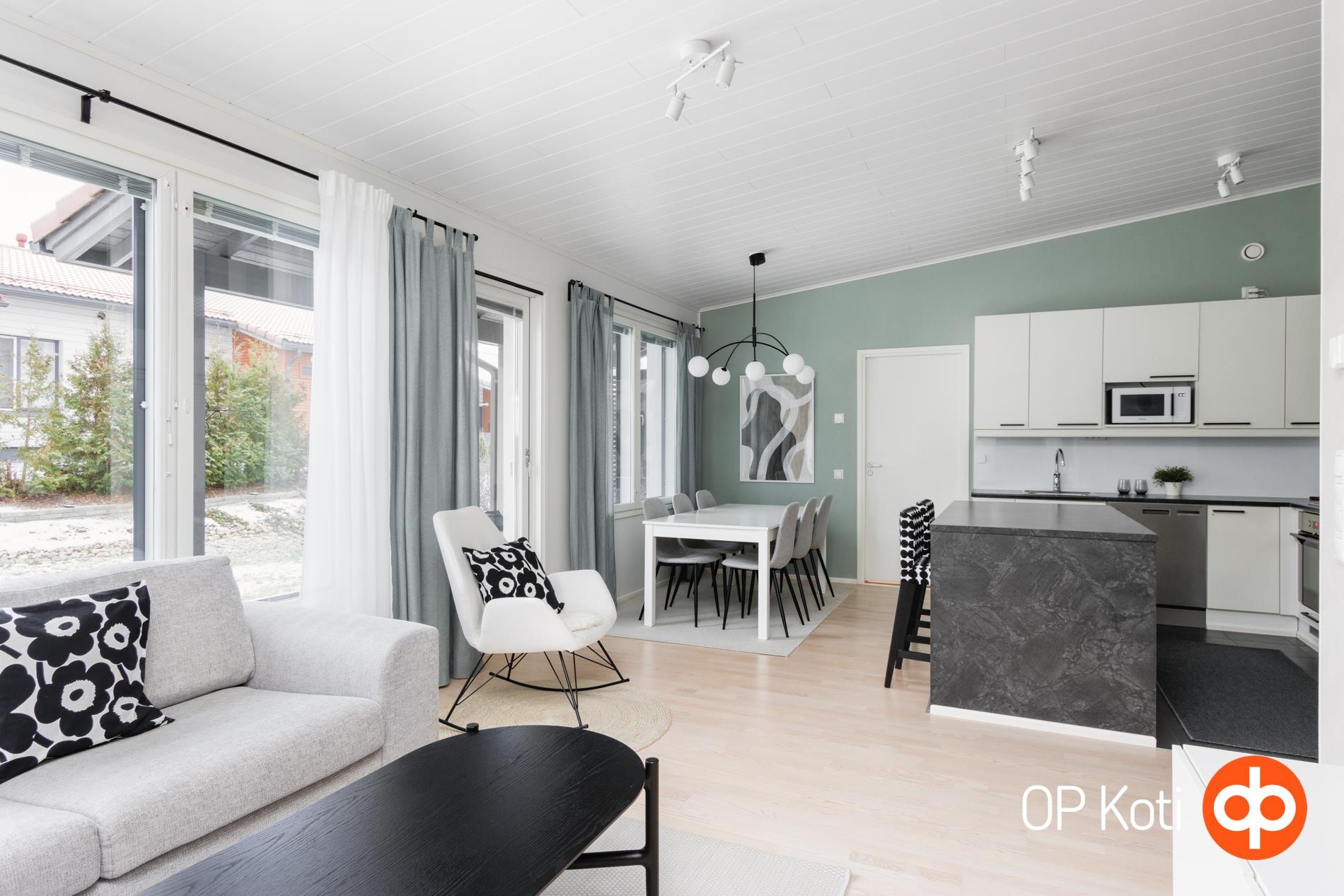 Ihanan valoisa ja hyvin pidetty yksitasoinen päätyneliö valmiina uusille asukkailleen Savolanniemessä.