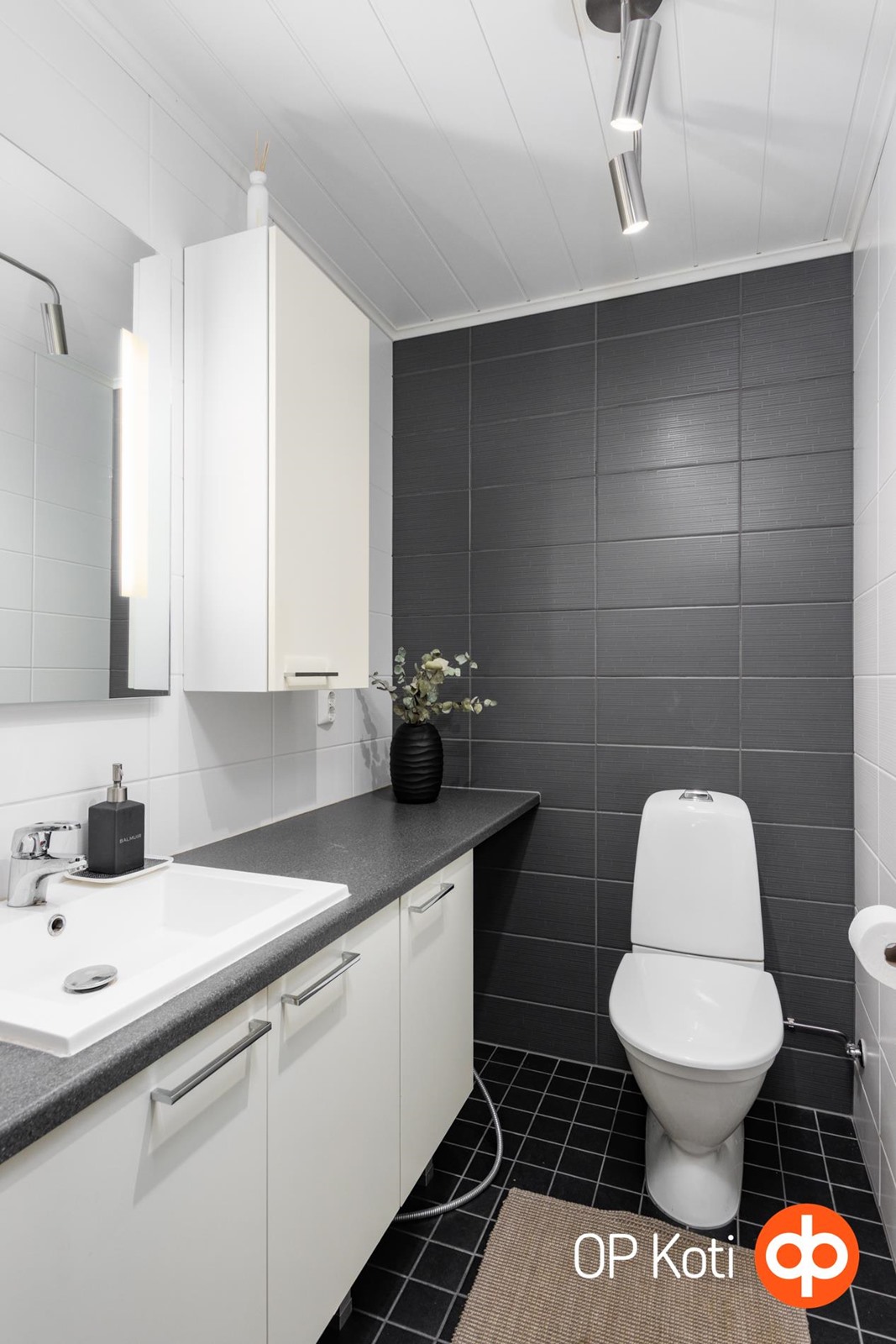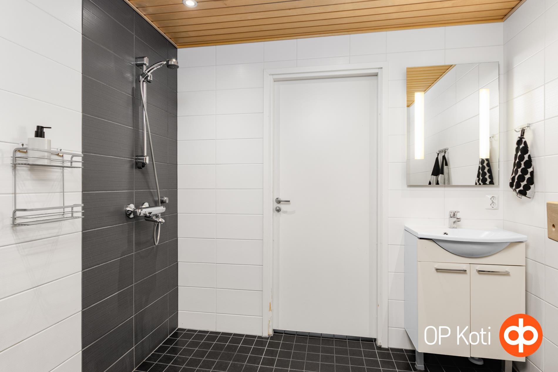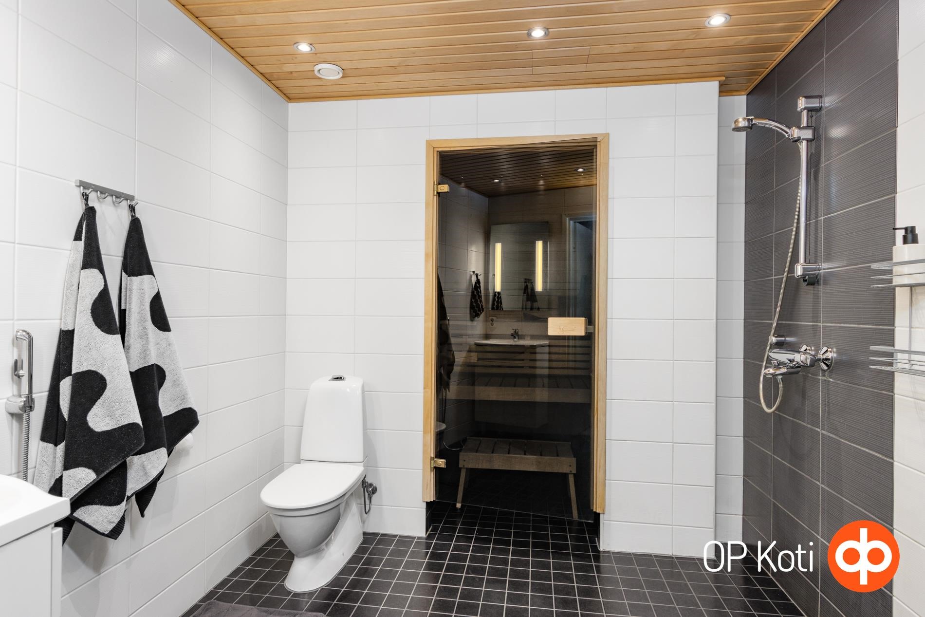 - Sauna, sähkökiuas 2024, kylpyhuone, erillinen wc, suihku x 2, peilit, kaapit, allaskaappi, pesukoneliitäntä, lattialämmitys, kiinteät valaisimet.