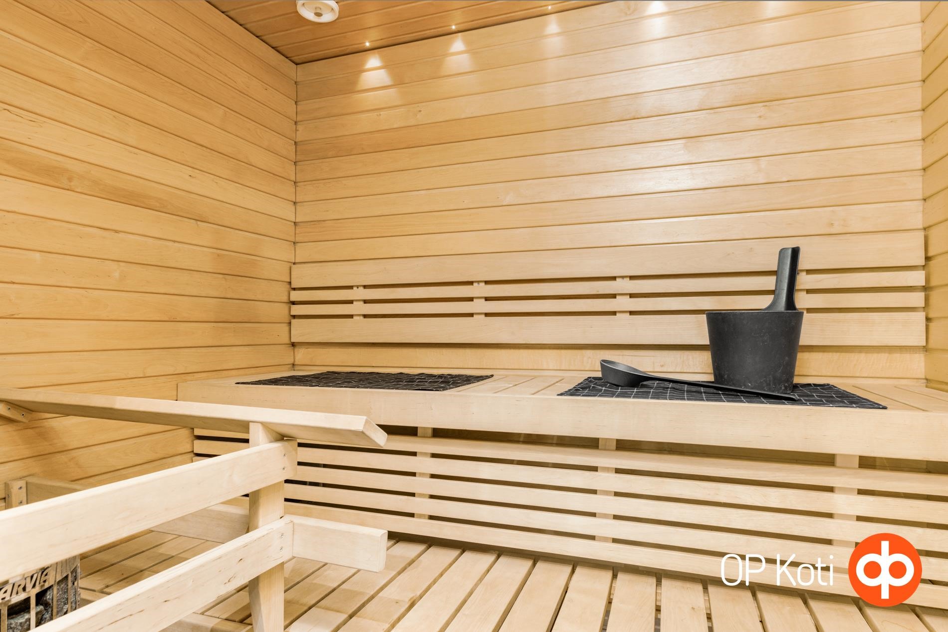 Tilava olohuone yhdessä keittiötilan kanssa muodostaa avaran kokonaisuuden kotoisaan oleskeluun. Isossa makuuhuoneessa on oma vaatehuone. Kotisaunassa on leppoisat löylyt ja bonuksena kaksi suihkua.