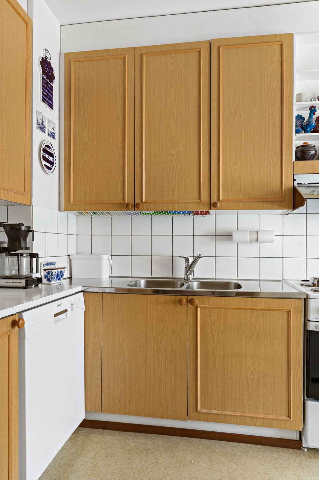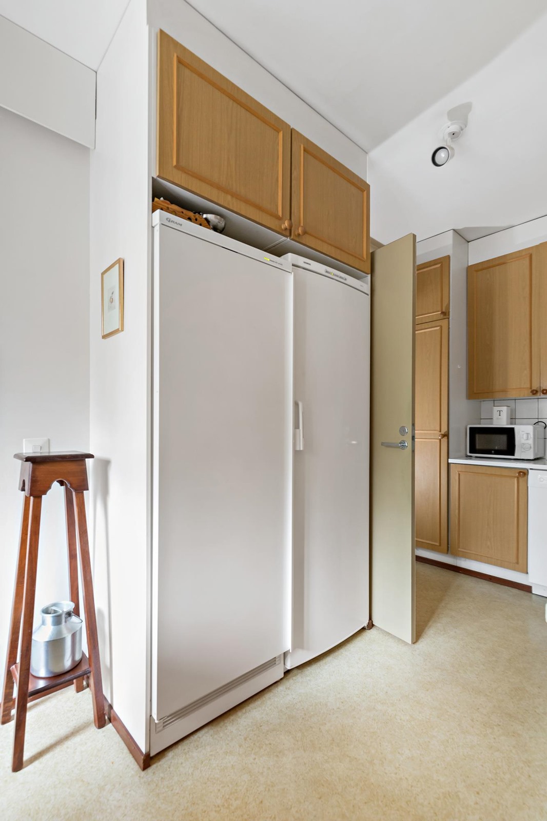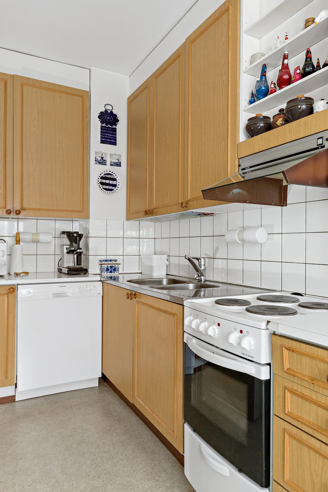 - Jääkaappi, pakastekaappi, lattialiesi, liesituuletin, astianpesukone, kaapistot.