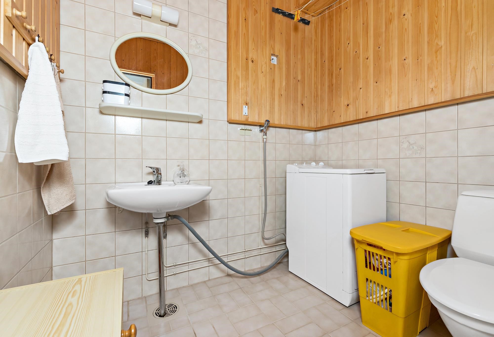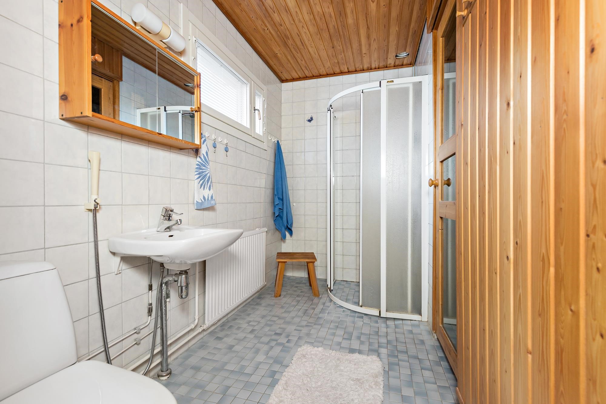 - Sauna, sähkökiuas, kylpyhuone, erillinen wc, suihku, suihkukaappi, peilit, pesukoneliitäntä, lattialämmitys, kiinteät valaisimet.