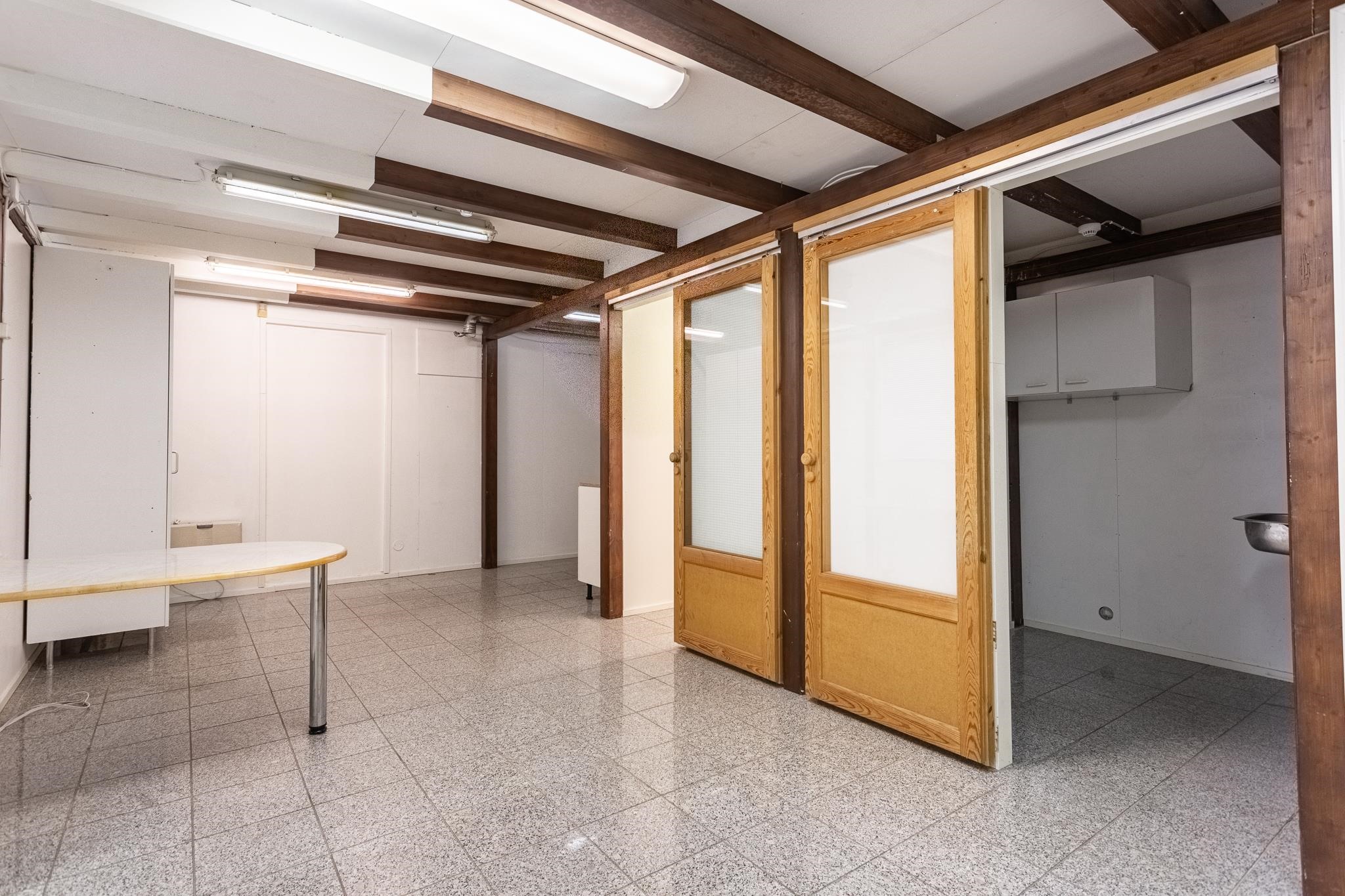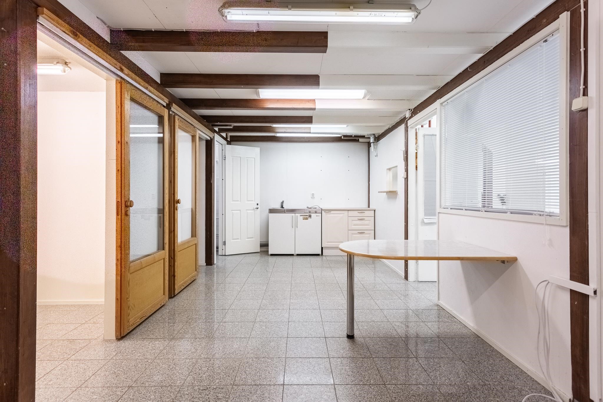 avoin etutila + parvi + toimitila + keittiötila + wcHeti vapaa tilava liiketila Akaan Kylmäkosken liikekeskuksesta.