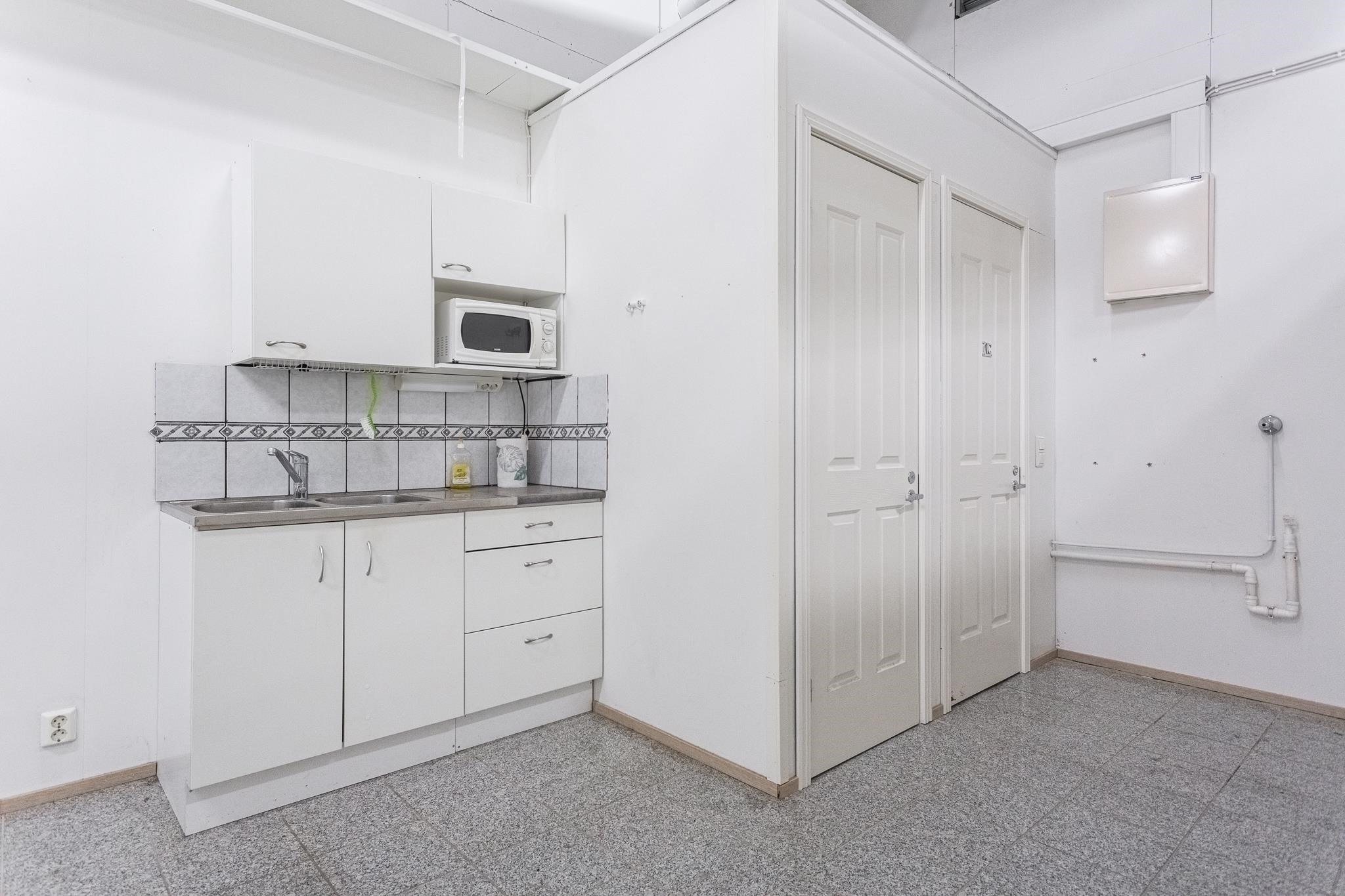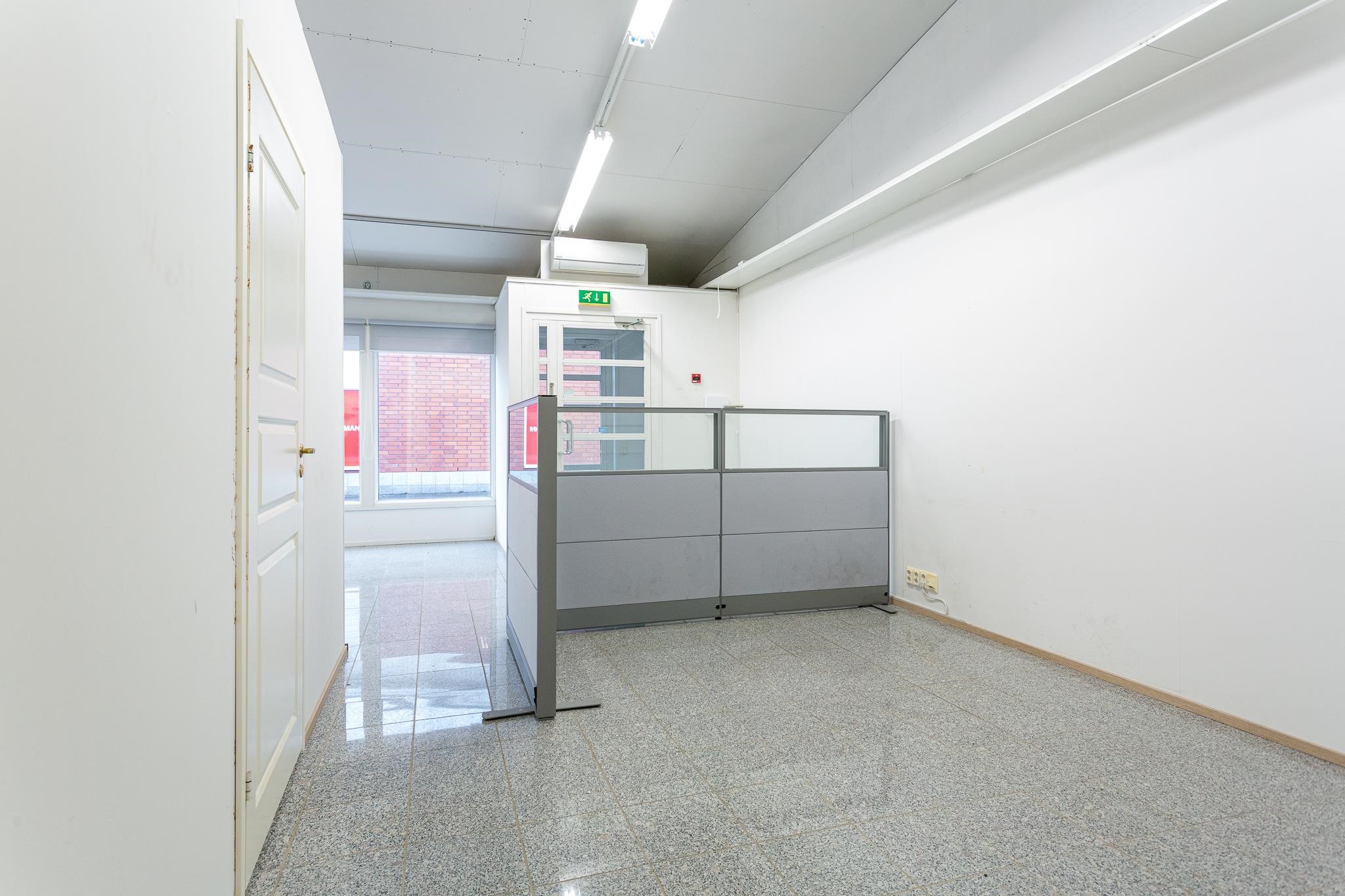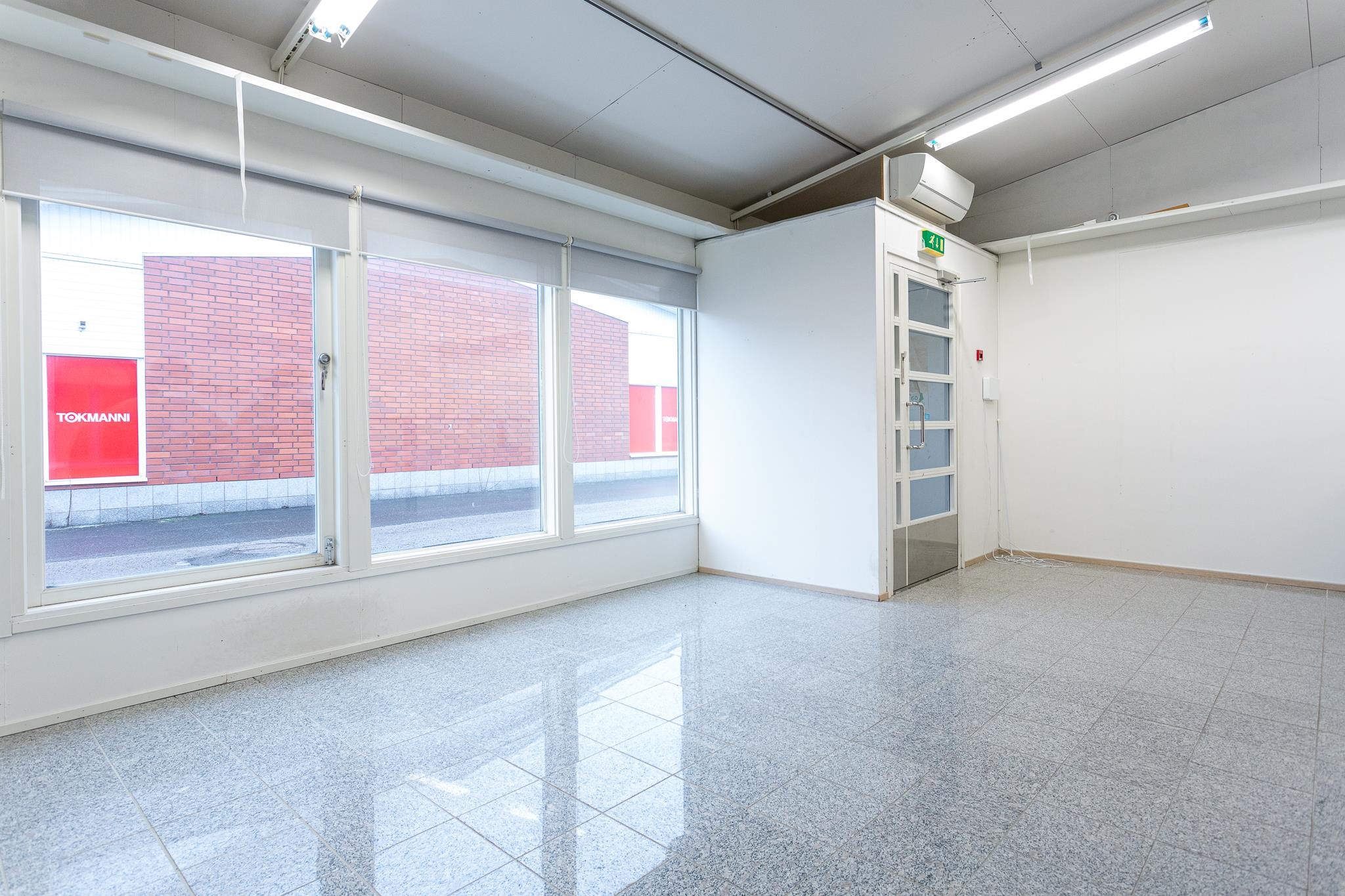 Aulatila, 2kpl toimistohuoneita, keittiötila ja 2kpl wc. Ilmalämpöpumppu liiketilassa.