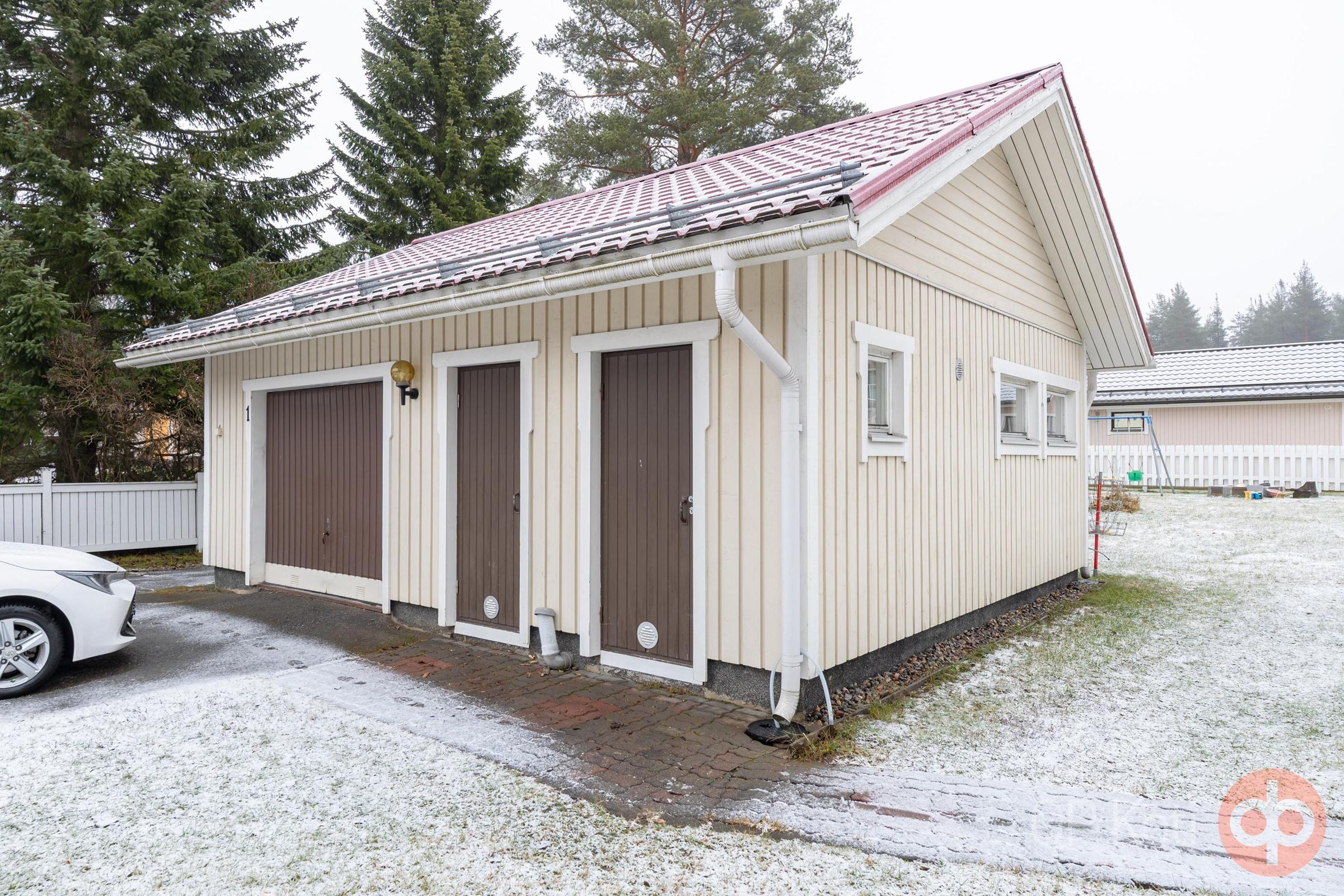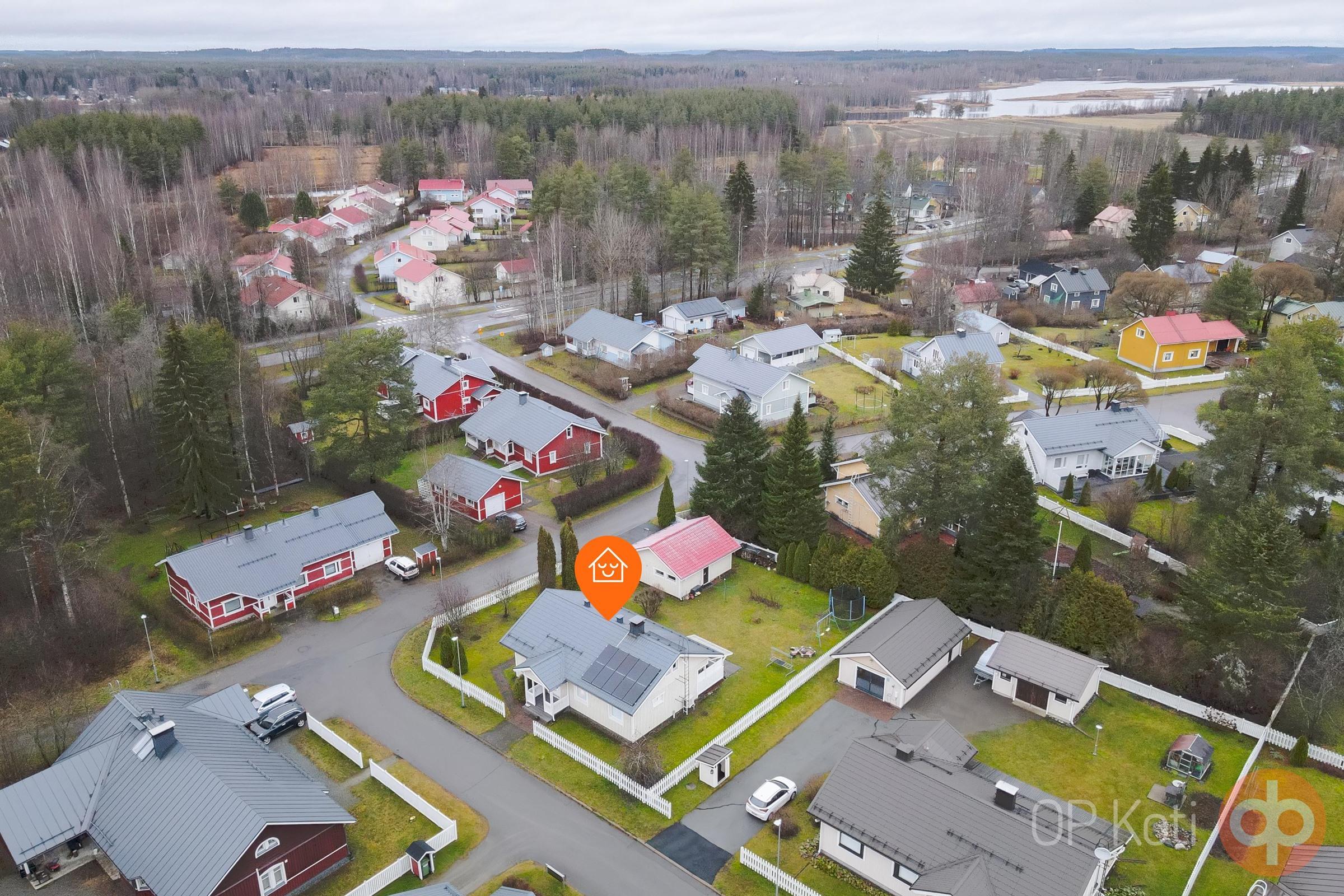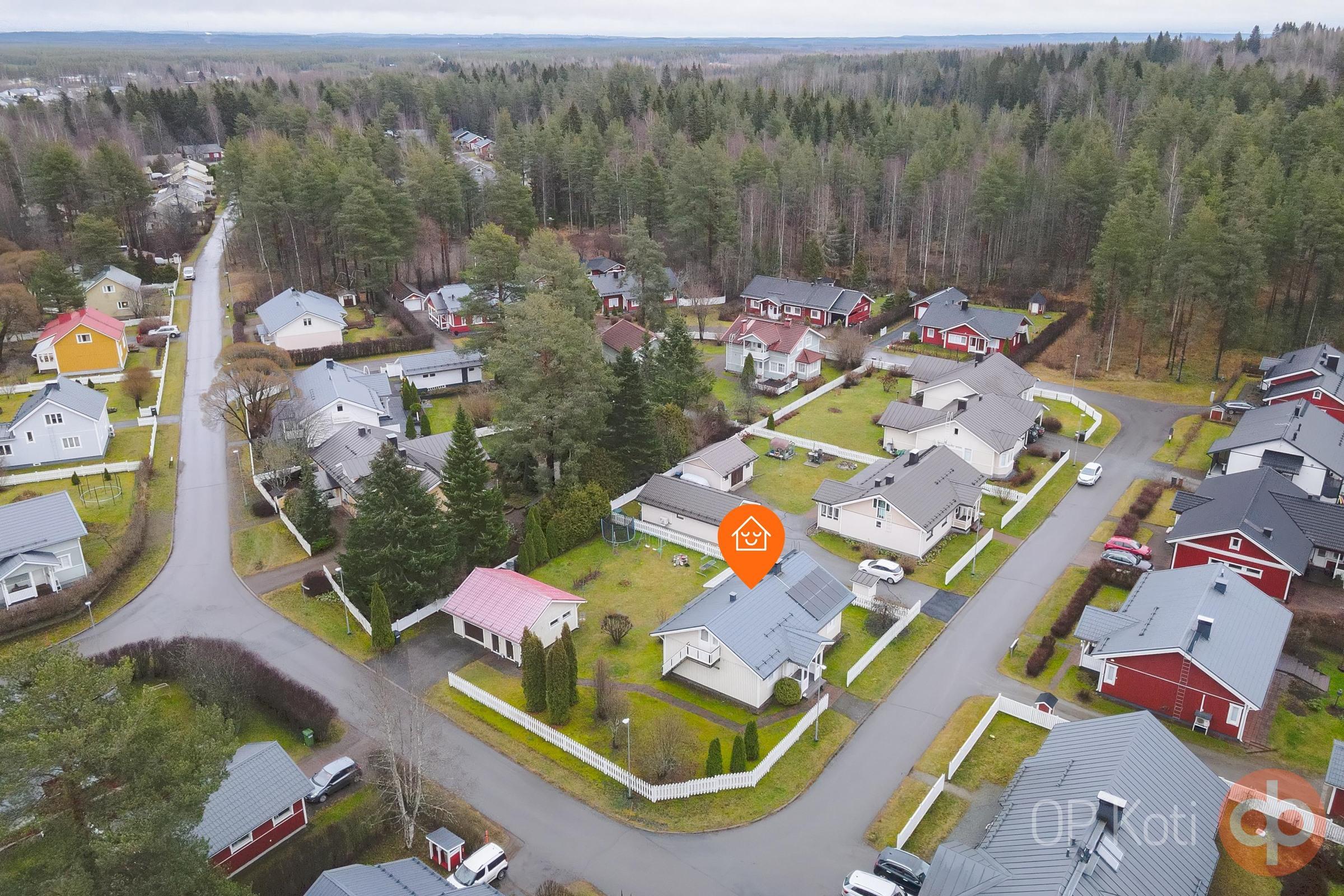 Talo on rakennettu vuonna 1987 ja siitä on pidetty vuosien varrella hyvää huolta. Kodissa on kaksi makuuhuonetta, takkahuone, tilava ja valoisa olohuone sekä avara keittiö. Käytännöllisyyttä arkeen tuovat kodinhoitohuone, kylpyhuone ja sauna, jossa voi nauttia puukiukaan lämmöistä. Kodin yläkertaan on rakennettu jo valmiiksi askartelutila, johon on mahdollista rakentaa portaat sisäkautta talosta. Säilytyksestä vastaa iso autotalli-varastorakennus.
