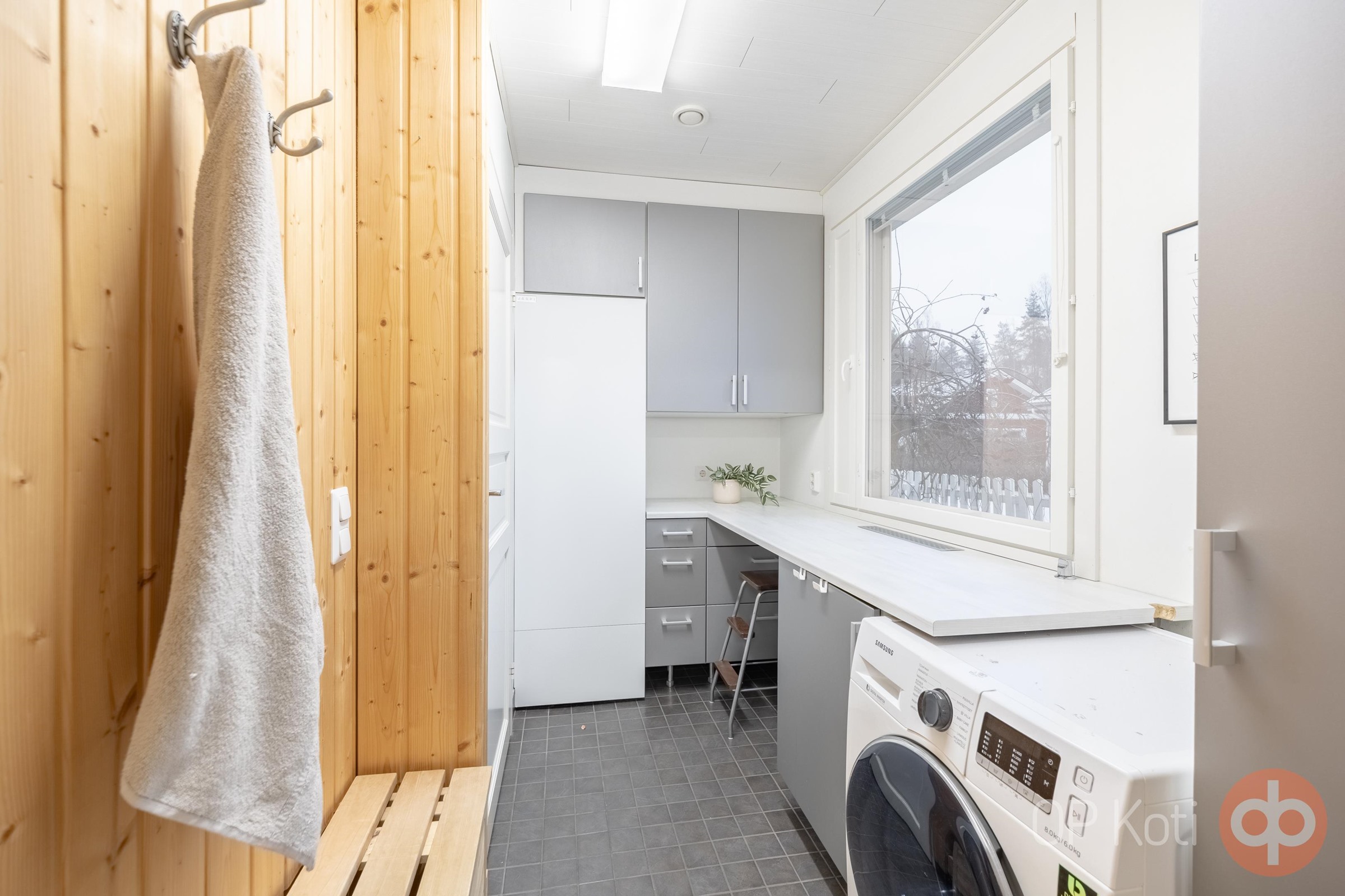- Puukiuas, kylpyhuone, erillinen wc, suihku, peilikaappi, kaapit, allaskaappi, pesukoneliitäntä, lattialämmitys, kiinteät valaisimet.