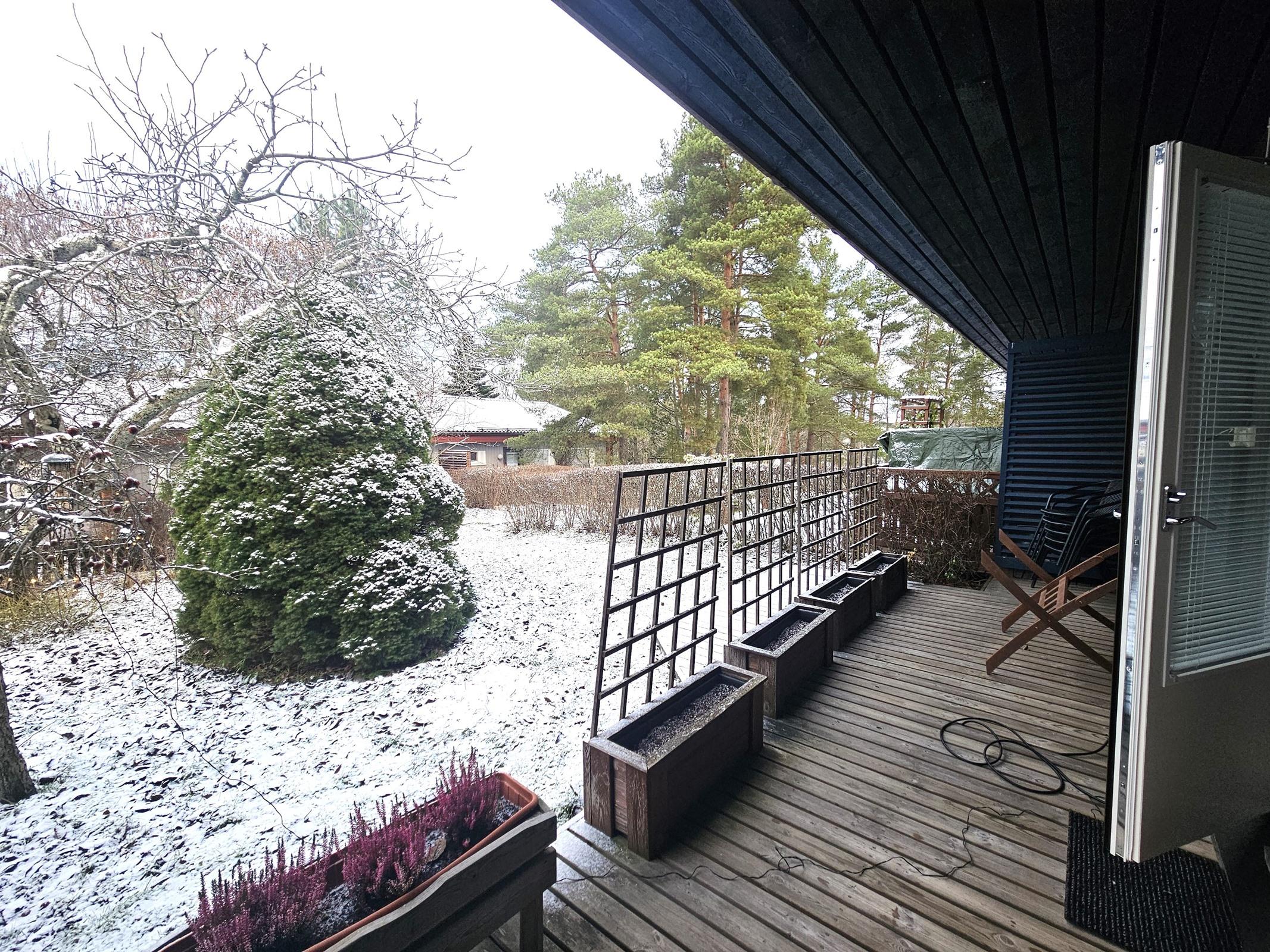 - pihanäkymät molemmin puolin asuntoa. Ilmansuunnat, itä-länsi