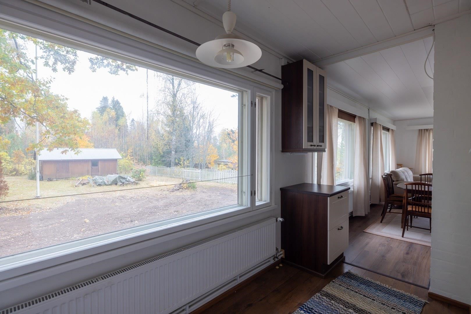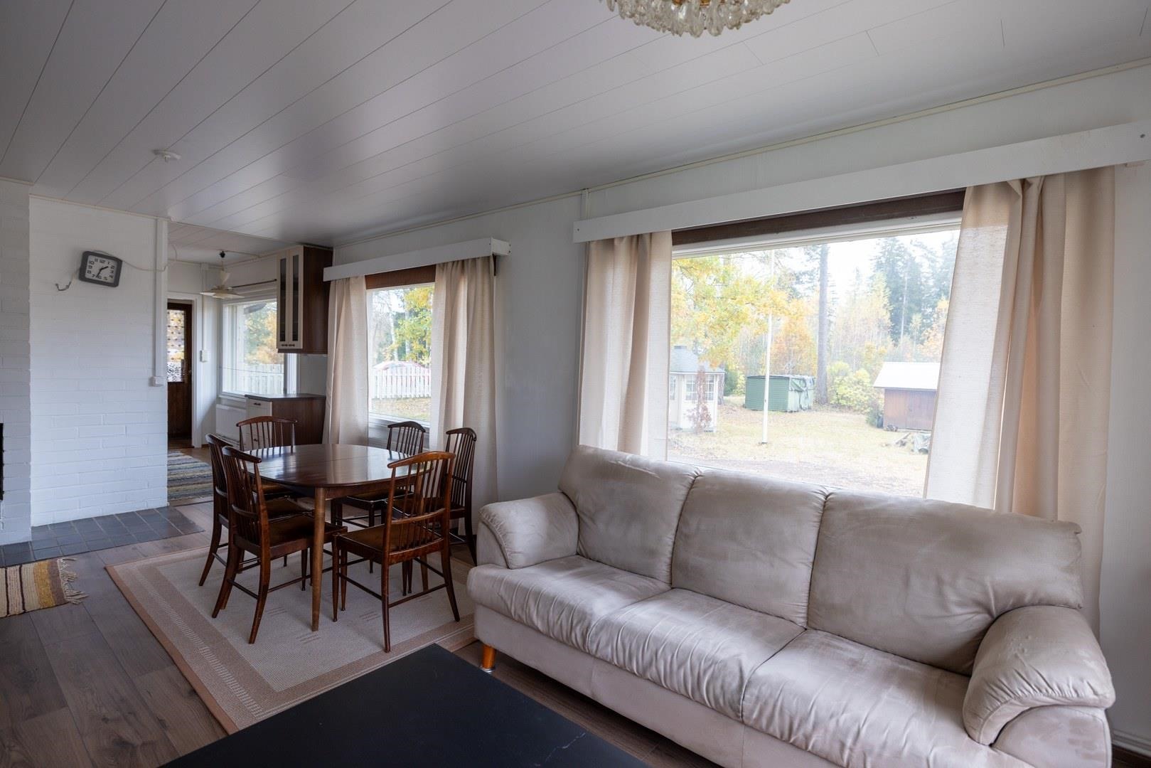 Tule tustustumaan kodikkaaseen ja hyvin pidettyyn omakotitaloon suositulla Husulan alueella! Tämä vuonna 1965 rakennettu kivirakenteinen koti tarjoaa toimivan pohjaratkaisun, mukavat asuintilat ja paljon arvokkaita, jo tehtyjä remontteja, jotka tekevät asumisesta huoletonta.Talon sydämenä toimii valoisa olohuone, jonka yhteydessä on modernisoitu sähköistys sekä uusittu lattiarakenne ja laminaattilattia. Kaksi makuuhuonetta tarjoavat rauhalliset lepohetket, ja keittiössä on kaikki tarvittava arkeen: jääkaappipakastin, sähköliesi, liesituuletin, mikro sekä astianpesukone. Saunatilat kutsuvat rentoutumaan; tunnelmallisessa puukiukaallisessa saunassa nautit perinteisistä löylyistä. Kylpyhuone on kaakeloitu ja erillinen wc lisää asumismukavuutta. Laaja, 1 360 m² oma tontti ja suojaisa pihapiiri. Tilava oma tontti tarjoaa mahdollisuuksia niin puutarhanhoitoon kuin vapaa-ajan viettoon. Lisäksi tontilla on vielä reilusti rakennusoikeutta jäljellä (käytetty 110 m², kokonaisra 272 m²) mahdollistaa laajennukset tai lisärakennukset.