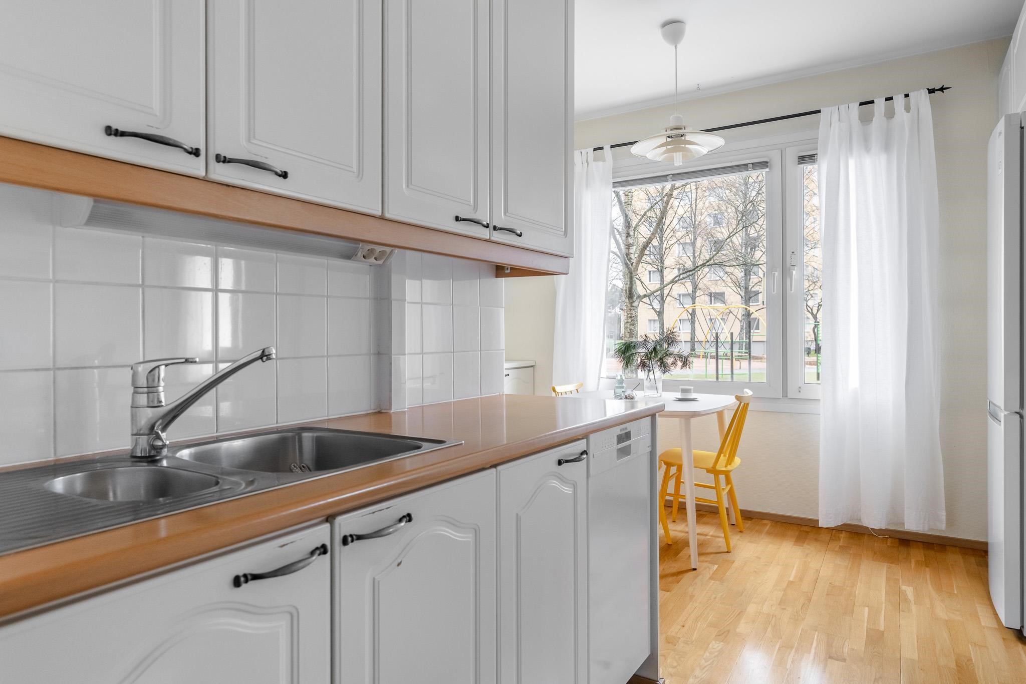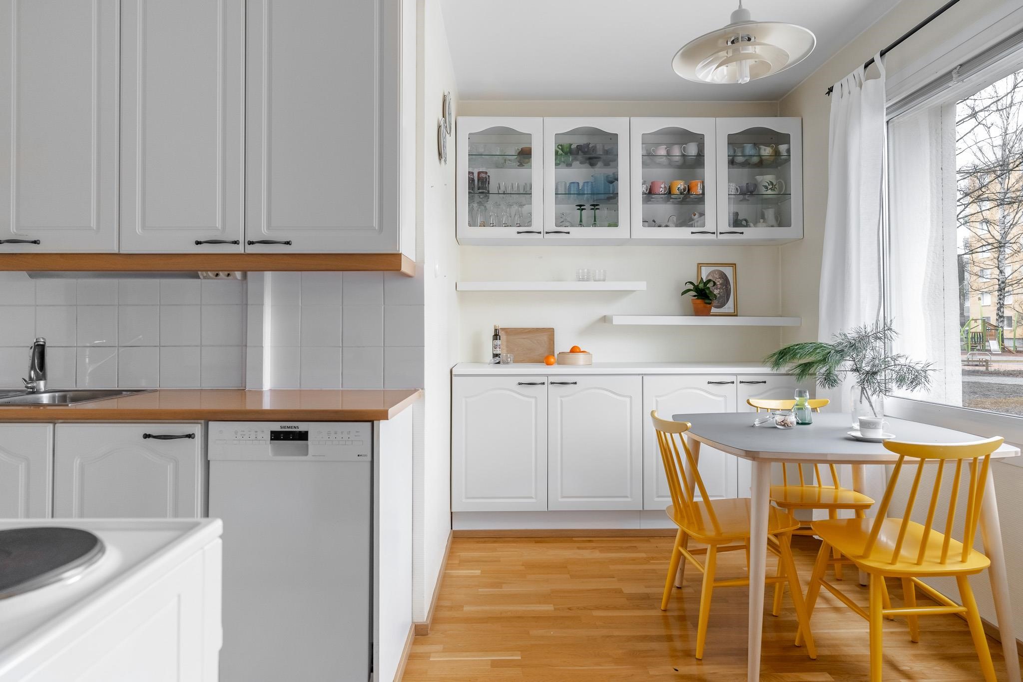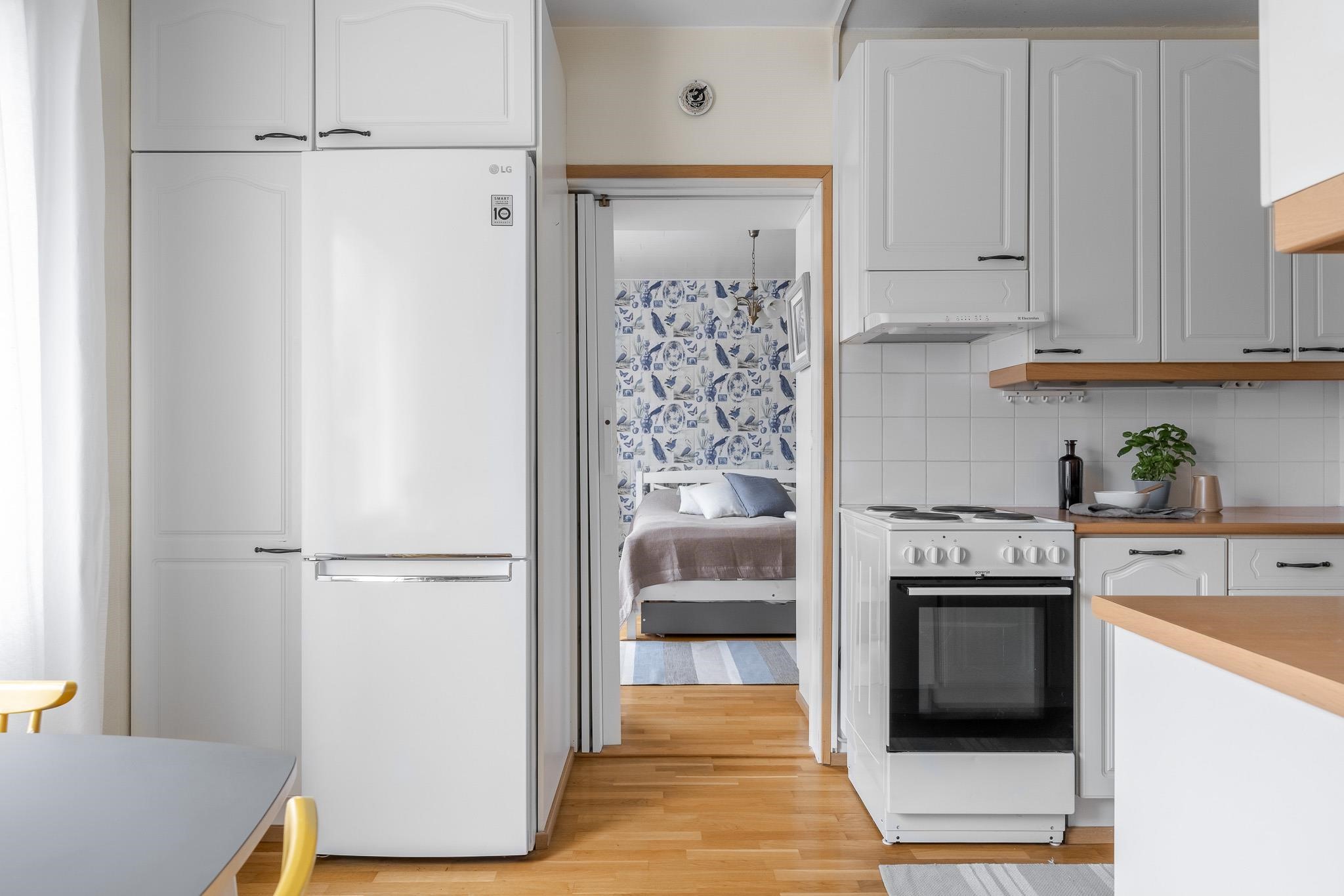 - Jääkaappipakastin LG uusittu 2022, sähköliesi 2017, liesituuletin ei toimi, astianpesukone 2018, kaapistot, kiinteät valaisimet.