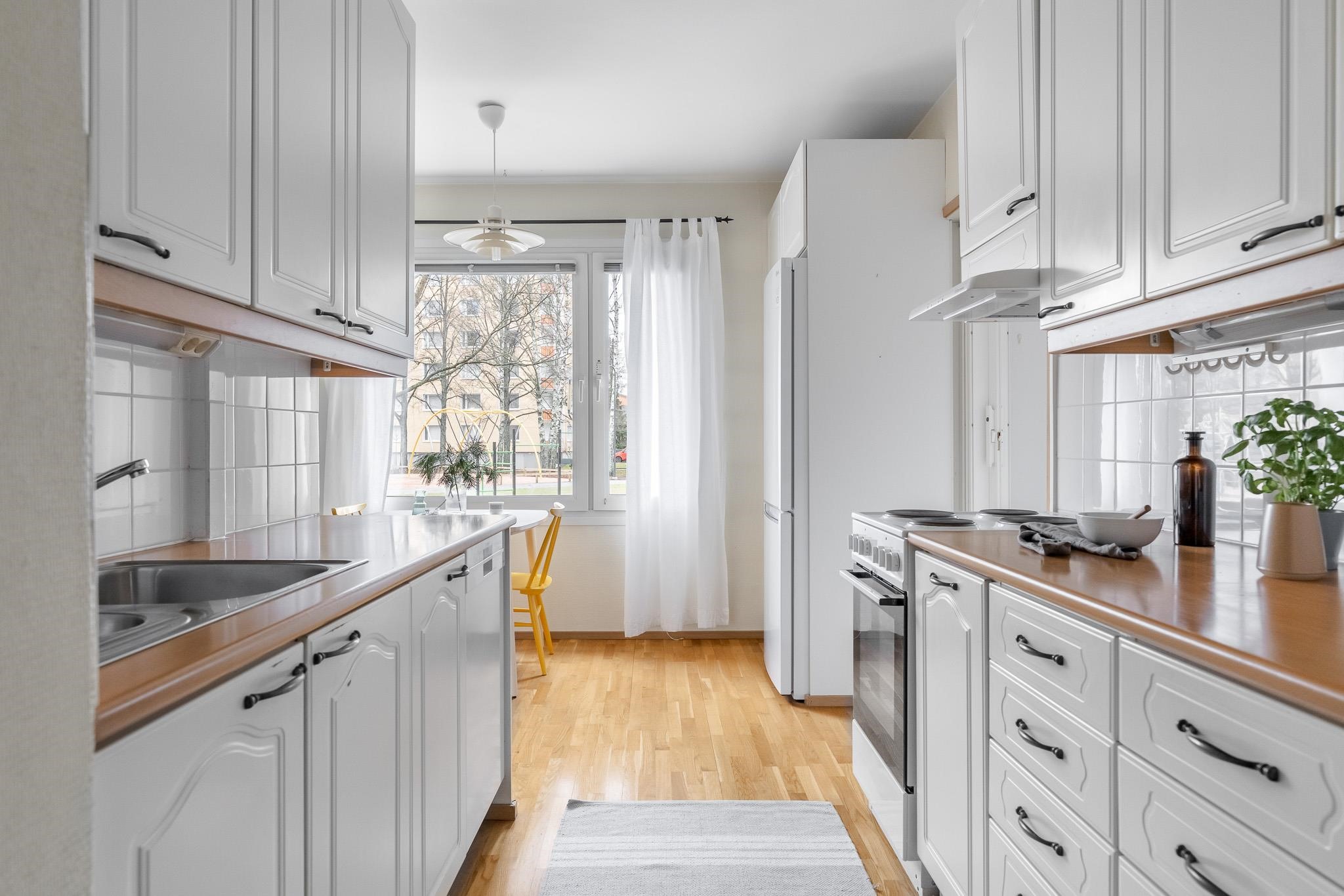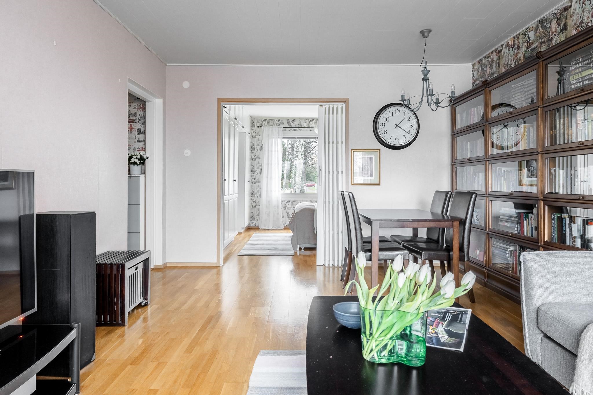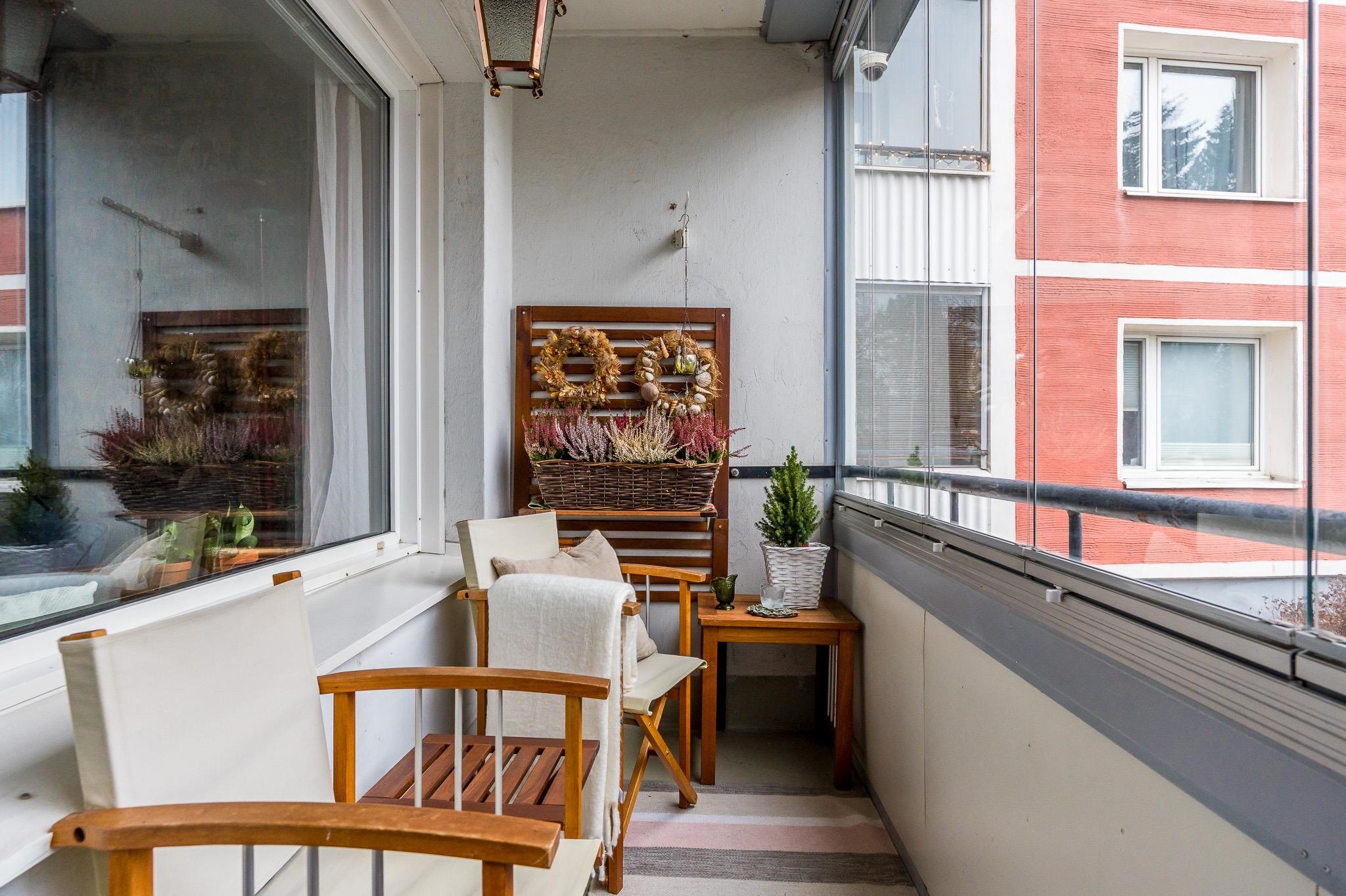 Tässä Kanslerintie 6:n kerrostaloasunnon 77:n neliön kodissa on kolme huonetta ja keittiö. Olohuoneen ja makuuhuoneiden etelään suuntaavat ikkunat täyttävät tilat luonnonvalolla, kun taas keittiö ja toinen makuuhuone tarjoavat rauhallisen näkymän pohjoiseen. Keittiöstä löydät kaiken tarvittavan, jotta ruoanlaitto sujuu vaivattomasti. Keittiöön mahtuu mukavasti 4-6 hengen ruokapöytä. Myös olohuoneeseen saat mahtumaan sohvaryhmän lisäksi tarvittaessa ruokailuryhmän. Makuuhuoneet ovat tilavia ja niistä toisessa on runsaasti kaappitilaa ja toisessa vaatehuone. Lasitettu parveke toimii erinomaisena lisätilana, jossa voit nauttia aamukahvit tai viettää iltaa. Säilytystilaa on riittävästi vaatehuoneen ja vinttikomeron ansiosta. Asunto-Osakeyhtiö Patterinhaassa on tehty useita parannuksia, kuten linjasaneeraus sekä hissien sähkömodernisointi, jotka takaavat mukavan asumisen pitkälle tulevaisuuteen. Yhtiön muihin tiloihin kuuluvat muun muassa sauna, pesutupa ja urheiluvälinevarasto.