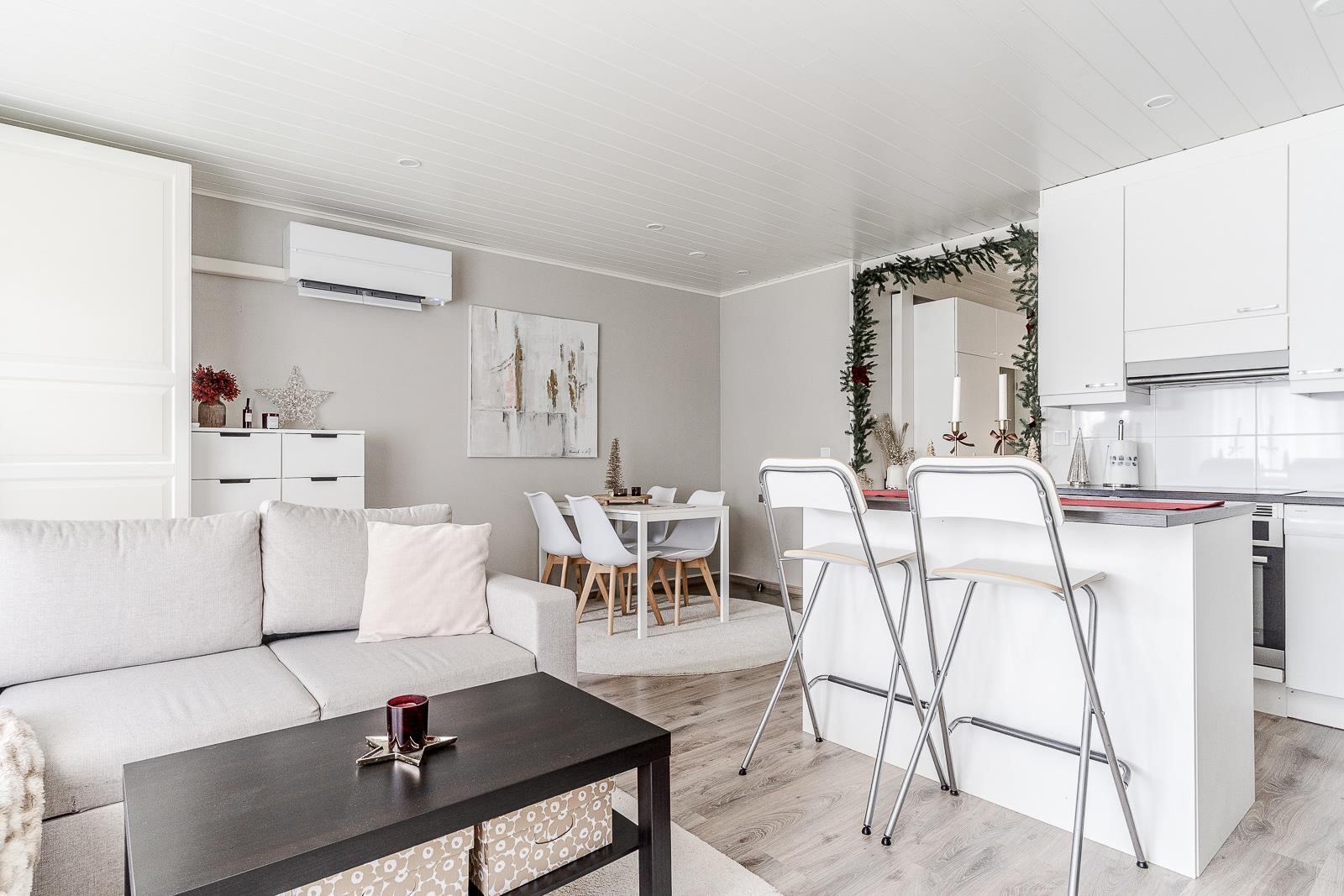 Puiston laidalla 1986 valmistuneessa talossa, vuosien mittaan paljon uudistettu koti. Olohuone ja keittiö yhtä tilaa saarekkeella jaettuna. Keittiön vaaleat sävyt luovat tilaan avaran, ja valoisan ilmeen. Myös kylpyhuone ja sen yhteydessä oleva wc on päivitetty tämän päivän tarpeisiin. Sähkölämmitystä tukee lähes uusi ilmalämpöpumppu. Olohuoneesta käynti terassille josta puistonäkymät ilta-auringon suuntaan. Tämä hyvin hoidetun yhtiön kaunis kaksio on todella tutustumisen arvoinen. Sovi oma esittelysi Sami Kärri 0406308535 sami.karri@op.fi