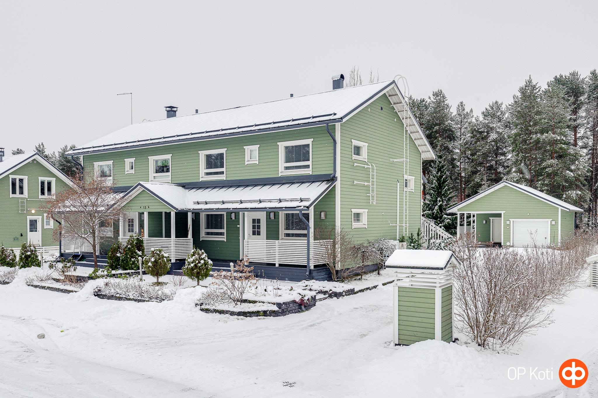 Tämä vuonna 2012 rakennettu paritalo tarjoaa neljä makuuhuonetta, tilavan olohuoneen, takkahuoneen, toimivan keittiön sekä sauna- ja kylpyhuonetilat. Asuinpinta-alaa on 140 m², ja lisäksi kellarikerroksesta löytyy varasto- ja harrastetilaa. Talon varustelu on huippuluokkaa: energiatehokas vesi-ilmalämpöpumppu, vesikiertoinen lattialämmitys ja varaava takka takaavat miellyttävän asumisviihtyvyyden. Lisäksi autotalli, autokatos ja ulkovarasto tuovat lisätilaa arjen tarpeisiin.