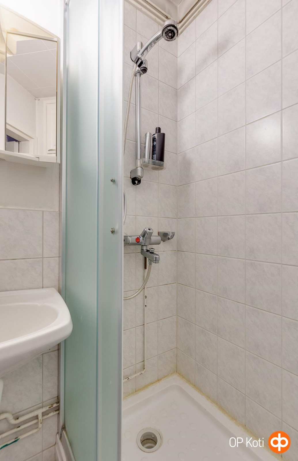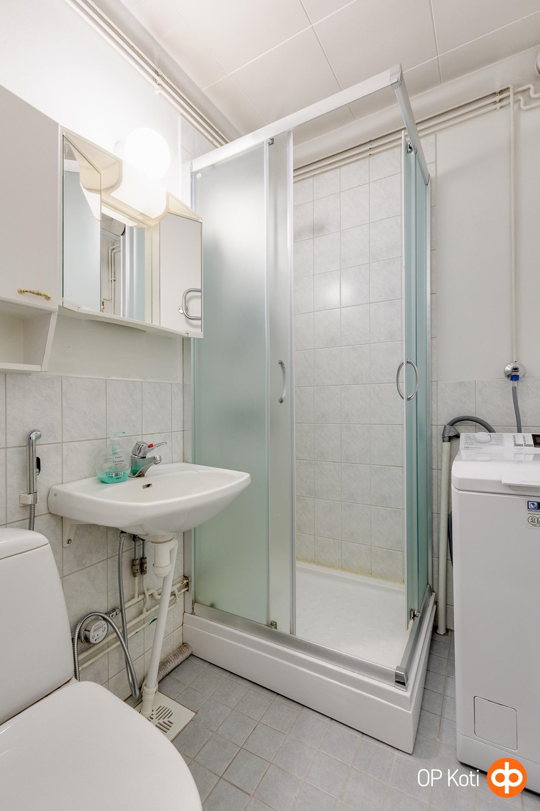 - Kylpyhuone, suihku, peilikaappi, kaapit, pesukoneliitäntä, lattialämmitys, kiinteät valaisimet.