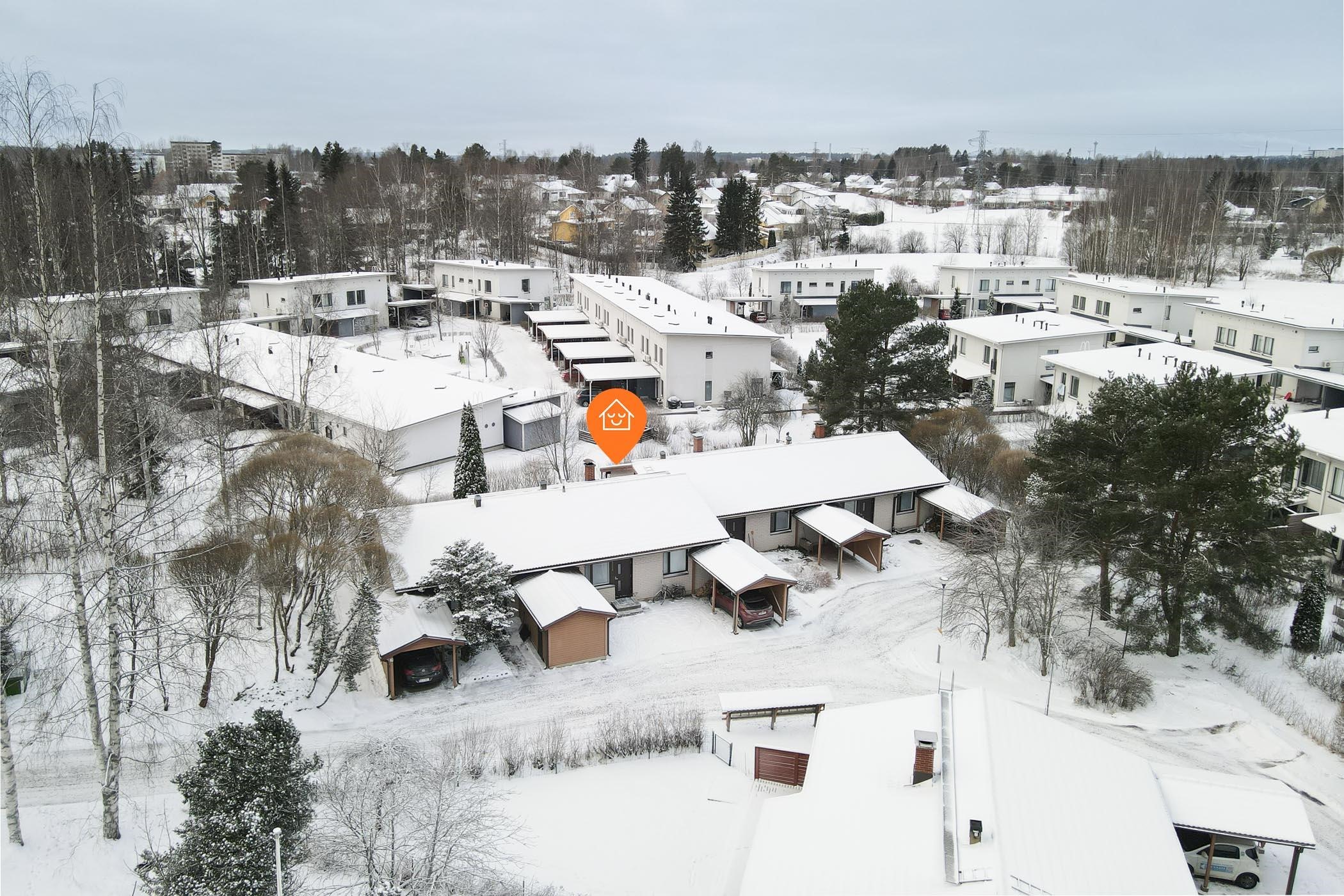 Autopaikka ja ulkovarasto sijaitsevat kätevästi sisääntulon yhteydessä. Omatonttinen yhtiö, hyvät lähipalvelut ja sujuvat kulkuyhteydet tekevät arjesta helppoa.