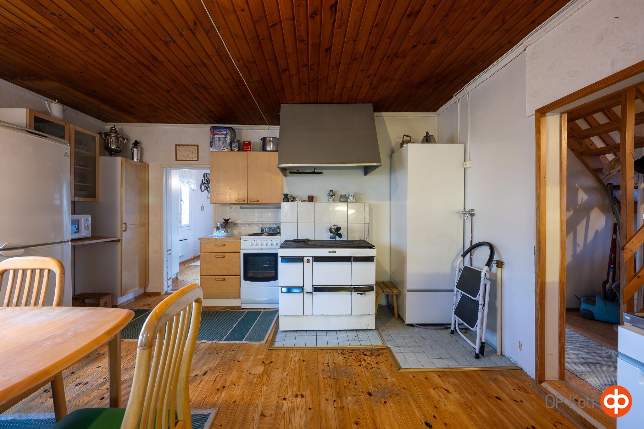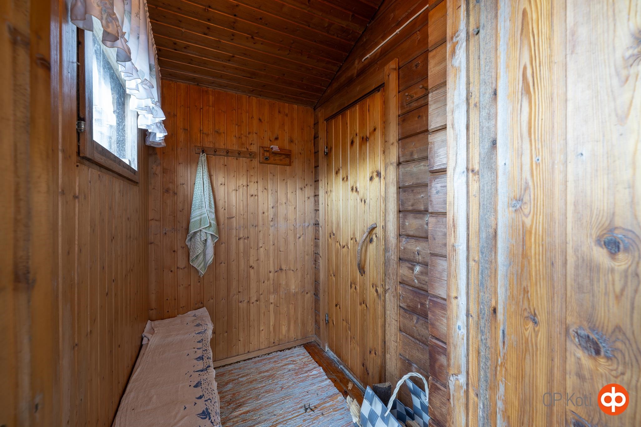 - Varusteina: Jääkaappi, sähköliesi, liesikupu, astianpesukone. puuliesi, ns. leinoliesi (ei toimi kunnolla), pesukoneliitäntä ja lämminvesivaraaja