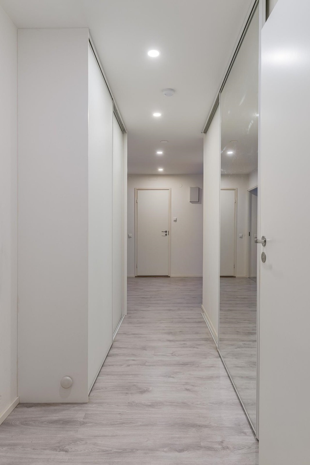 Keittiö: Seinät: maali. Lattia: laminaatti. Olohuone: Seinät: maali. Lattia: laminaatti. Makuuhuone 1: Seinät: maali. Lattia: laminaatti. Makuuhuone 2: Seinät: maali. Lattia: laminaatti. Kodinhoitohuone: Seinät: maali. Lattia: laatta. Kylpyhuone: Seinät: laatta. Lattia: laatta. Eteinen: Seinät: maali. Lattia: laminaatti.
