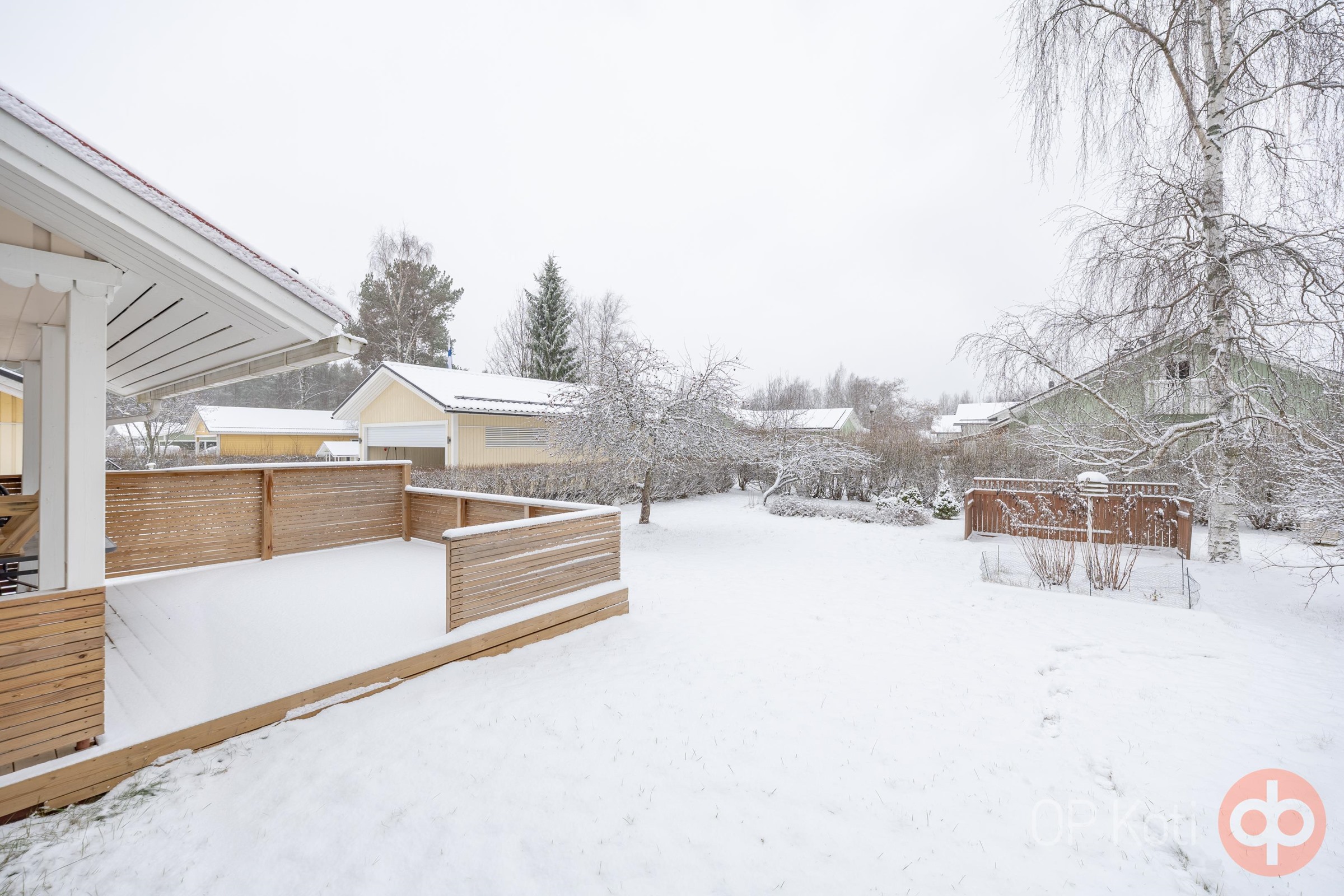 Talon etukuistia on jatkettu v. 2019, julkisivu ja sokkeli on maalattu v. 2021 ja takapihalle on tehty terassi v. 2023. Pihapiirissä sijaitsee erillinen talousrakennus, jossa on varastotilaa sekä puuliiteri. Tontti on aidattu pensasaidalla ja takapihalla on osittain aidattu patio, omenapuita ja istutuksia sekä hyvin tilaa niin lasten leikkeihin kuin omiin harrastuksiin.