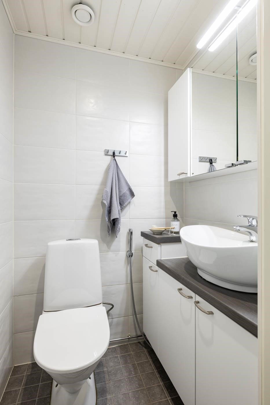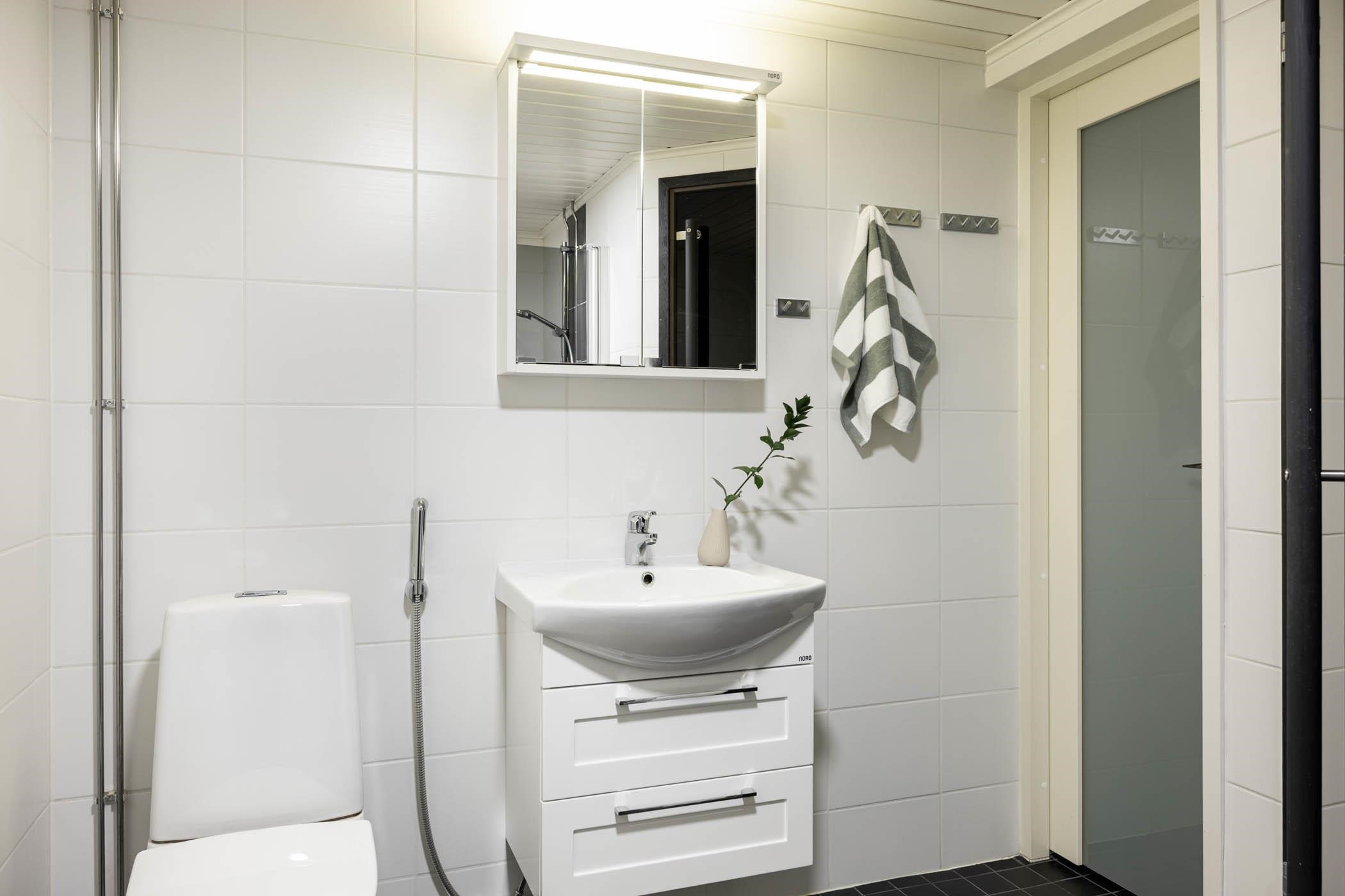 - Saunassa sähkökiuas (2017 pilarikiuas). Kylpyhuoneessa 2 suihkua, wc-istuin, suihku, suihkuseinä, peilikaappi, allaskaappi, lattialämmitys. Erillinen wc: peilikaappi, kaapit allaskaappi Kodinhoitohuoneessa pesukoneliitäntä, kaapistot, lattialämmitys. Sauna, kylpyhuone ja wc remontoitu 2016 taloyhtiön toimesta.