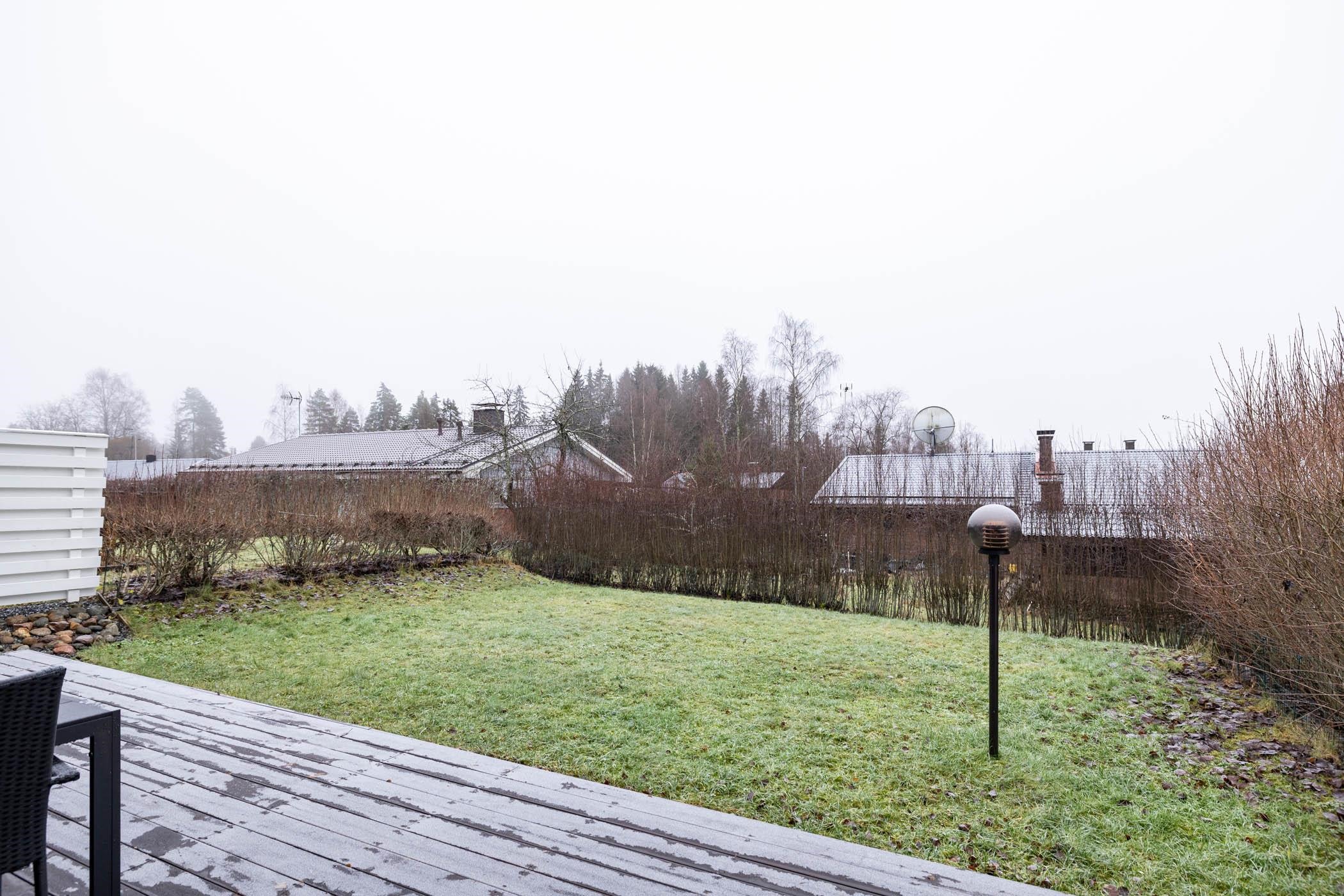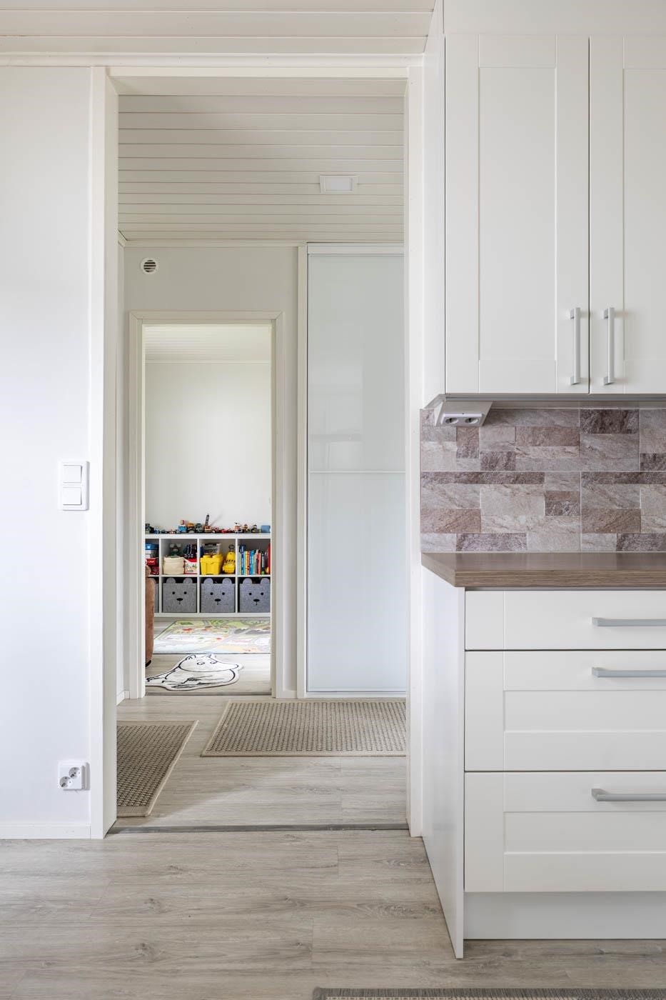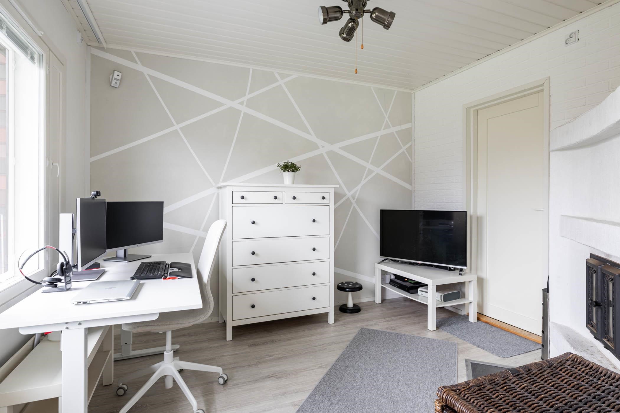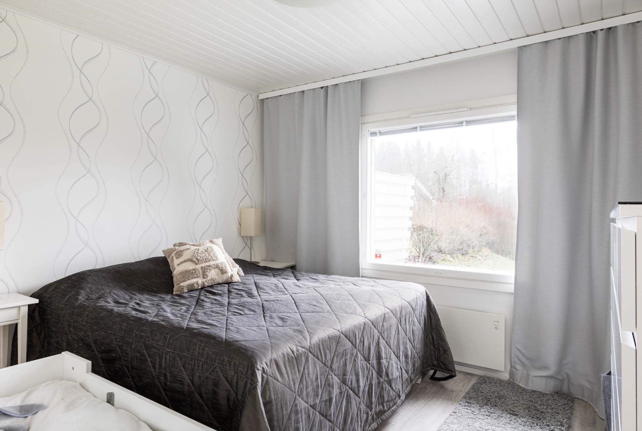 Keittiö: vinyylikorkki, maali. Olohuone: vinyylikorkki, tapetti. Makuuhuone 1: vinyylikorkki, maali/tapetti. Makuuhuone 2: vinyylikorkki, maali. Kodinhoitohuone: laatta, tapetti. Sauna: laatta, paneelit. Kylpyhuone: laatta, laatta. Eteinen: vinyylikorkki, maali. Tuulikaappi: laattalattia, sisutuslevy. Takkahuone: vinyylikorkki, maali.