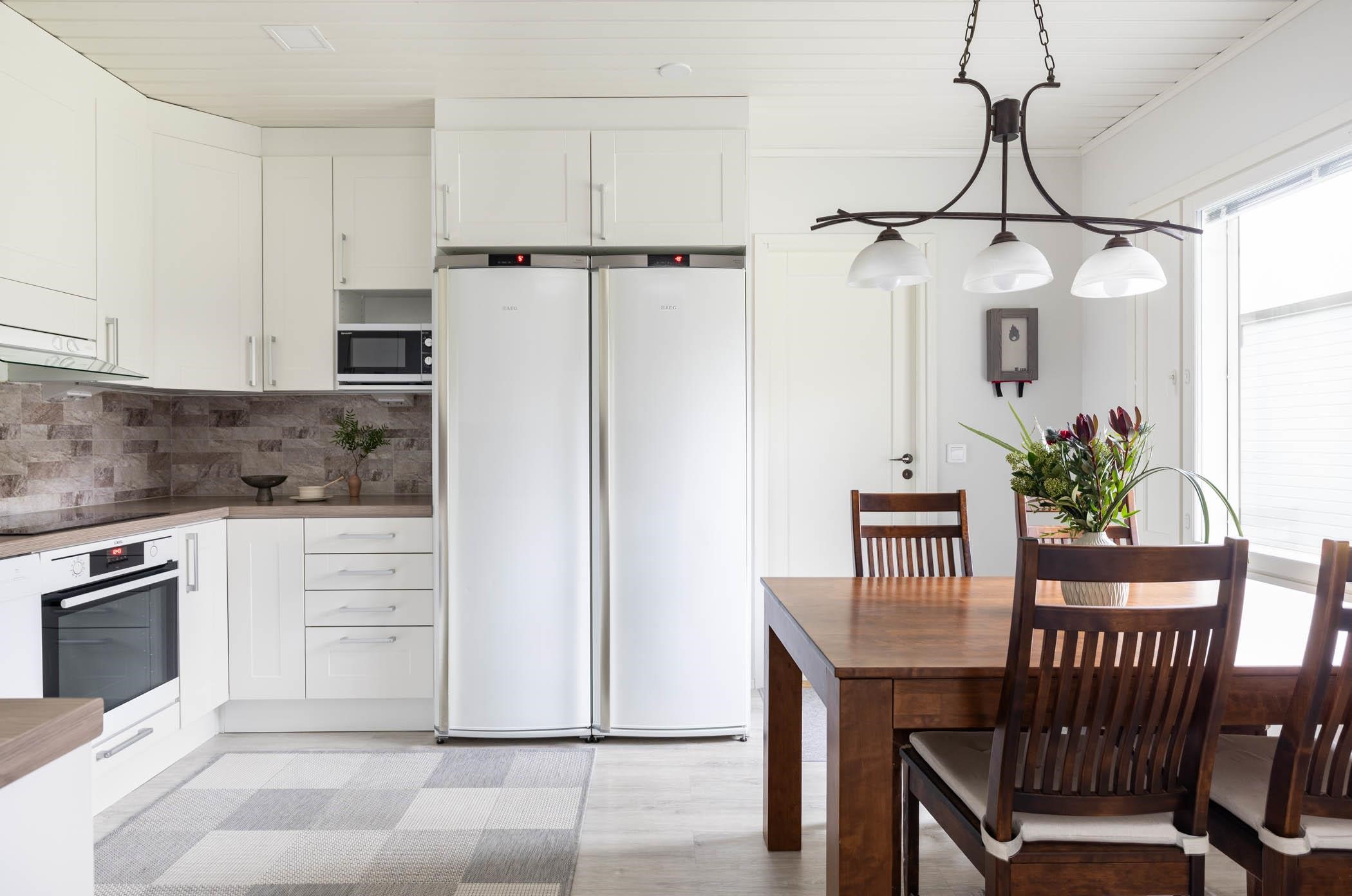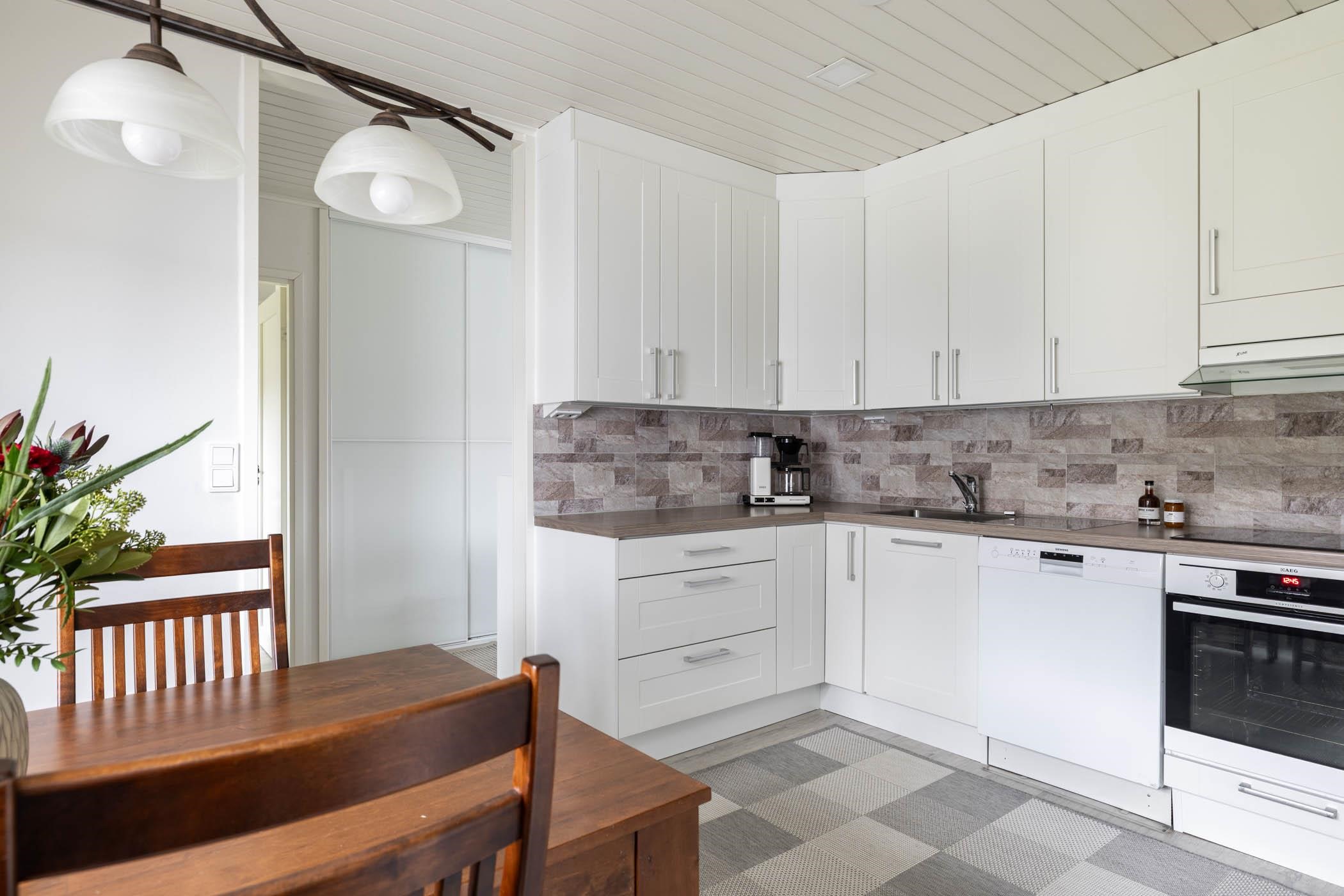 - Jääkaappi 2017, pakastekaappi 2017, kiertoilmaerillisuuni (pyrolyysiuuni) 2017, induktioliesitaso 2017, liesituuletin talotuuletin hormiin, astianpesukone v.2012, kaapistot, kiinteät valaisimet. Ideal keittiö uusittu 2017.