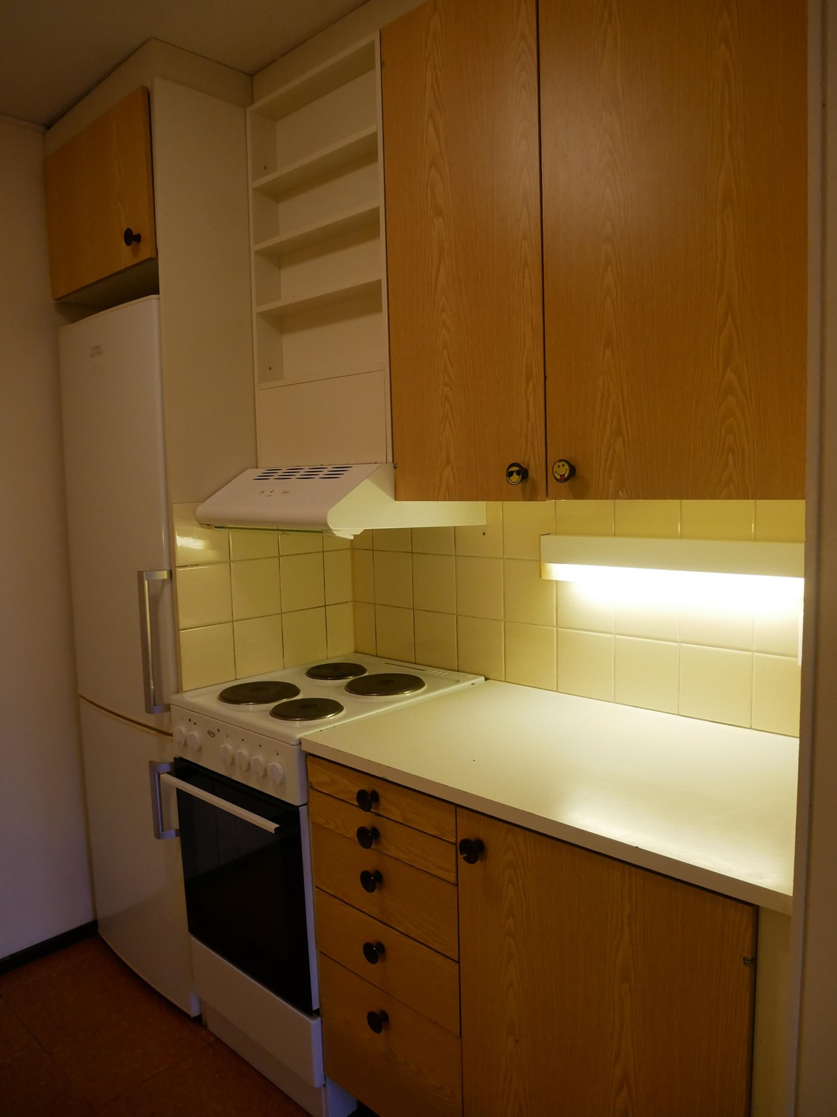 - Jääviileäkaappi, lattialiesi, liesituuletin, kaapistot, kiinteät valaisimet.
