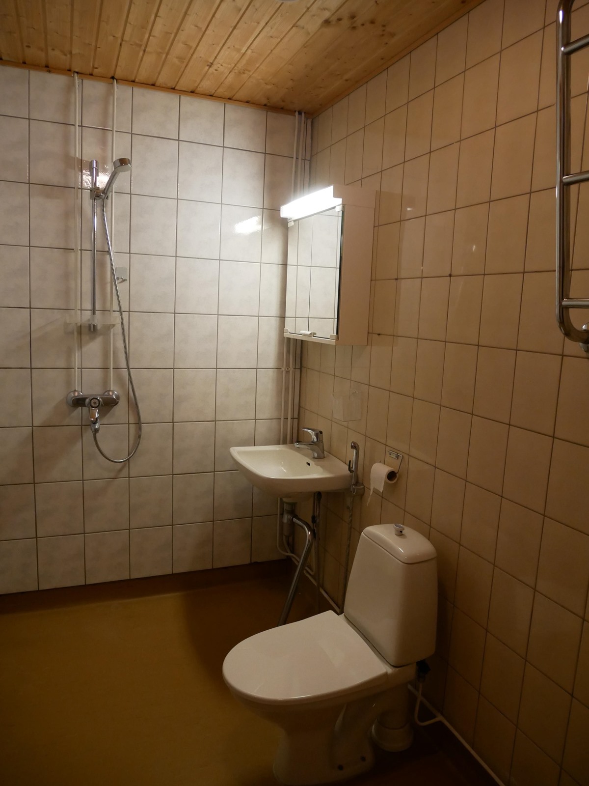 - Sauna, sähkökiuas, kylpyhuone, suihku, peilikaappi, pesukoneliitäntä, kiinteät valaisimet.