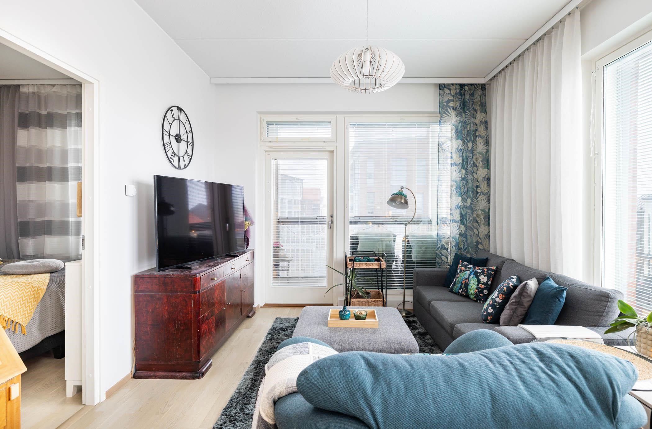 Vapautumassa saunallinen kolmannen kerroksen kaksio Pirkkalan Soljan alueella. Tässä ihanassa kodissa on hyväksi havaittu pohjaratkaisu ja asunto tuntuukin neliötään suuremmalta. Asunnossa on iso huoneiston levyinen lasitettu parveke joka tuo lisätilan tuntua. Säilytystilaa löytyy kivasti: kaapistoja sekä taloyhtiön lämmin häkkivarasto. Asunnossa on vesikiertoinen lattialämmitys.