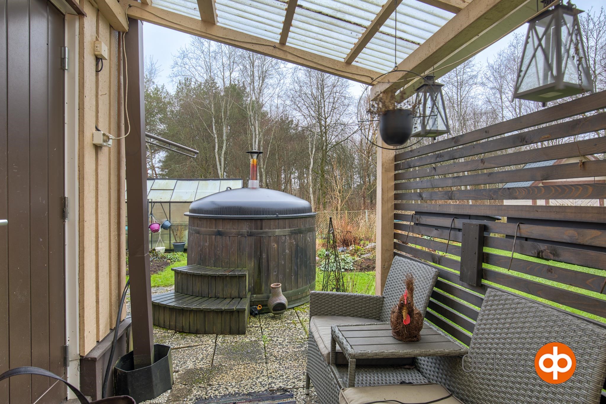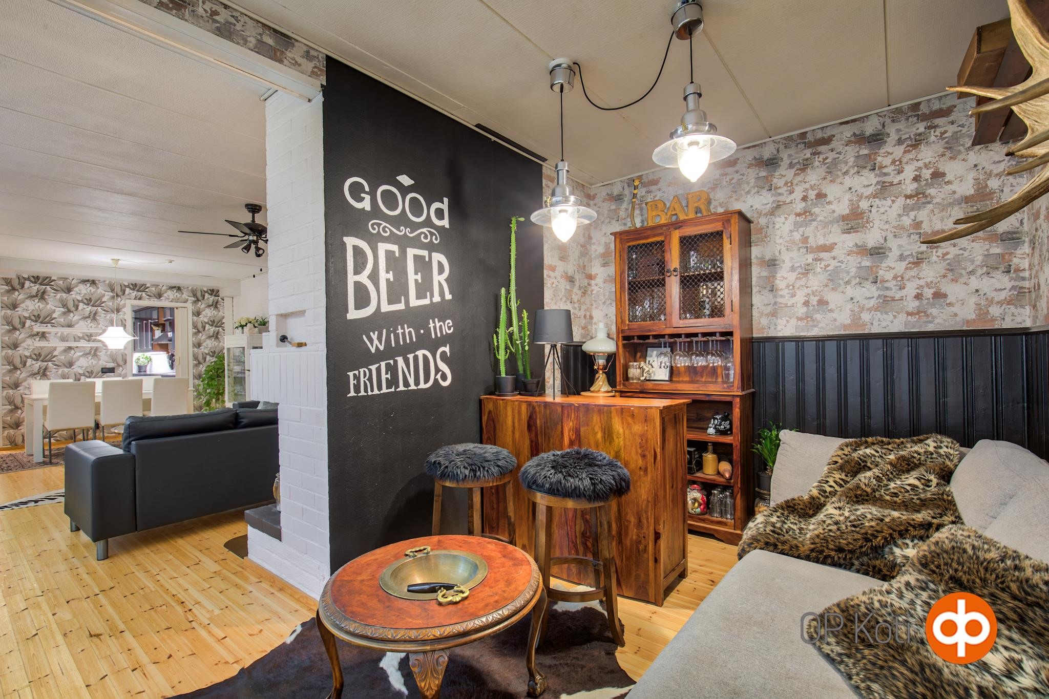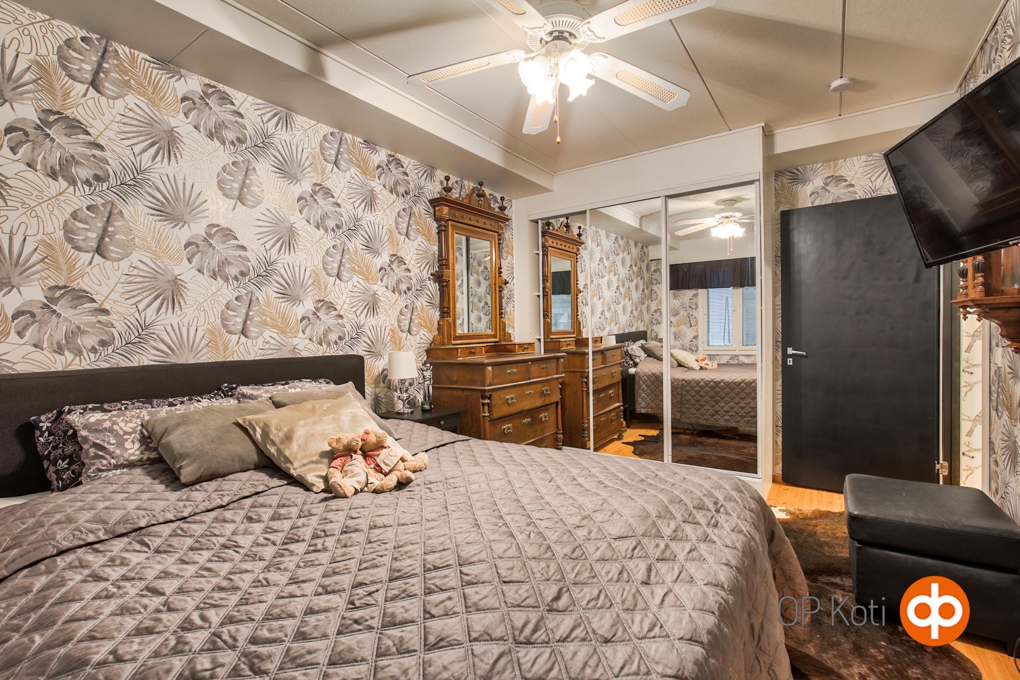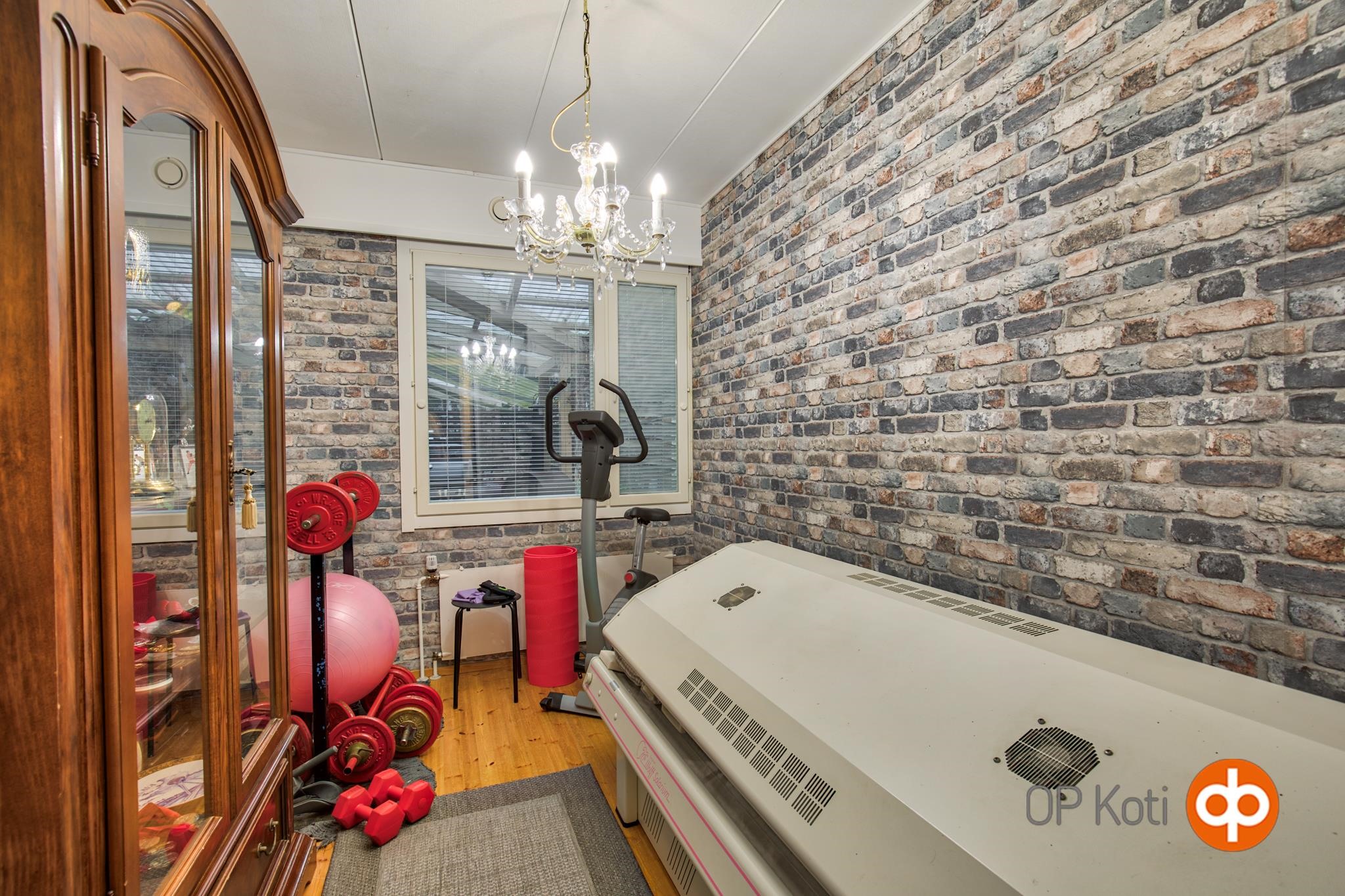 Huoneisto on remontoitu tyylikkään persoonallisesti vuosien saatossa ja siitä on todella pidetty huolta. Varsinaisia makuuhuoneita löytyy kolme ja olohuoneen yhteydestä löytyy yksi huone joka on muunneltavissa oman tarpeen mukaan. Keittiö on remontoitu tyylikkäästi kivitasoilla varustaen. Yksi valtti asunnossa on säilytystilat - tilava vaatehuone sekä kylmiö lisäävät arjen helppoutta. Asunnon perältä löytyy pesuhuone ja sauna, josta löytyy todellinen helmi nimittäin puukiuas. Löylyjen jälkeen pääsee kätevästi pukuhuoneen kautta suoraan takapihalle nauttimaan paljun lämmöstä. Takapiha on todella tilava ja sieltä löytyy paljun lisäksi kasvihuone ja kaksi markiisia kesähelteitä suojaamaan, jos puutarhanhoito kiinnostaa enemmänkin löytyy siihenkin tilaa!