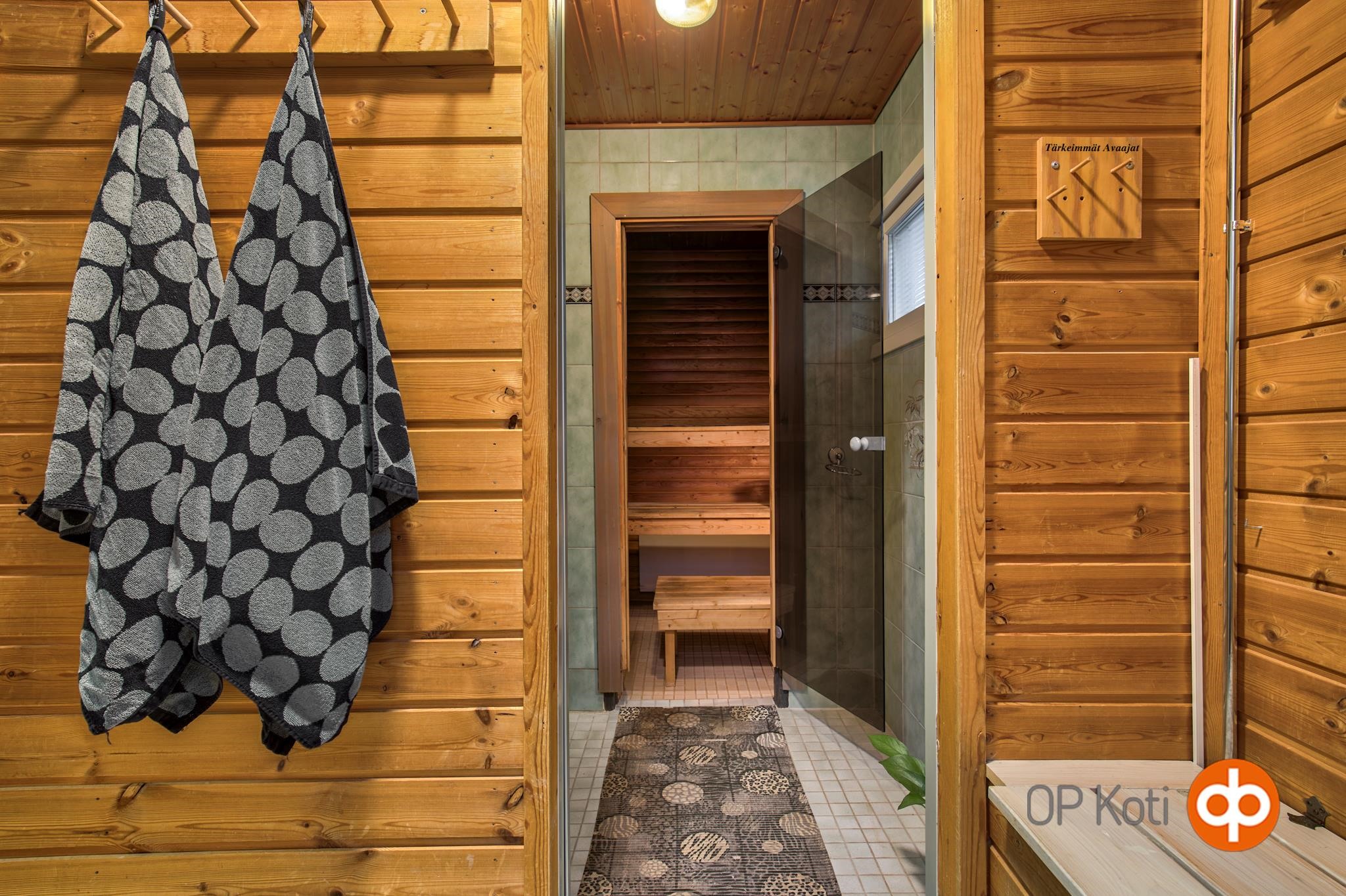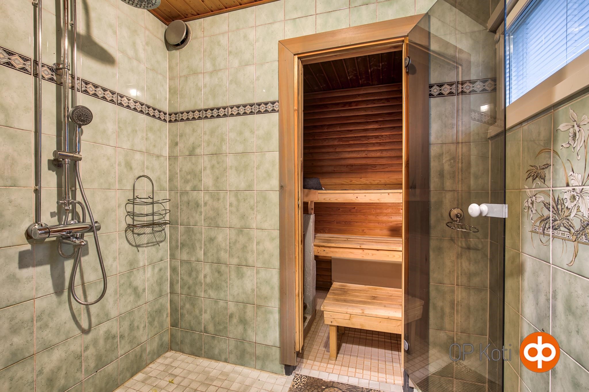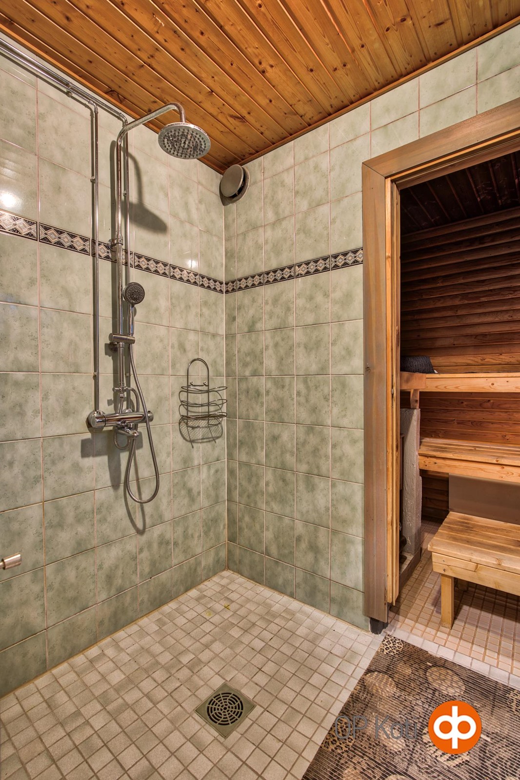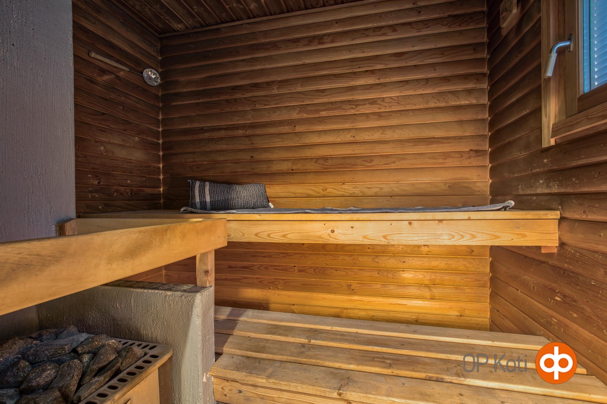 - Sauna, puukiuas lisäksi varaus sähkökiukaalle, kylpyhuone 2*, erillinen wc, suihku, kaapit, allaskaappi, pesukoneliitäntä varastossa, lattialämmitys, kiinteät valaisimet.