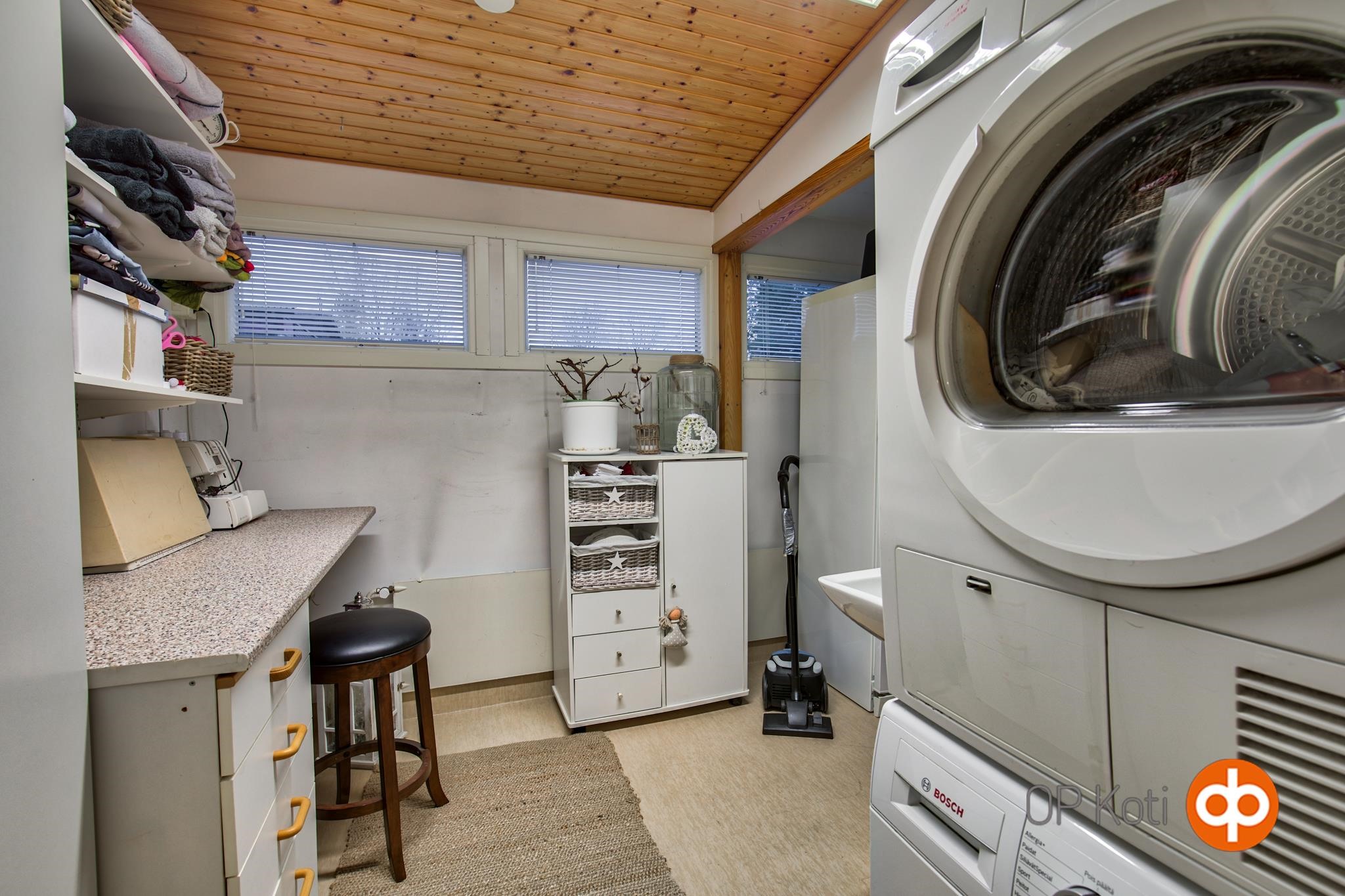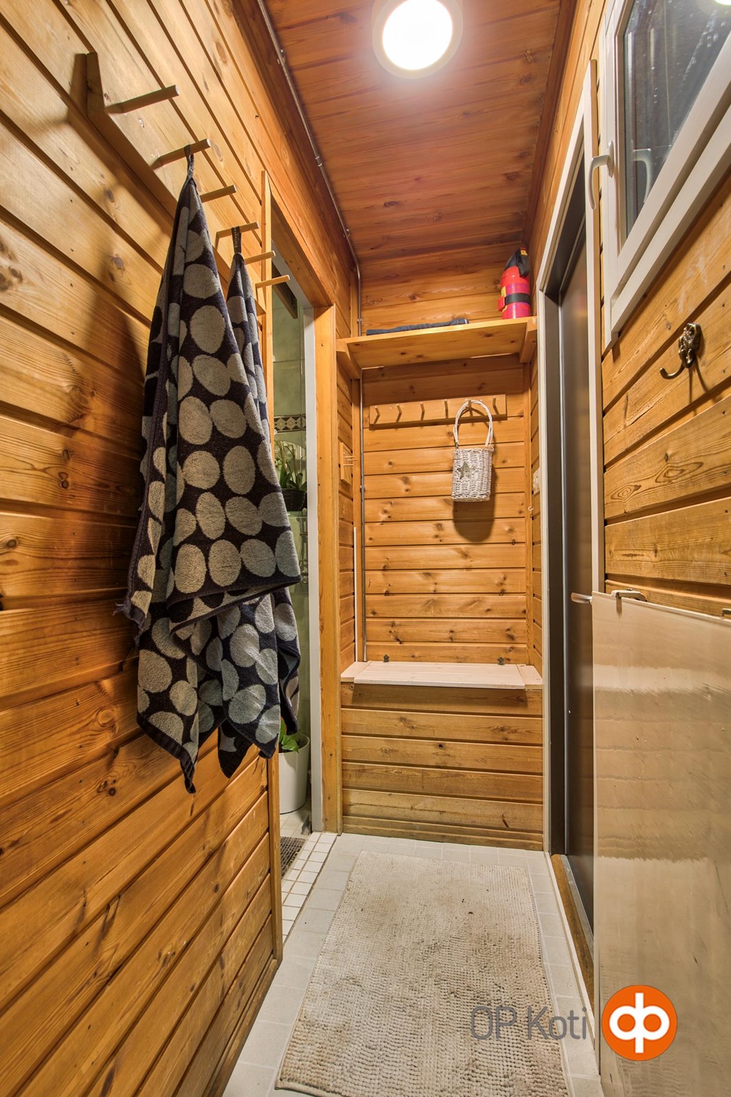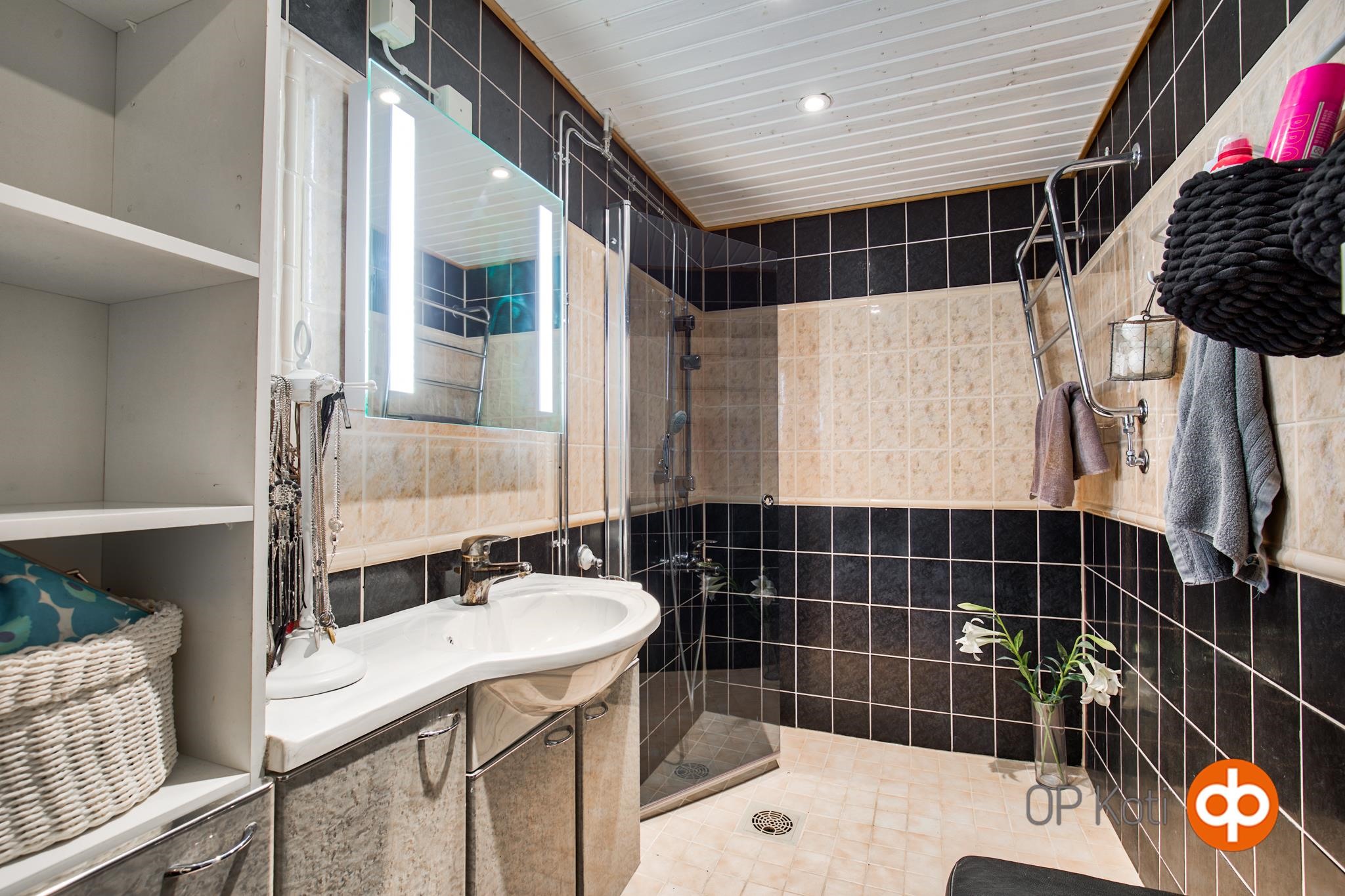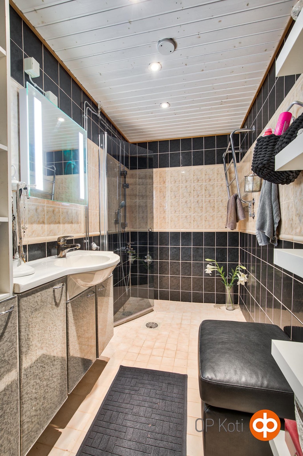 - Sauna, puukiuas lisäksi varaus sähkökiukaalle, kylpyhuone 2*, erillinen wc, suihku, kaapit, allaskaappi, pesukoneliitäntä varastossa, lattialämmitys, kiinteät valaisimet.