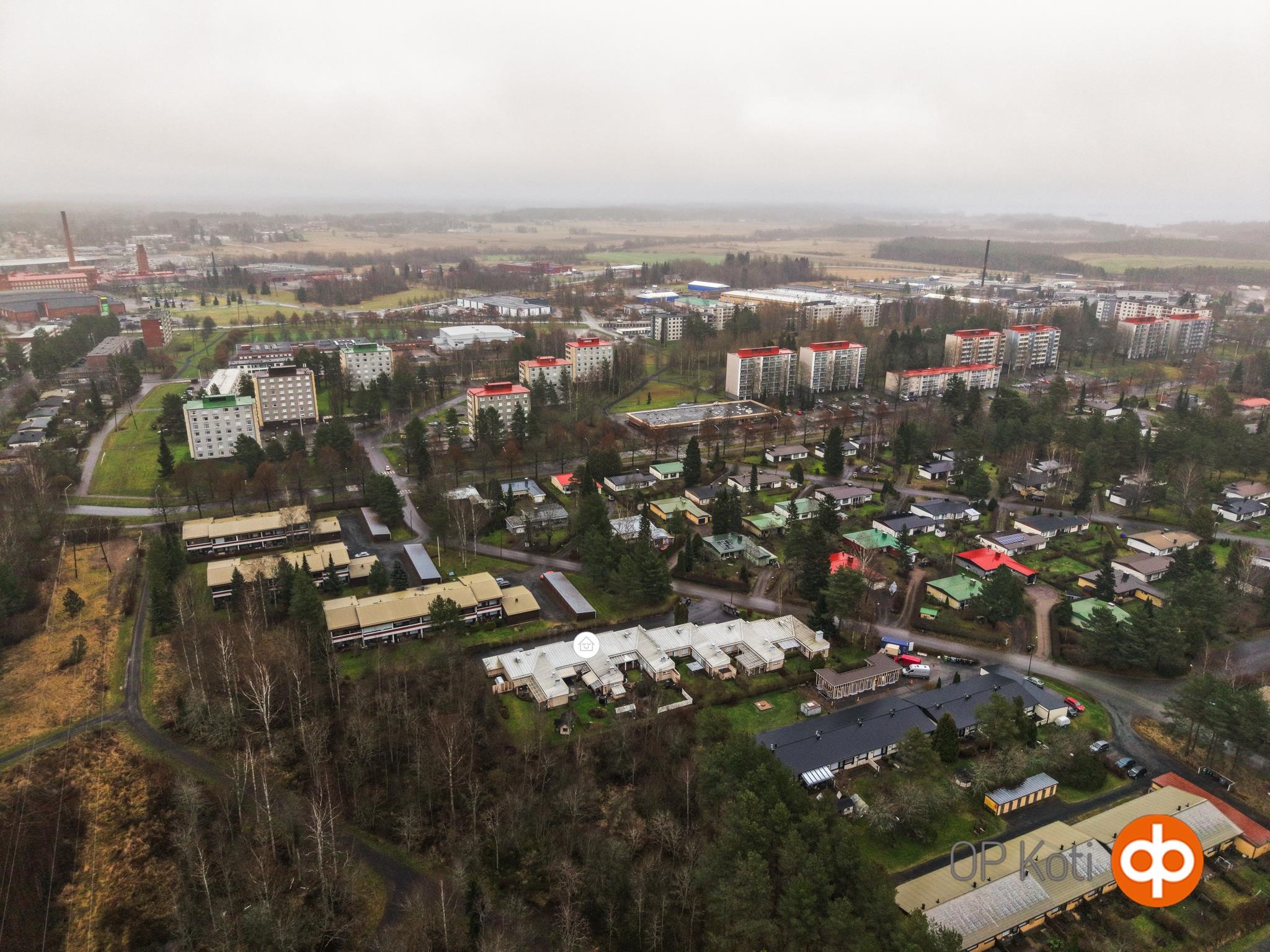 Sijainti on hyvä, asuinalue on rauhallinen, kauppakeskus on reilun kilometrin päässä ja Akvarellin kouluun/päiväkotiin pääsee turvallisesti kevyenliikenteen väyliä pitkin alle kilometrin matkalla.