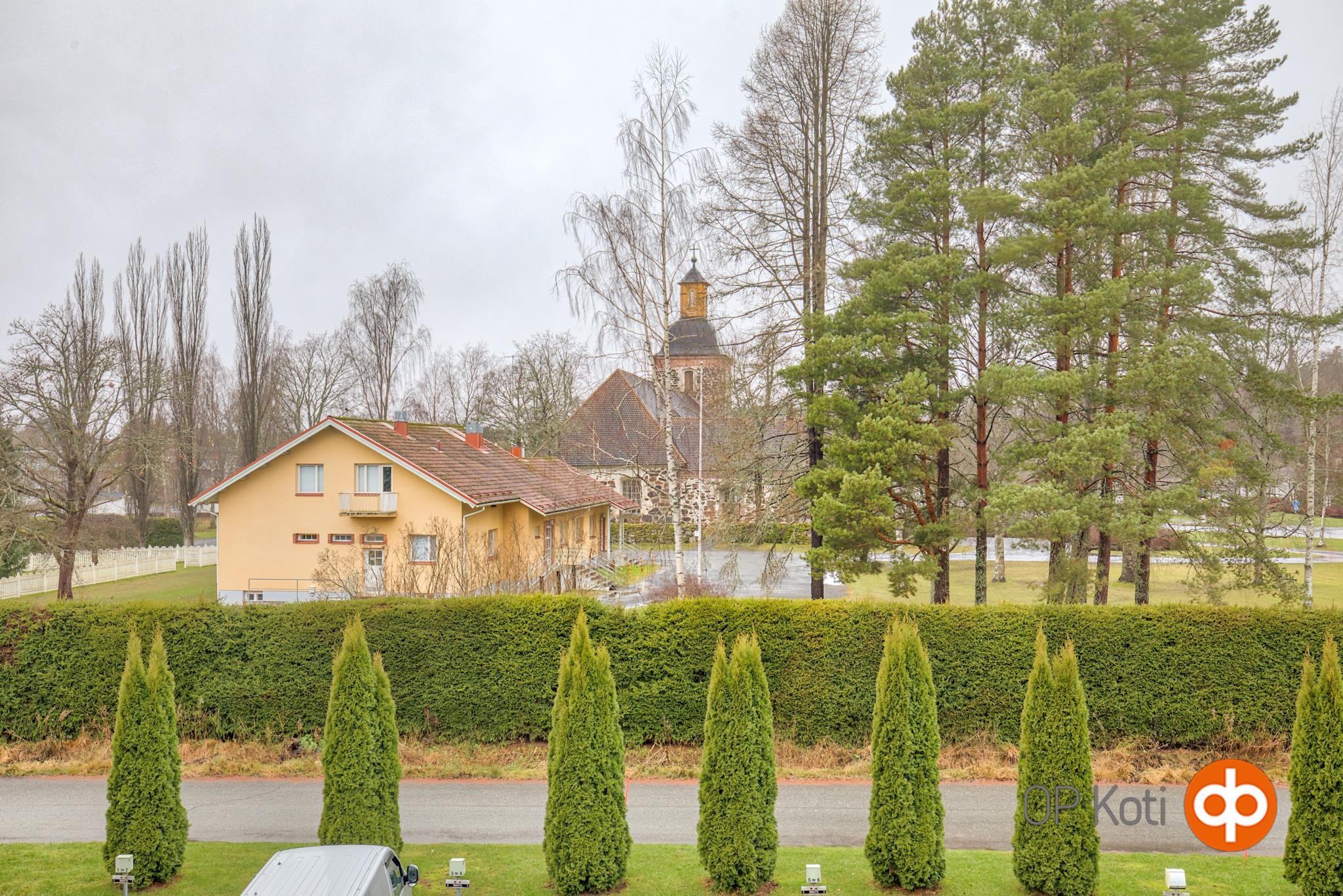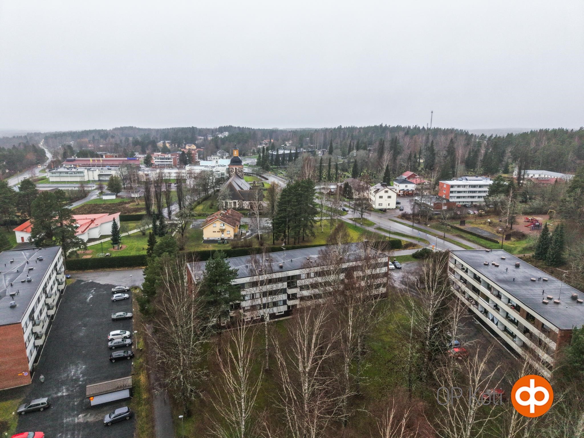 Hyvä sijainti keskustassa. Kaupat, apteekki, ravintolat, koulu, päiväkodit, liikuntakeskus ym. palvelut kävelyetäisyydellä. Parvekkeelta rauhalliset näkymä kirkon suuntaan.