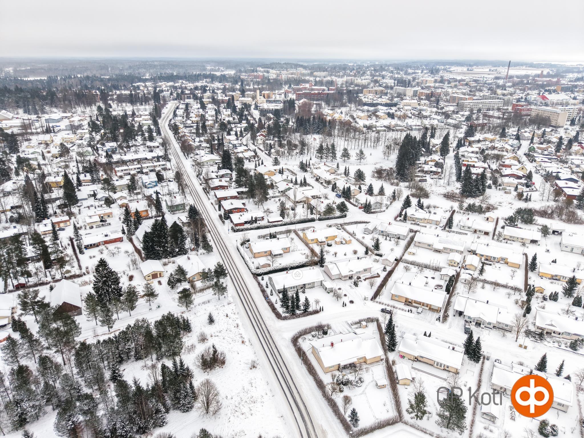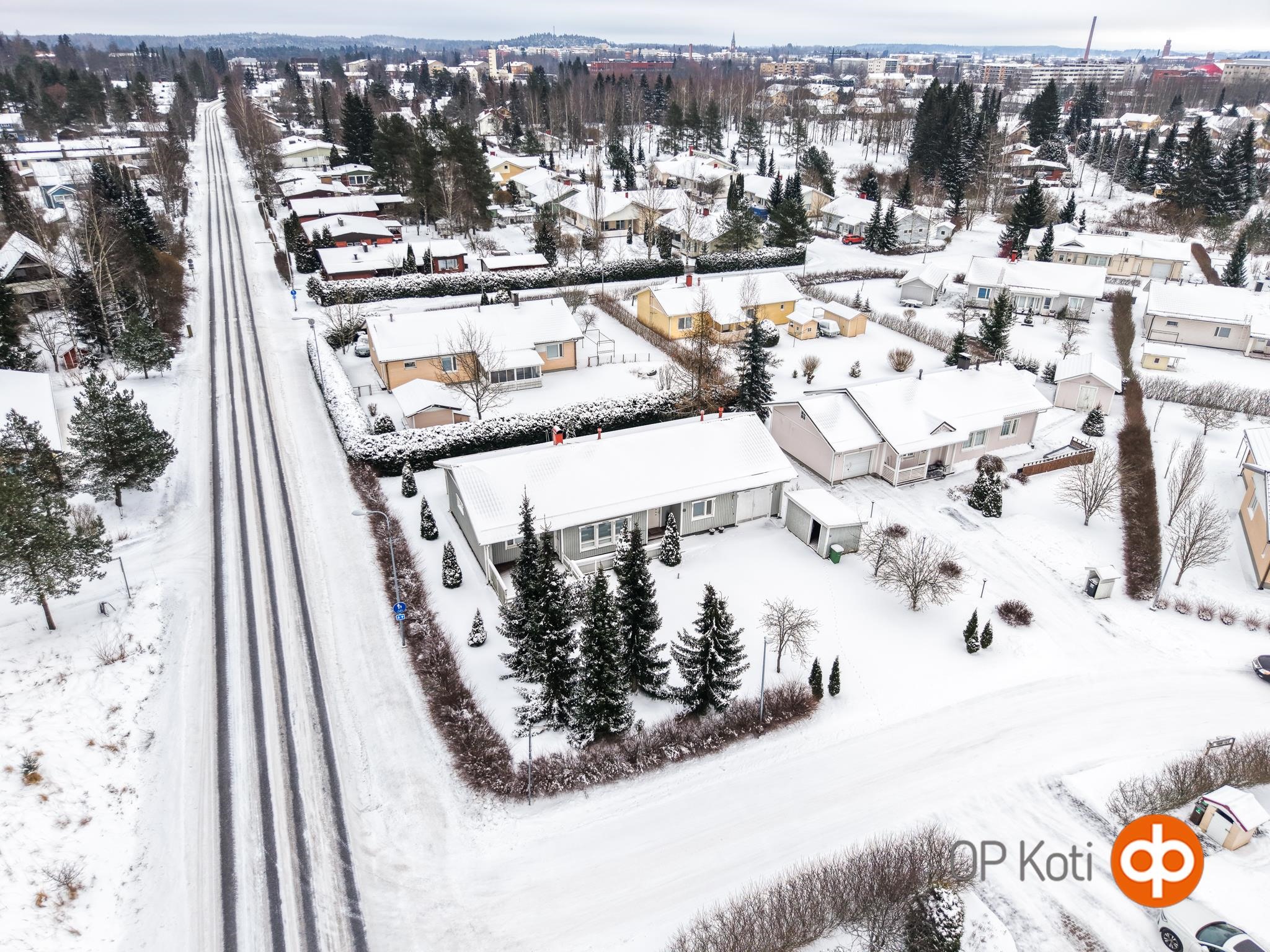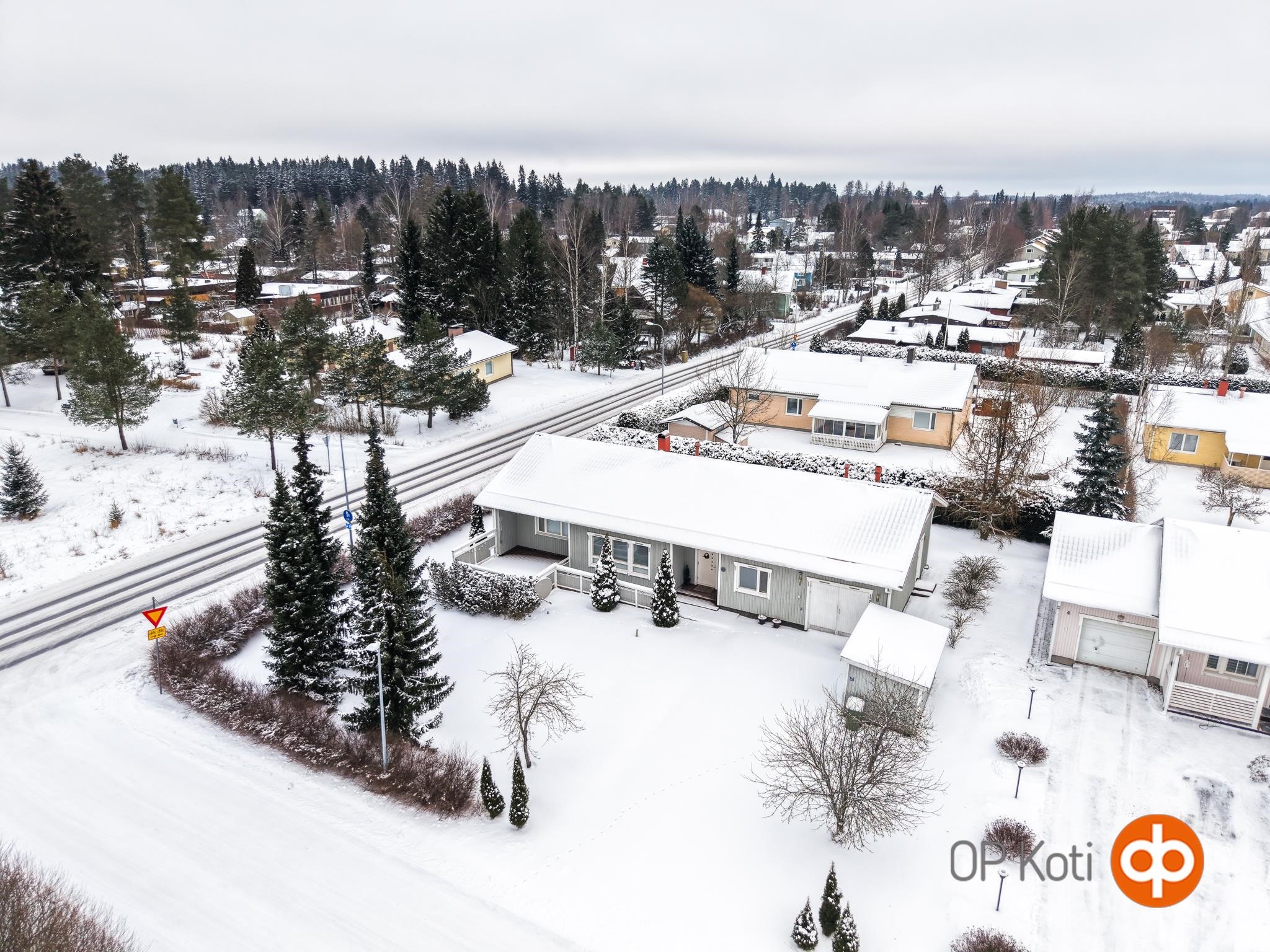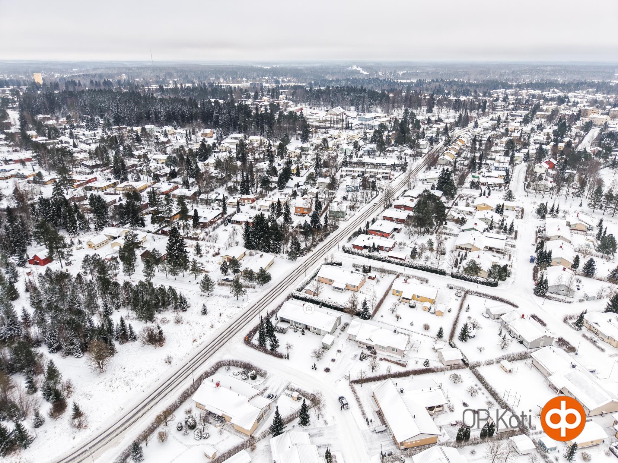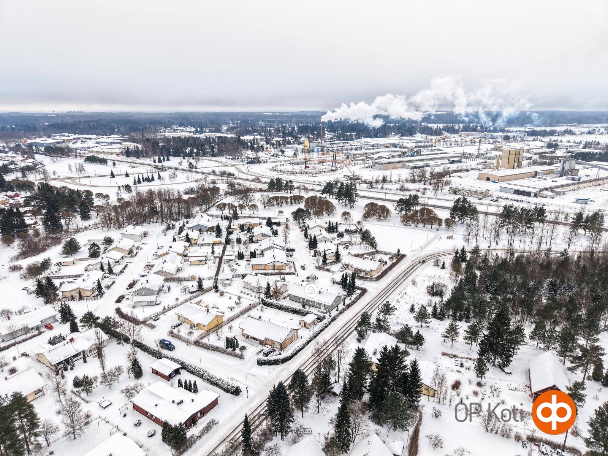 Sijainti on hyvä, koulu ja päiväkoti ovat mukavan matkan päässä ja keskustan palveluihinkaan ei ole kuin parisen kilometriä.