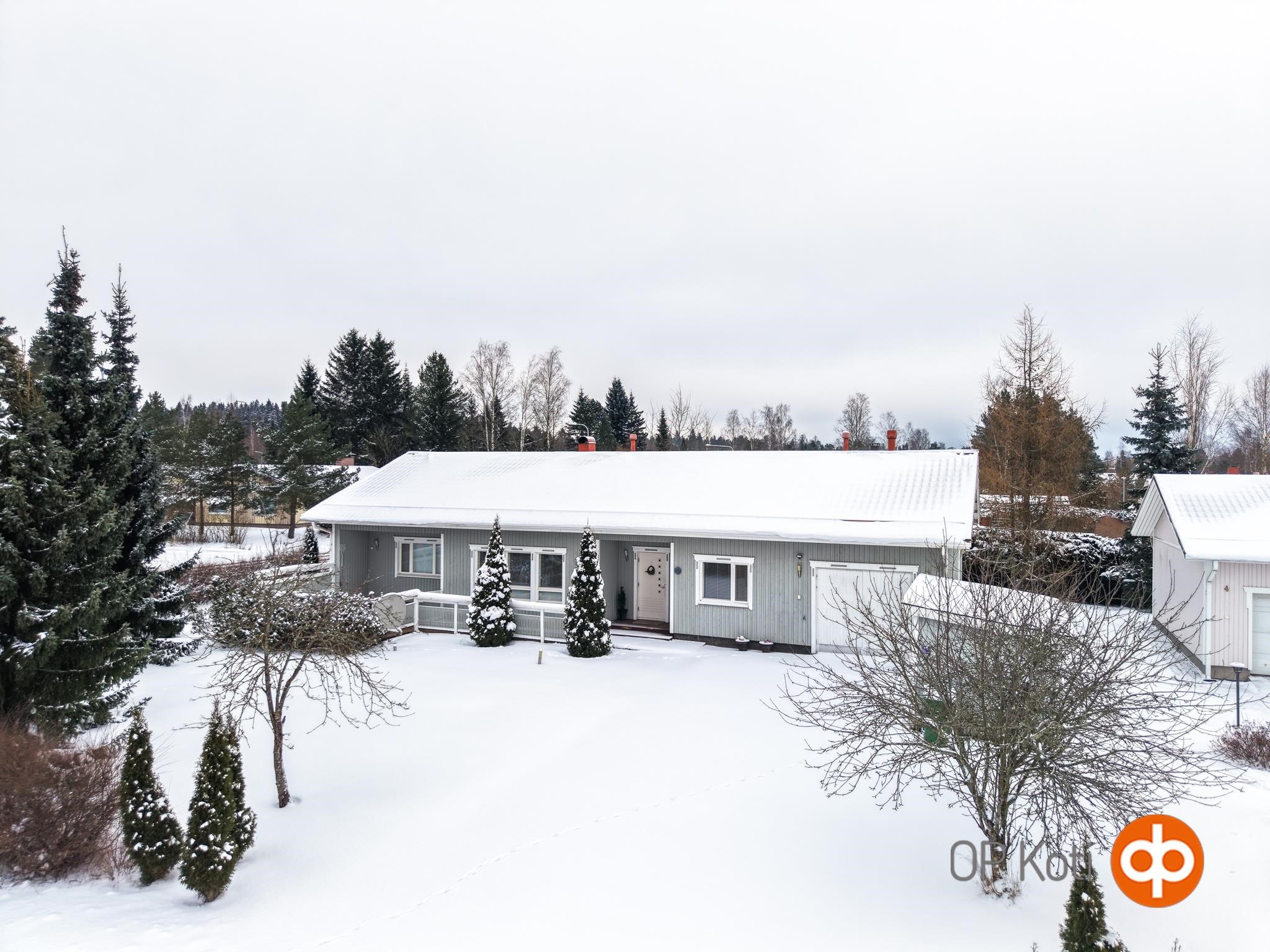 Sisään astutaan tilavaan eteiseen. Heti eteisestä avautuvat hyvin yhteen toimivat olohuone ja avokeittiö. Keittiökaapistoissa on paljon säilytytilaa ja ruokailuryhmä asettuu mukavasti samaan tilaan. Olohuoneessa vietetään yhteistä aikaa ja käperrytään sohvannurkkaan takkatulen lämpöön. Makuuhuoneita kodissa on neljä ja niistä yksi sijaitsee talon toisessa päässä omassa rauhassa.