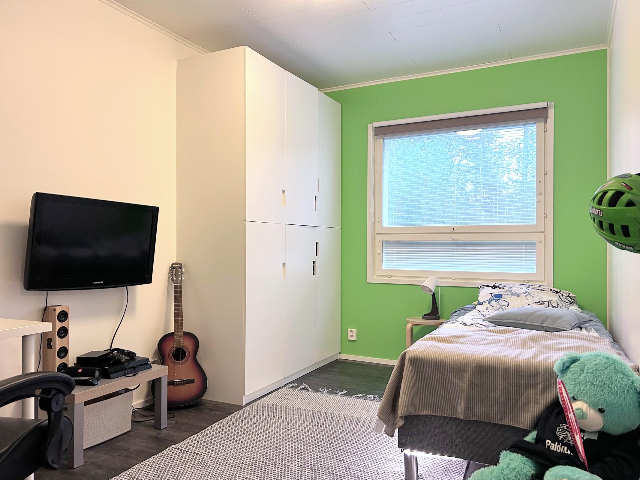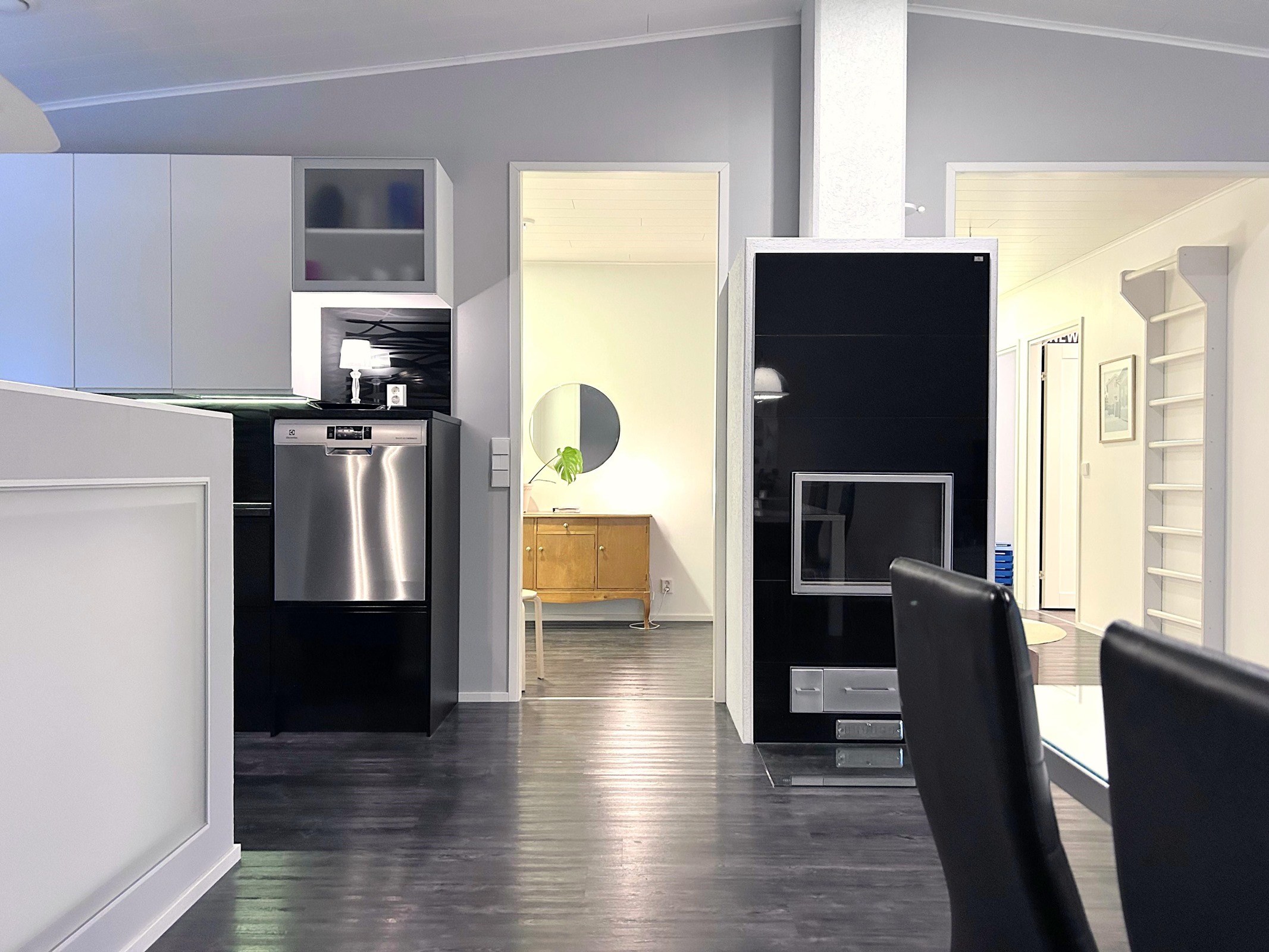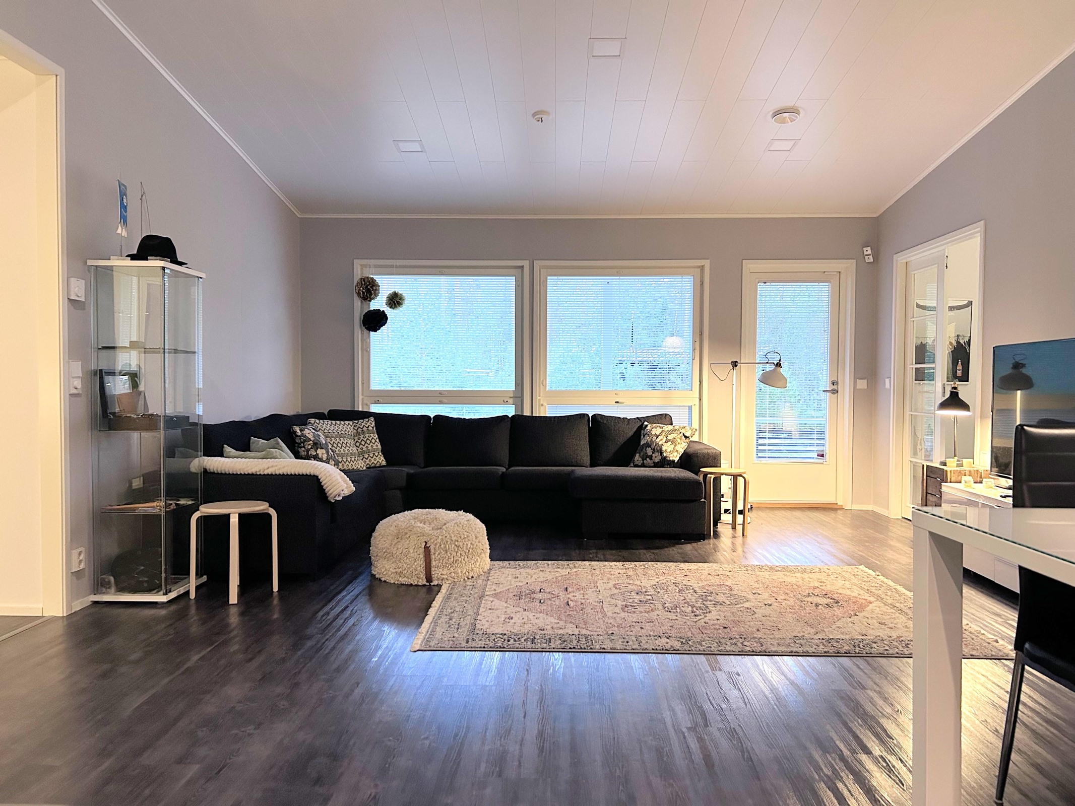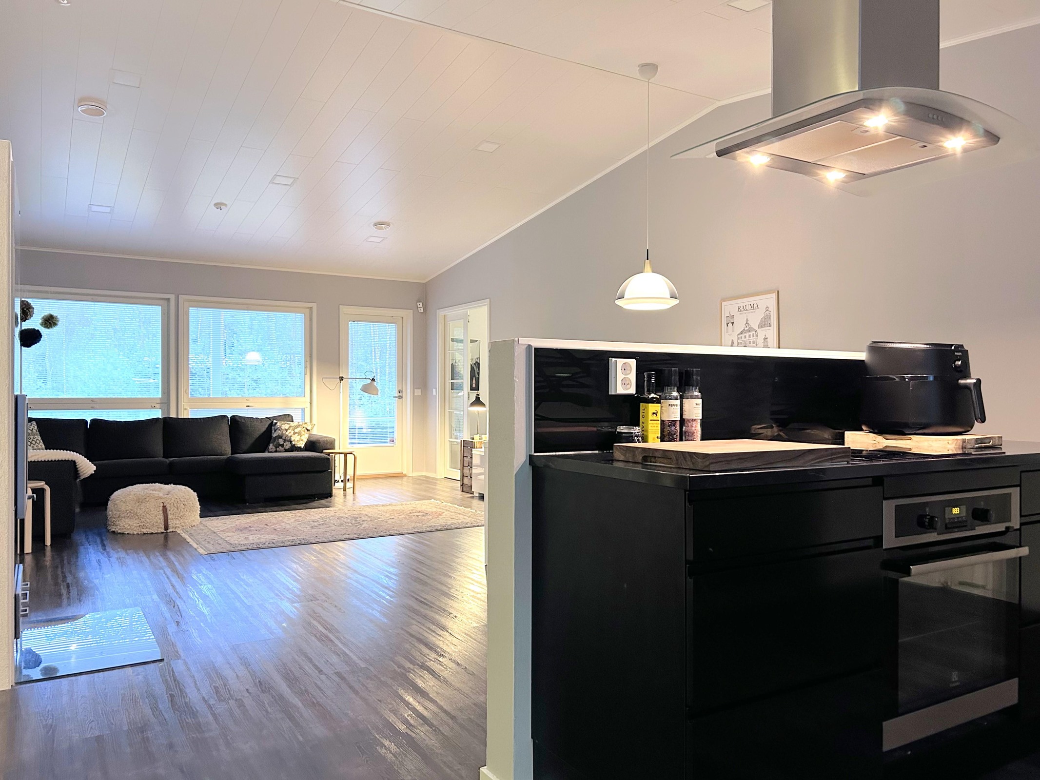 Kodissa on suuri ja valoisa olokeittiö, ja tila toimiikin kodin sydämenä. Tunnelmallinen takka luo lämpöä ja kutsuu kokoontumaan yhteisiin hetkiin. Viiden makuuhuoneensa ansiosta koti majoittaa isonkin perheen tai tarjoaa toimivat tilat etätyöskentelyyn.