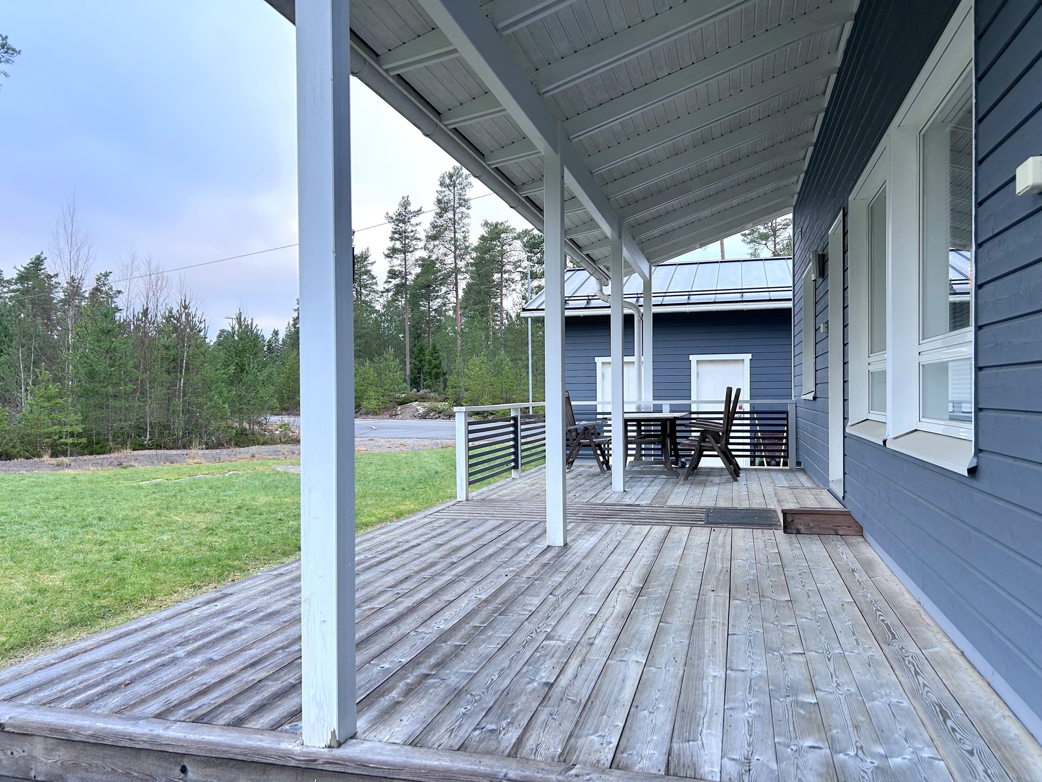 Etelän puolella sijaitseva osittain katettu terassialue kutsuu nauttimaan ulkoilmasta, ja vehreä nurmipiha tarjoaa tilaa lasten leikeille tai puutarhaharrastuksille. Piharakennuksessa sijaitsee kahden auton lämmin talli sekä runsaasti lämmintä varastotilaa.
