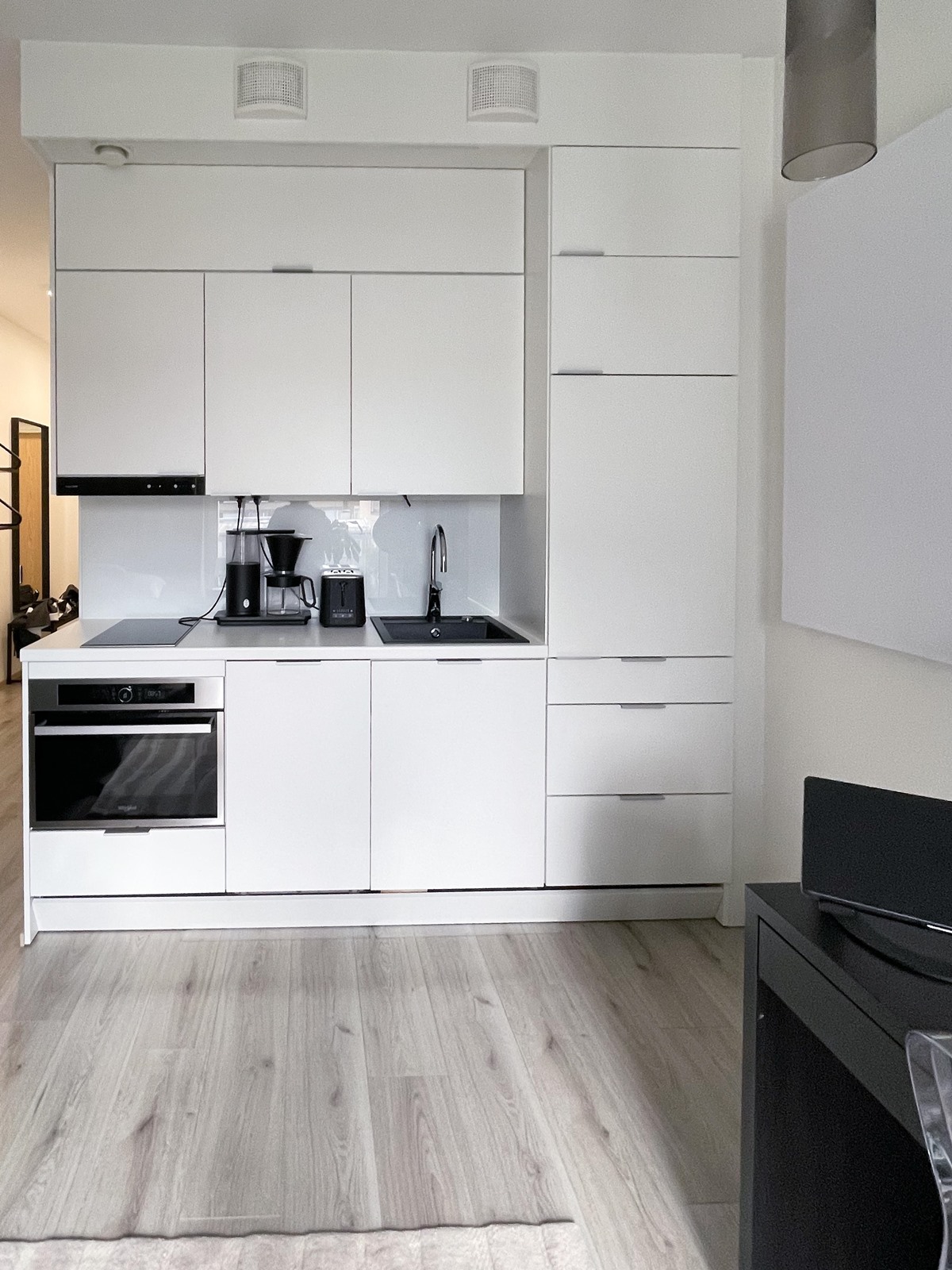 - Jenkkikaappi, erillisuuni, induktioliesi, liesituuletin, astianpesukone, kaapistot, irralliset kaapistot, kiinteät valaisimet.
