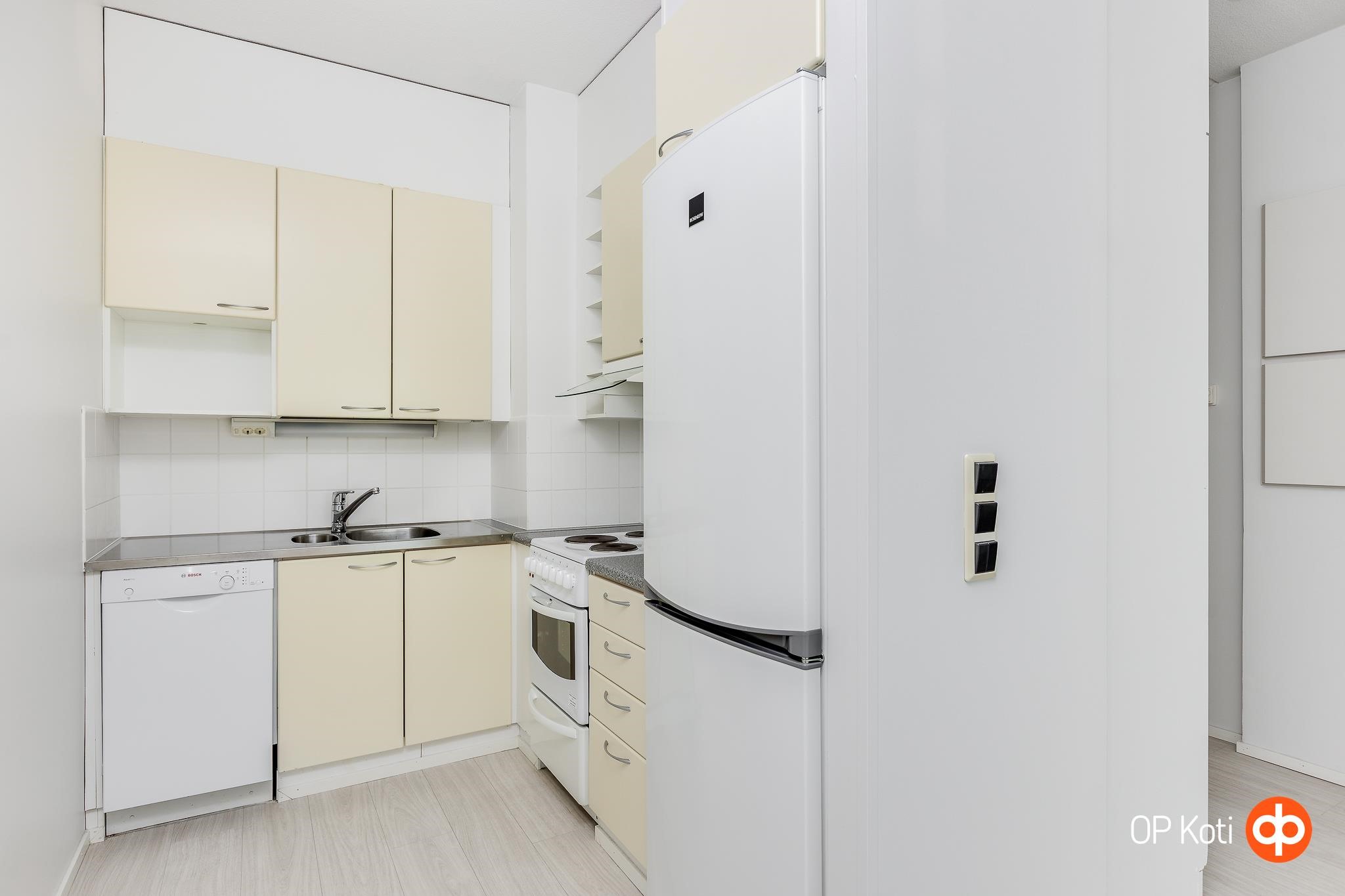- Jääkaappipakastin, sähköliesi, liesikupu, astianpesukone, kiinteät valaisimet.