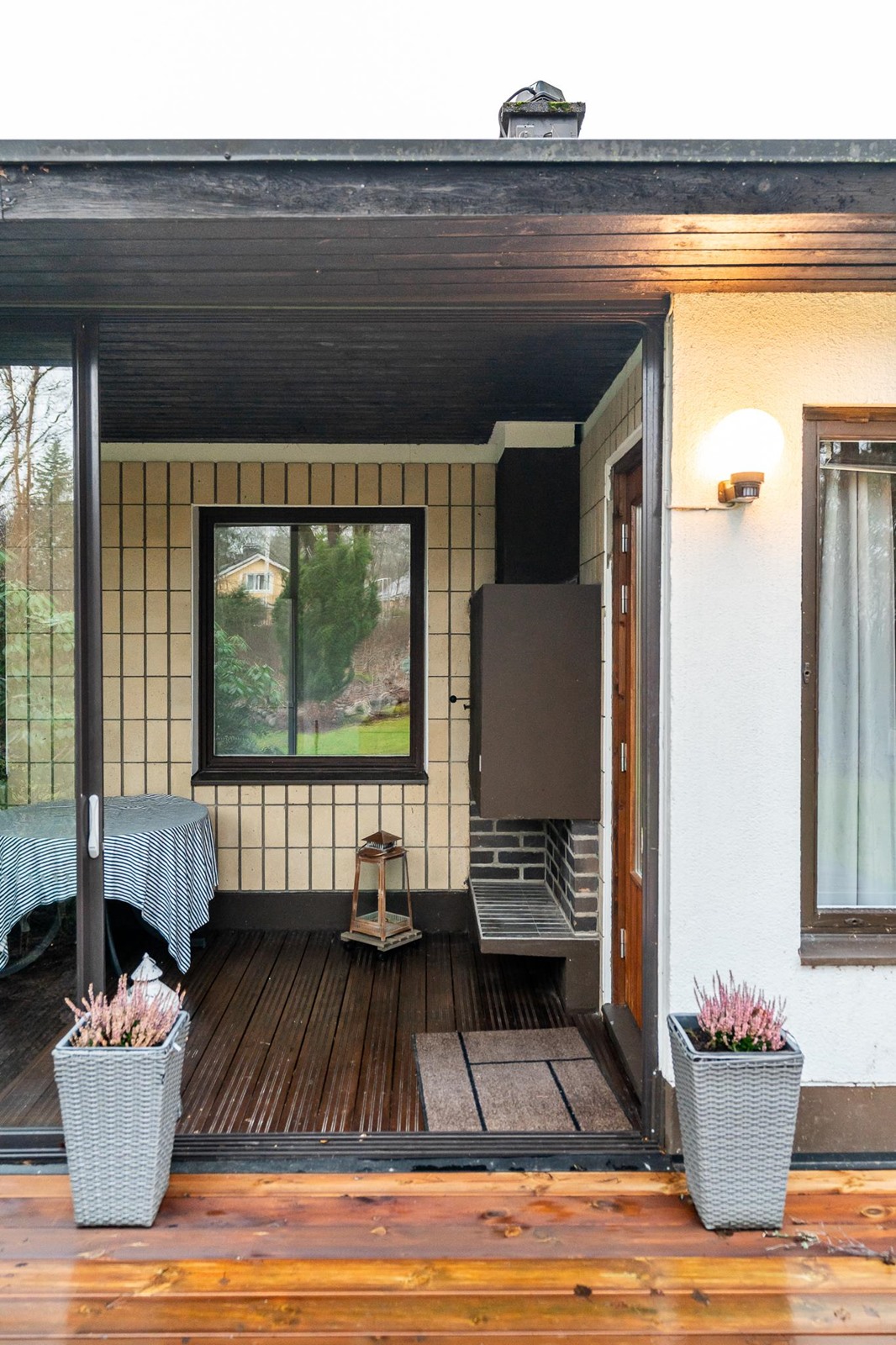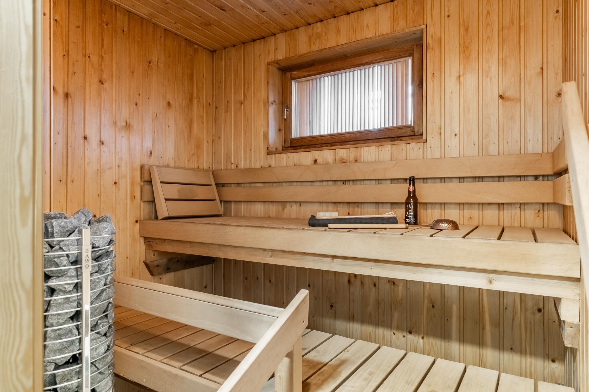Rentoutumisen kruunaa oma sauna, jossa uusi pilari-kiuas takaa makoisat löylyt. Olohuoneesta avautuu kulku lasitetulle terassille, joka toimii lisätilana aikaisesta keväästä pitkälle syksyyn. Terassin avotakka ja suojaisa piha luovat täydellisen paikan viihtymiseen ja rauhoittumiseen.
