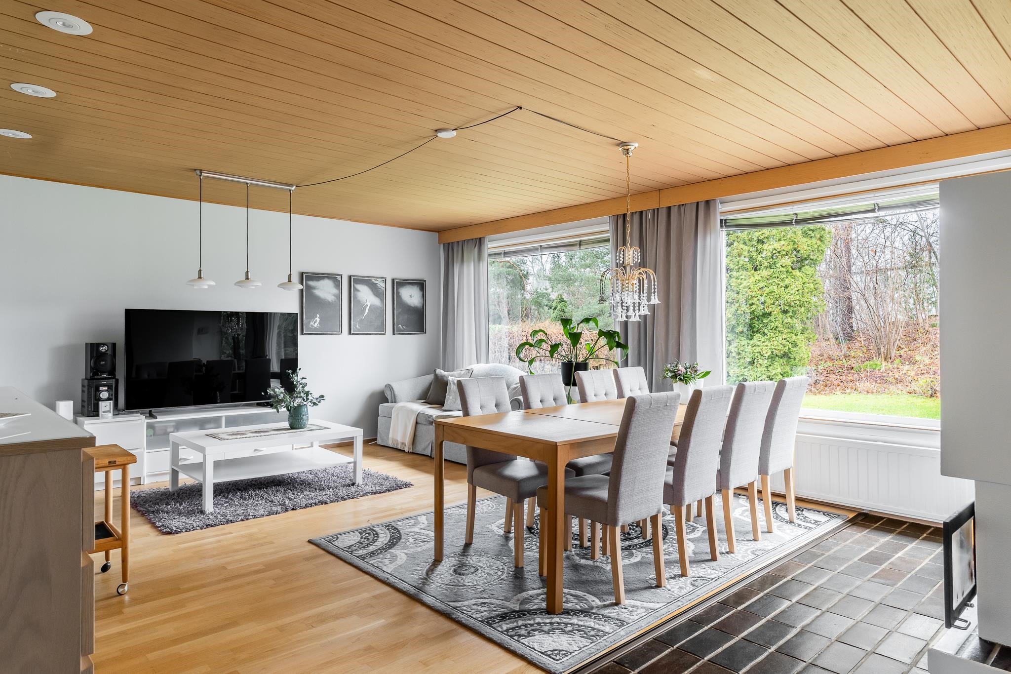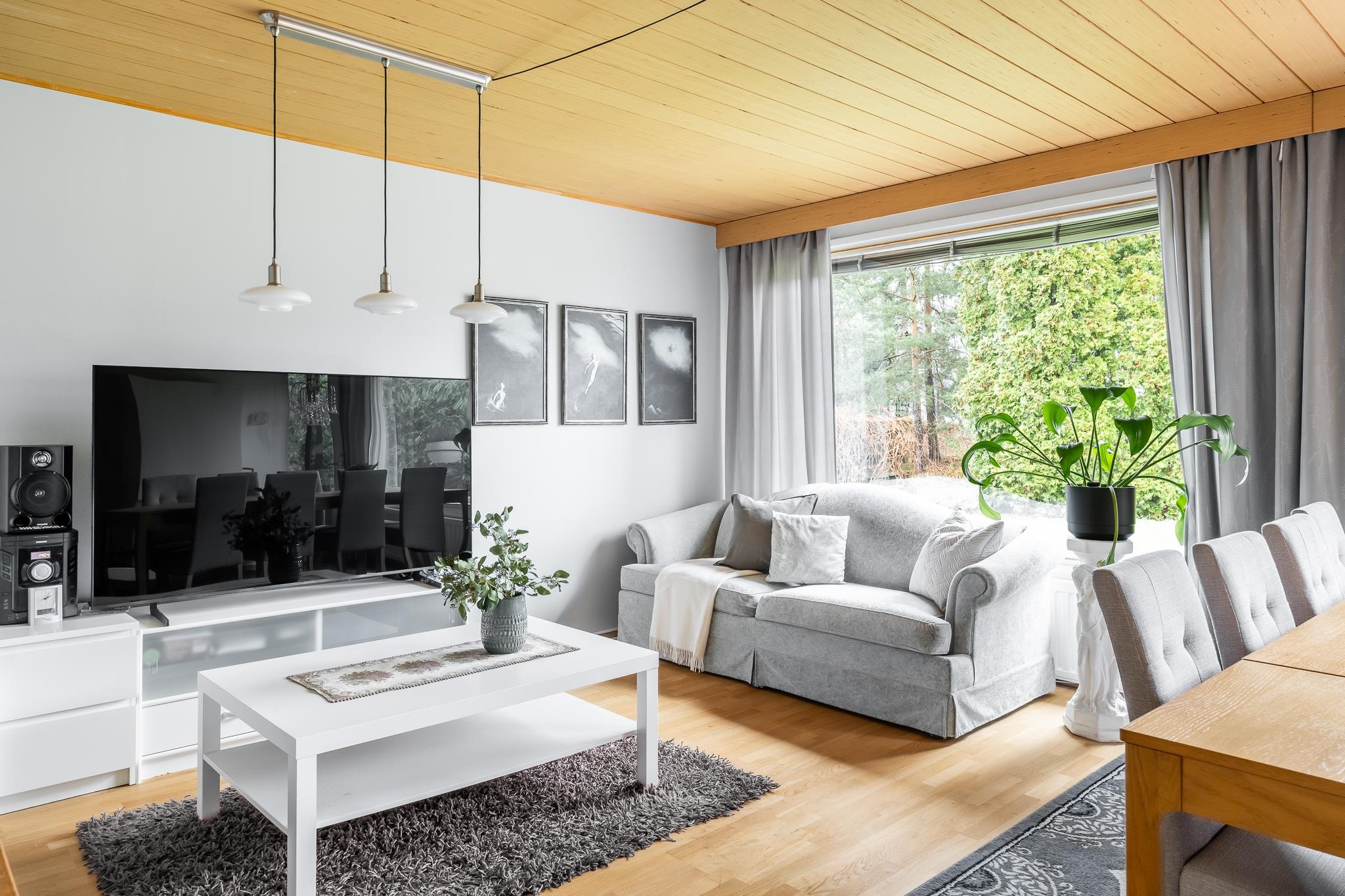 Kotiin astuessa avautuu valoisa ja avara olohuone, jonka sydämenä on tunnelmallinen takka. Keittiö ja olohuone muodostavat yhtenäisen tilan, joka kutsuu yhdessäoloon ja tekee arjesta toimivaa. Kodissa on neljä makuuhuonetta, jotka tarjoavat joustavasti tilaa perheen tarpeisiin - olipa kyse makuuhuoneista, etätyötiloista tai harrastuksista.
