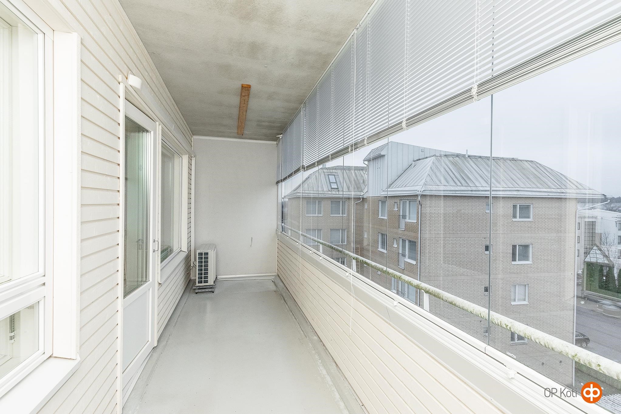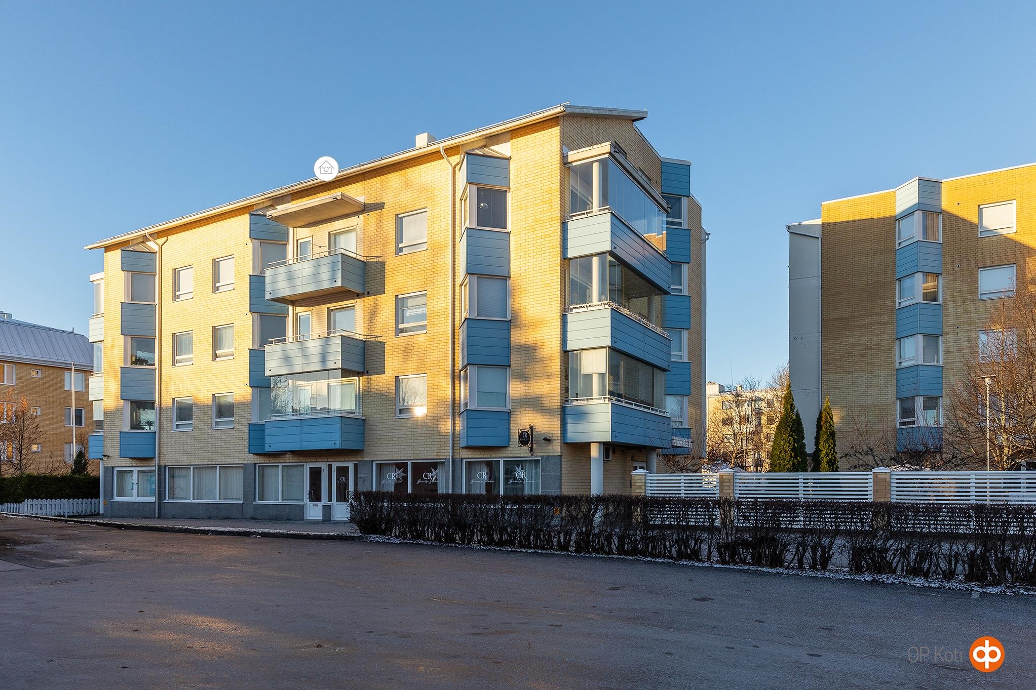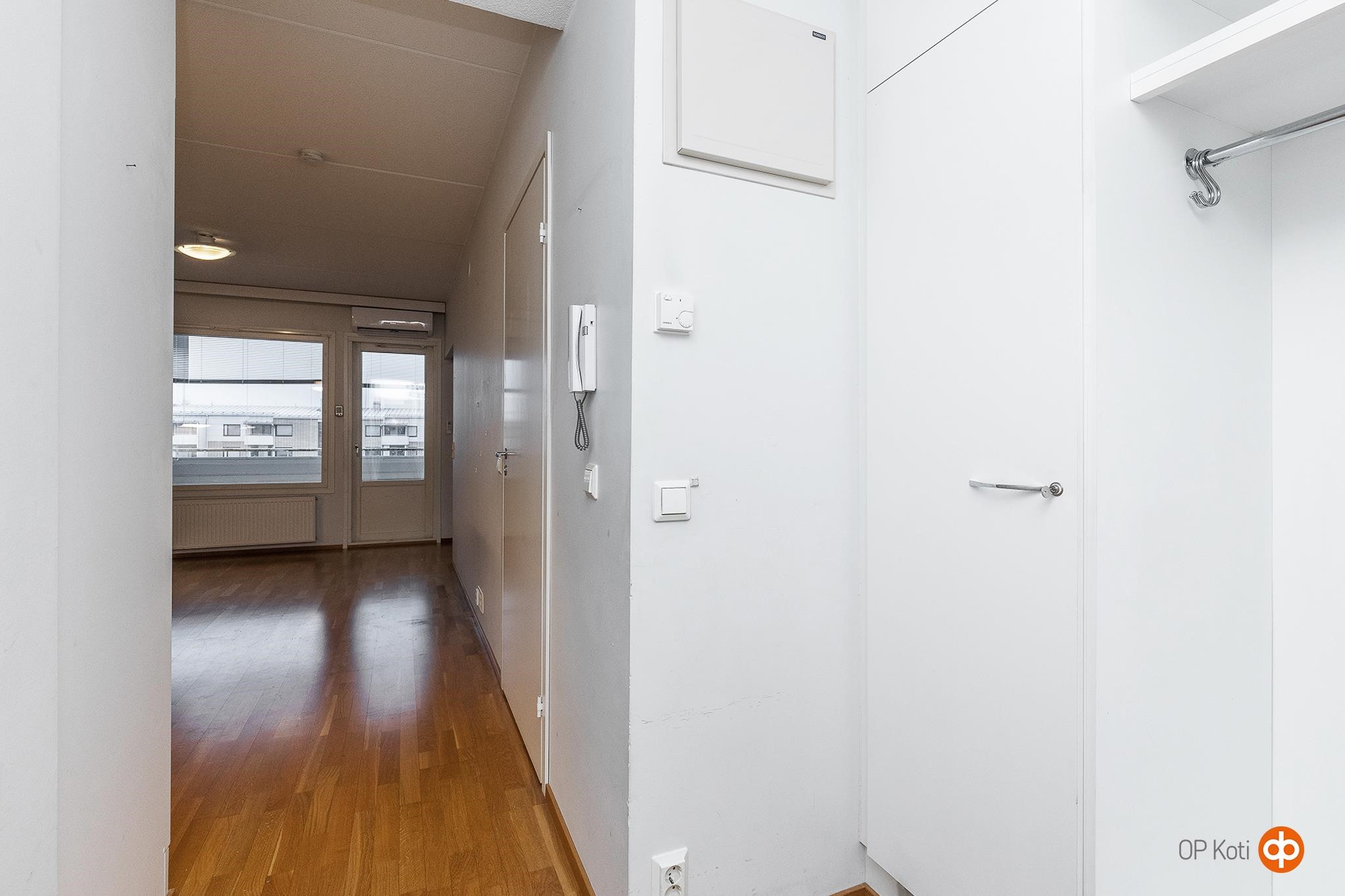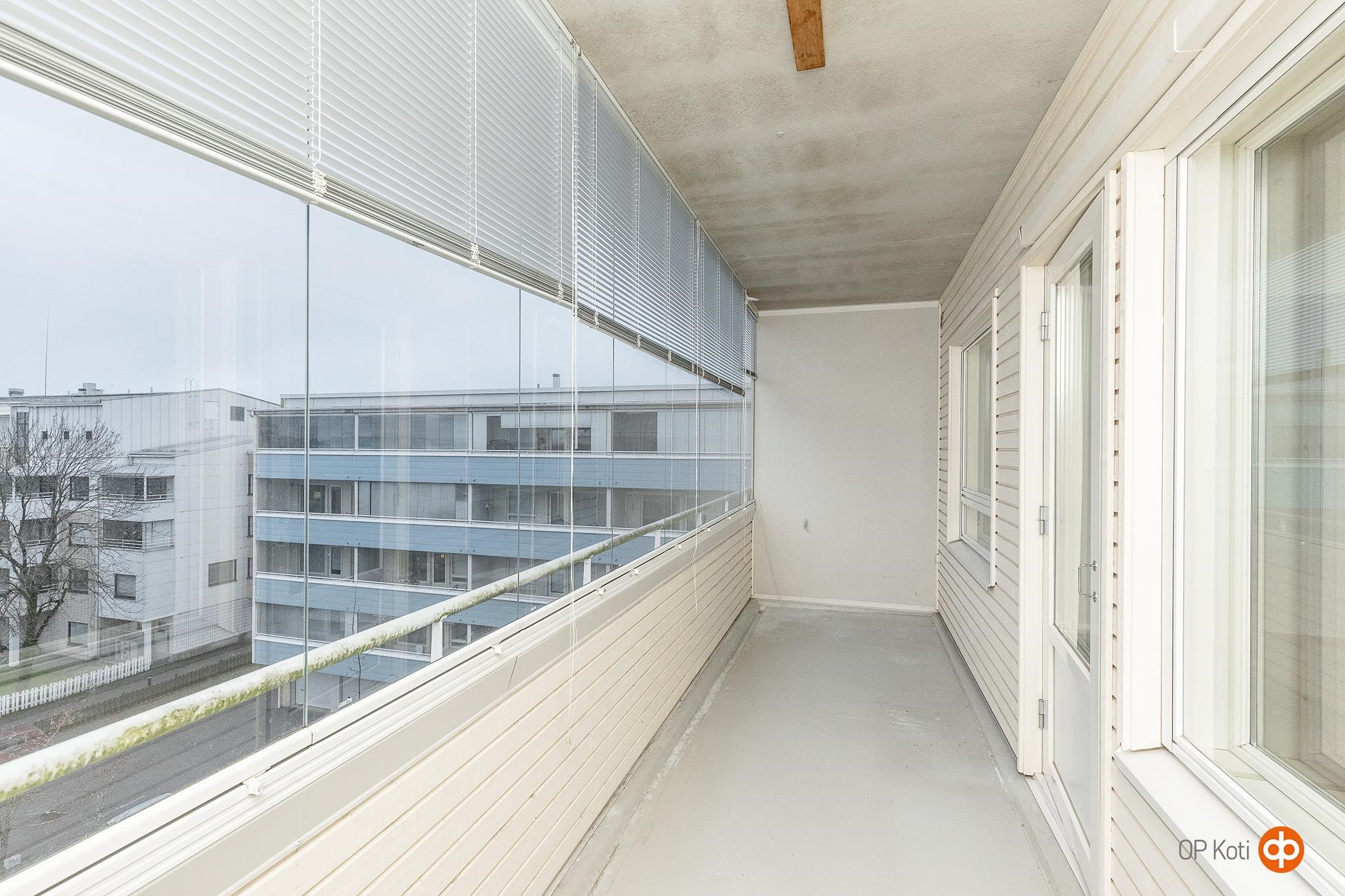 Siistikuntoinen saunallinen kaksio loistavalla sijainnilla hissitalon ylimmässä kerroksessa. Yhtiön yhteiset varastotilat samassa kerroksessa kuin kaupan kohteena oleva asunto. Huoneiston levyinen parveke talon sisäpihan suuntaan, joka riittävän kaukana vilkkaasti liikennöidystä Turuntiestä. Parvekeella hyvin tilaa kesäkukille, viherhyllyille ja parvekekalusteille.