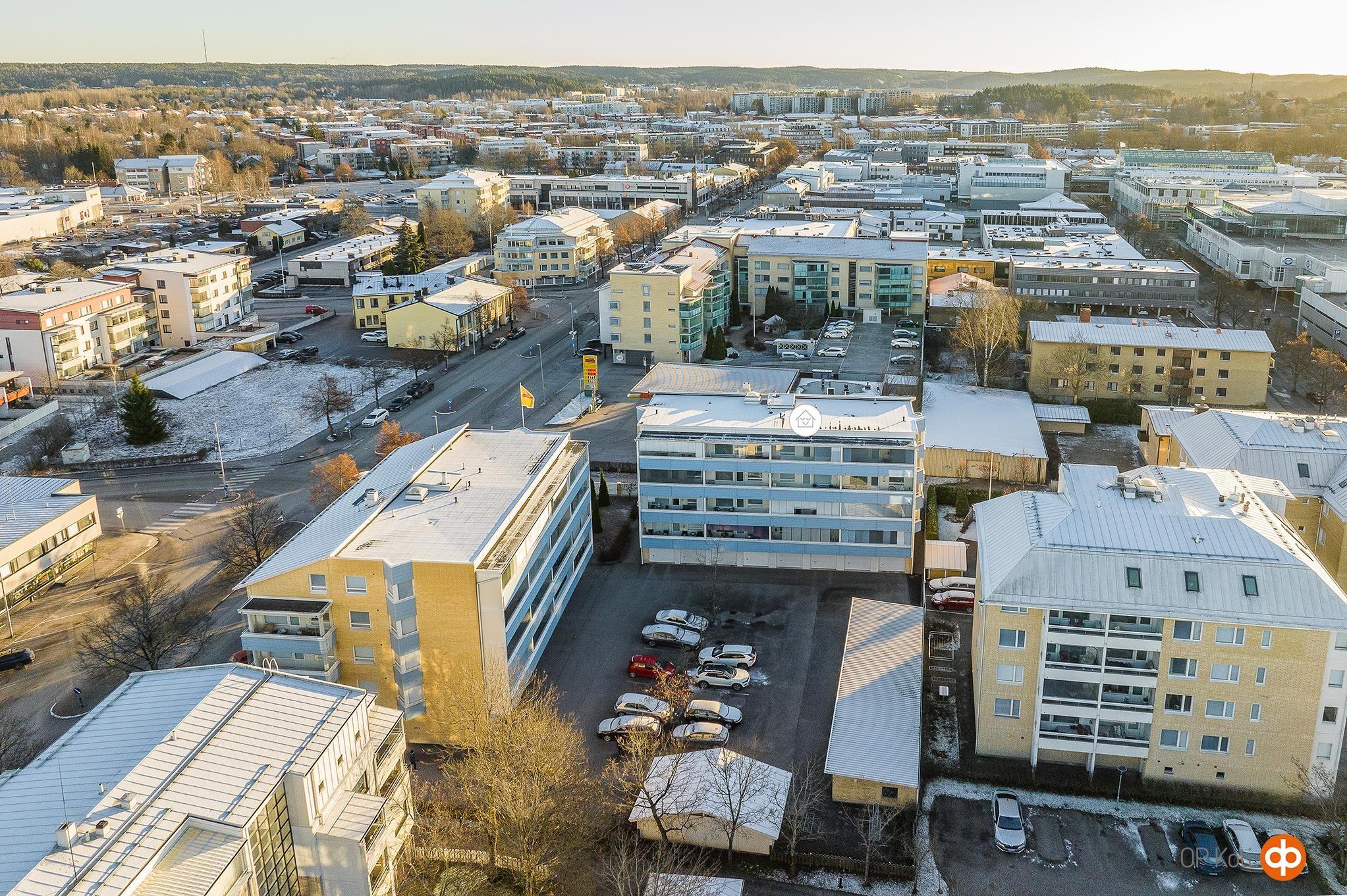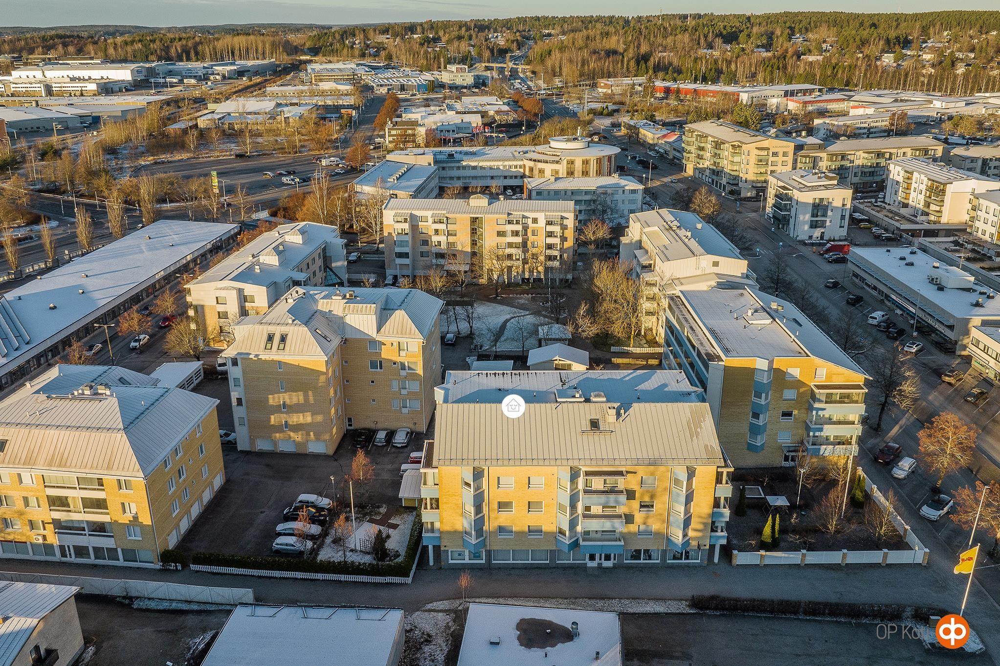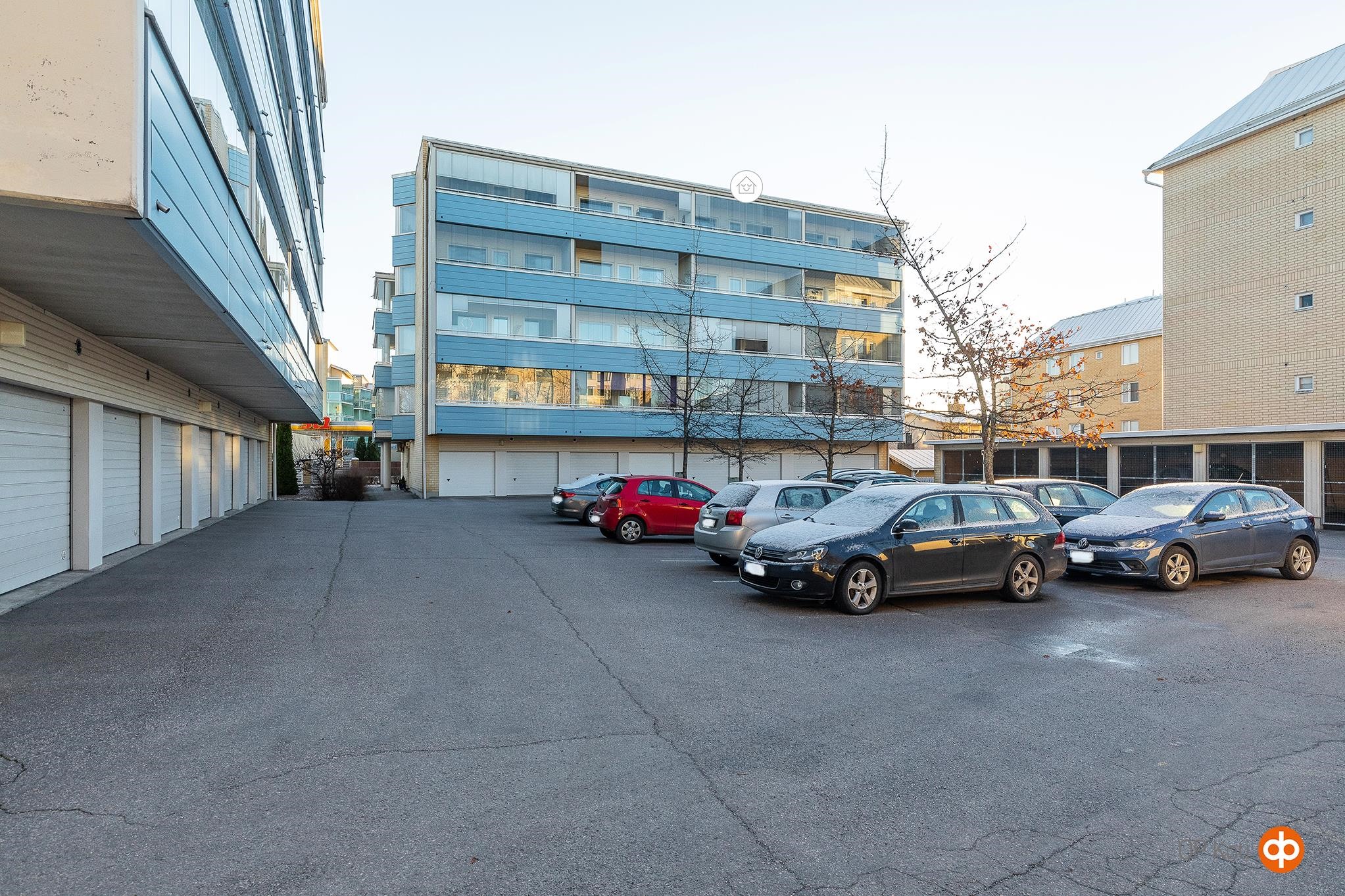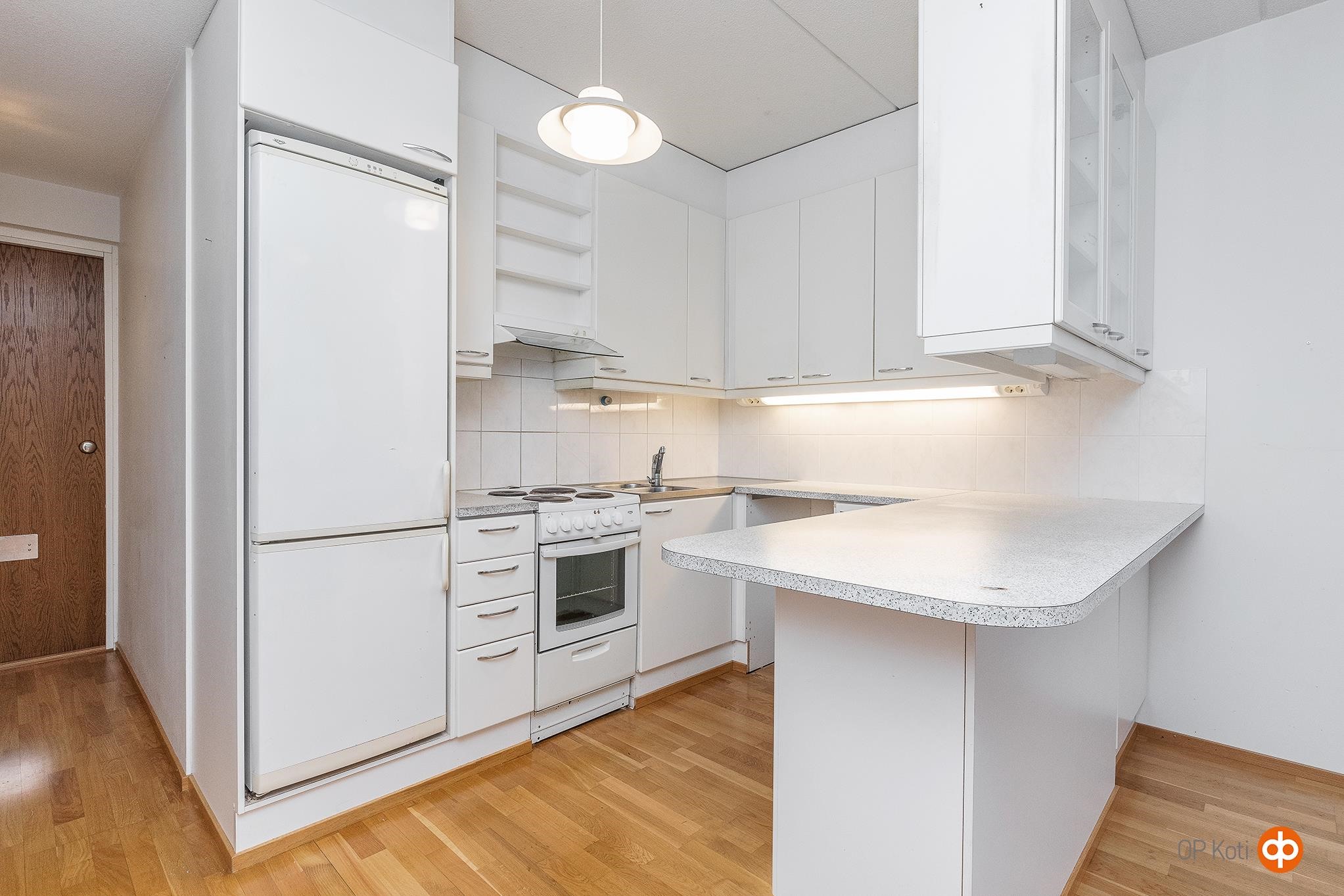 Siistikuntoinen saunallinen kaksio loistavalla sijainnilla hissitalon ylimmässä kerroksessa. Yhtiön yhteiset varastotilat samassa kerroksessa kuin kaupan kohteena oleva asunto. Huoneiston levyinen parveke talon sisäpihan suuntaan, joka riittävän kaukana vilkkaasti liikennöidystä Turuntiestä. Parvekeella hyvin tilaa kesäkukille, viherhyllyille ja parvekekalusteille.